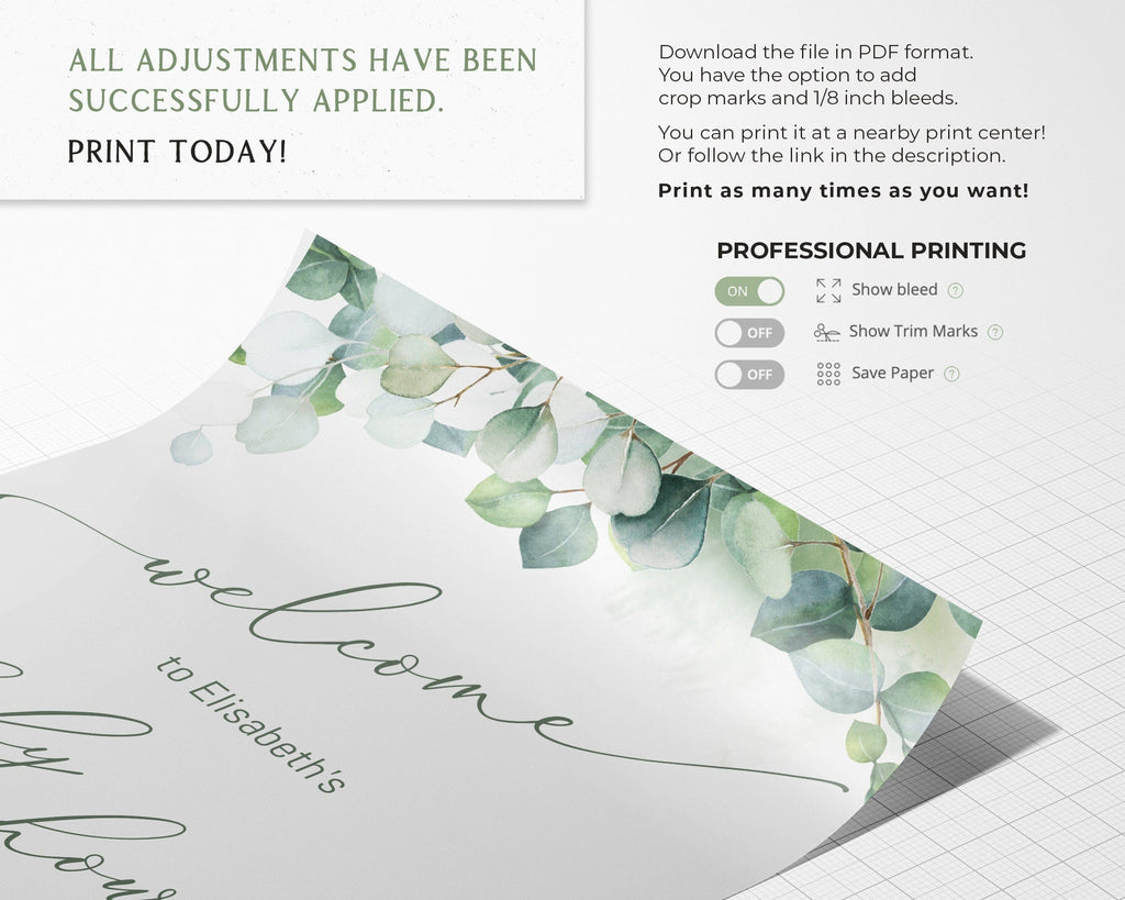 Eucalyptus Bridal Shower Welcome Signs, EDITABLE Templates