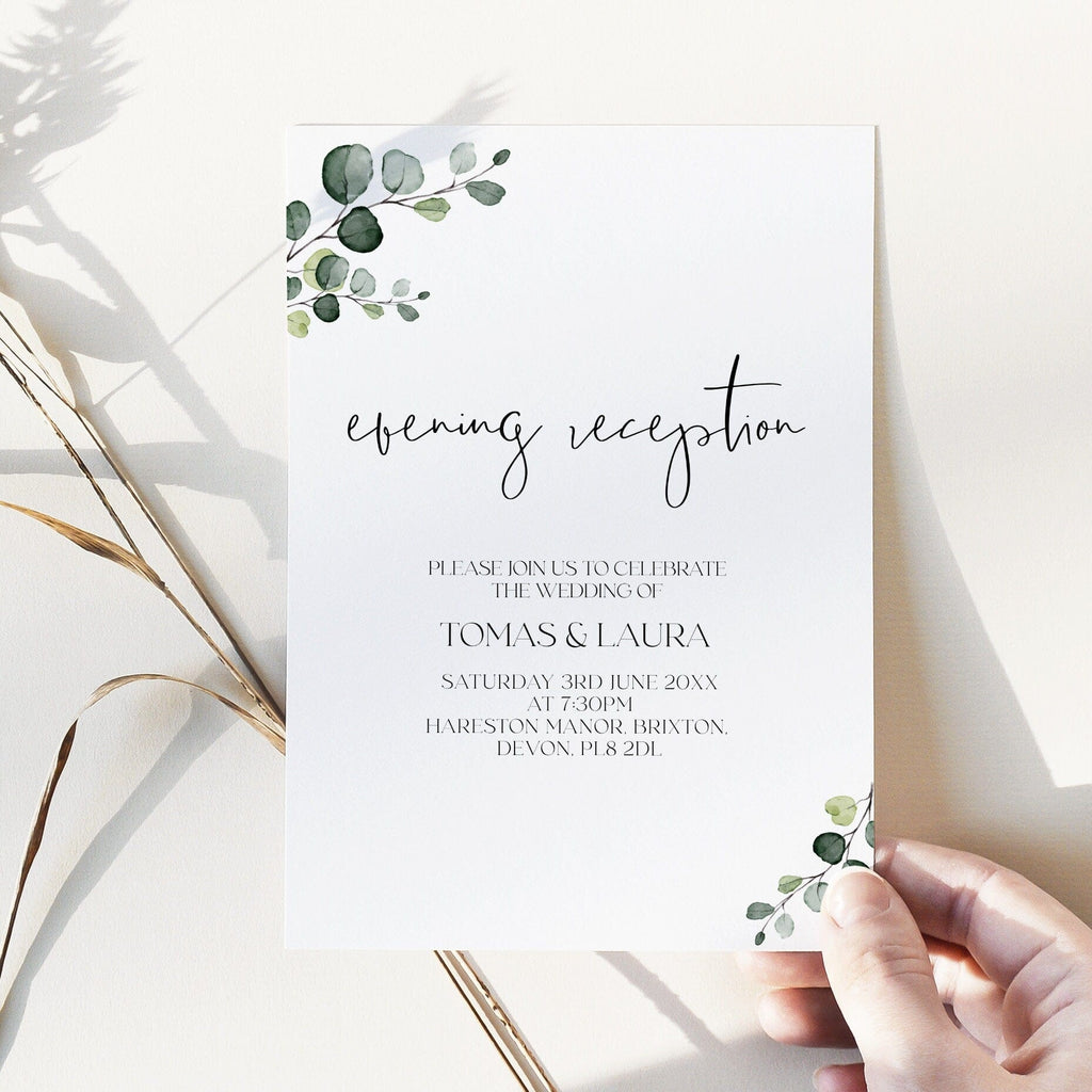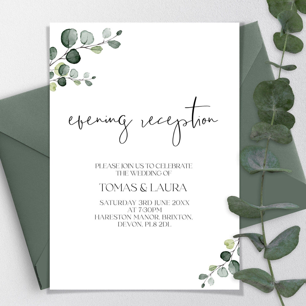Eucalyptus Evening Reception Invitation | 3 Sizes | Greenery Wedding Invite
