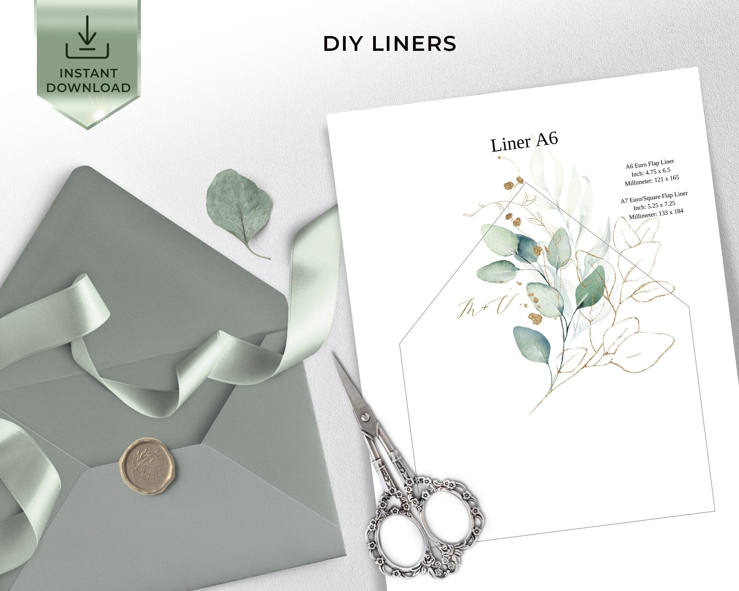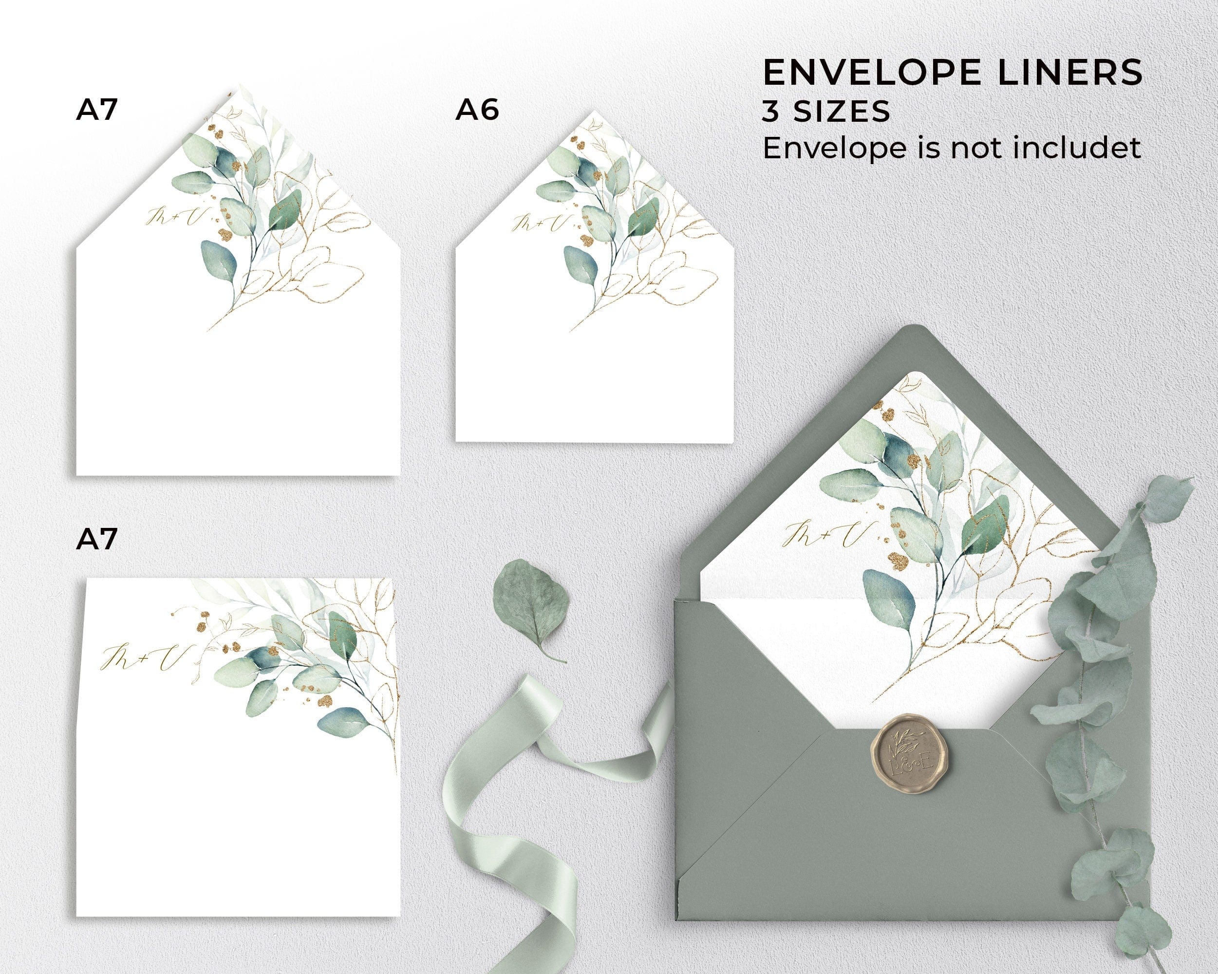 Eucalyptus & Gold Envelope Liner, EDITABLE Templates