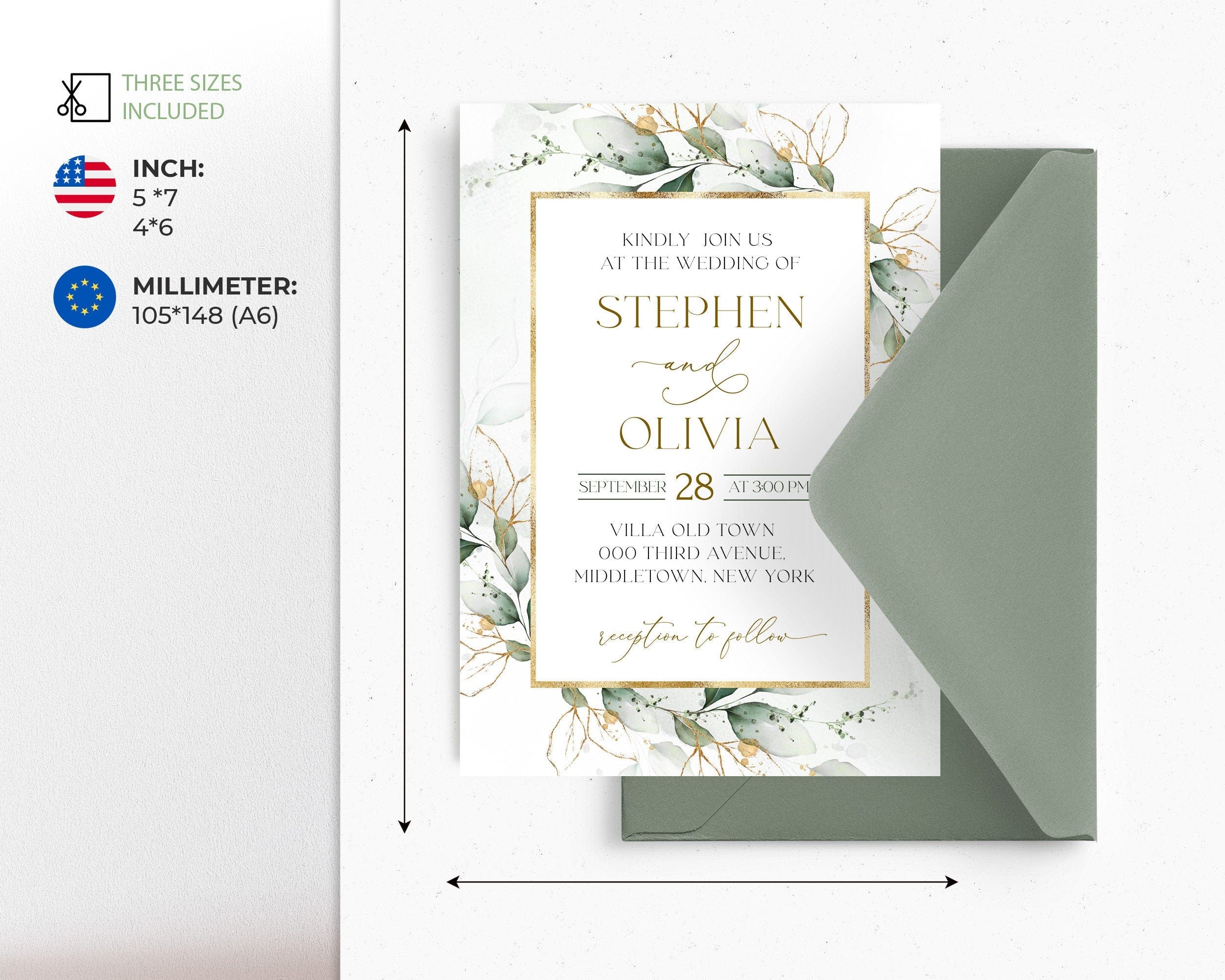 Eucalyptus & Gold Leaf Invite | 3 Sizes | DIY Bride Inspo