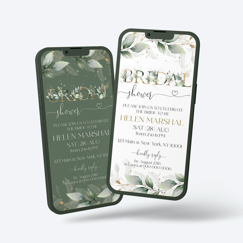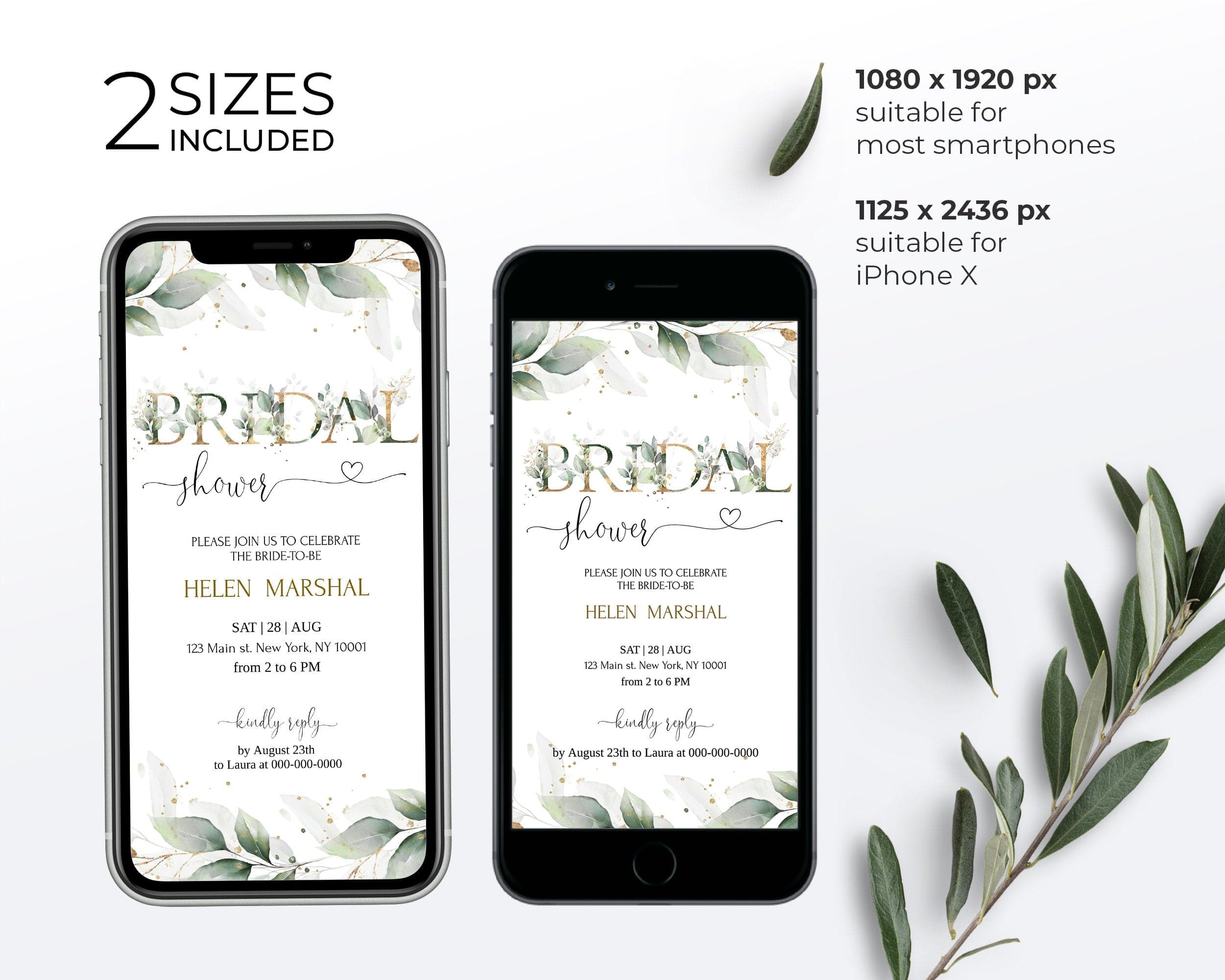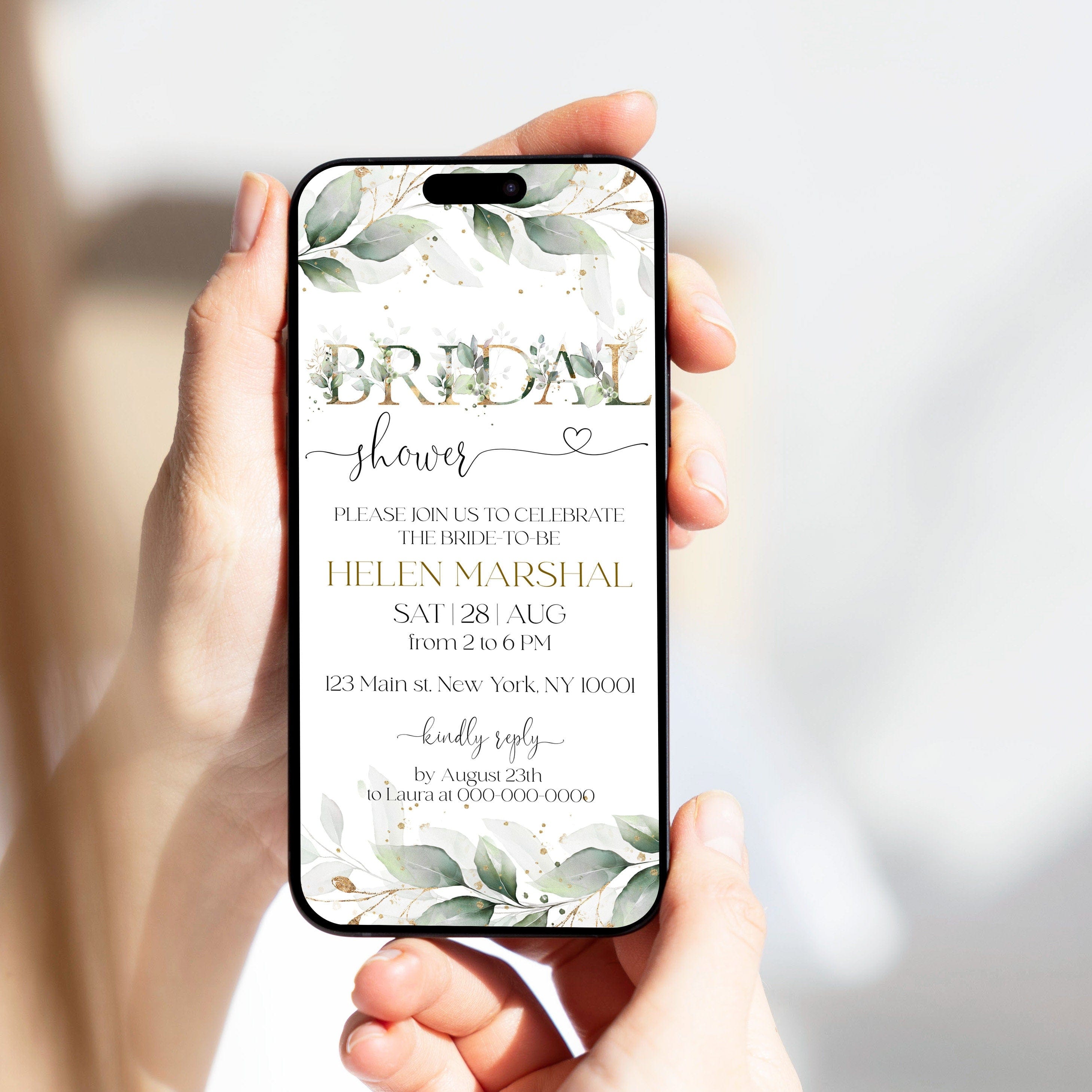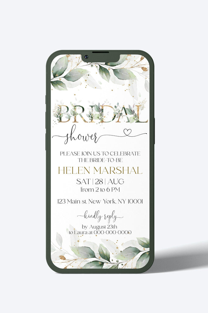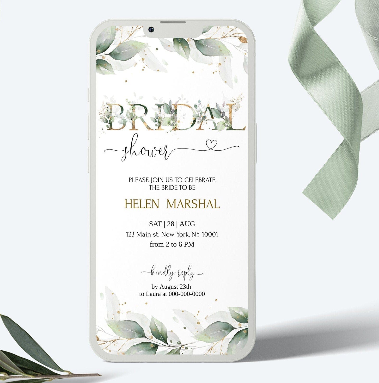 Eucalyptus Gold Phone Evite | DIY Bridal Shower Invitation
