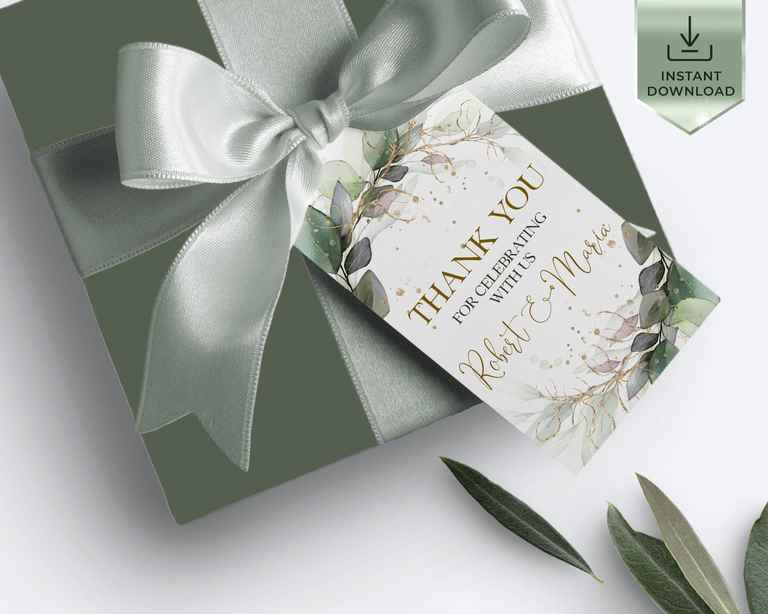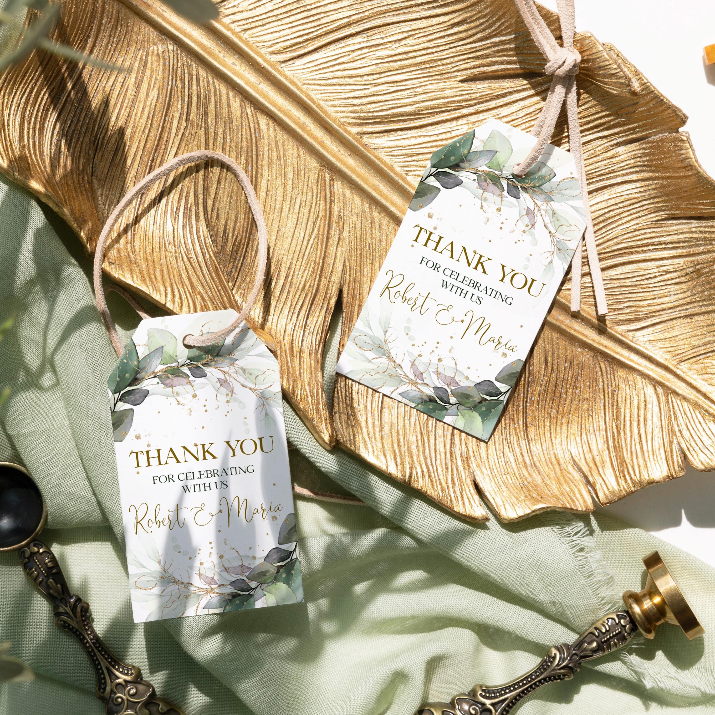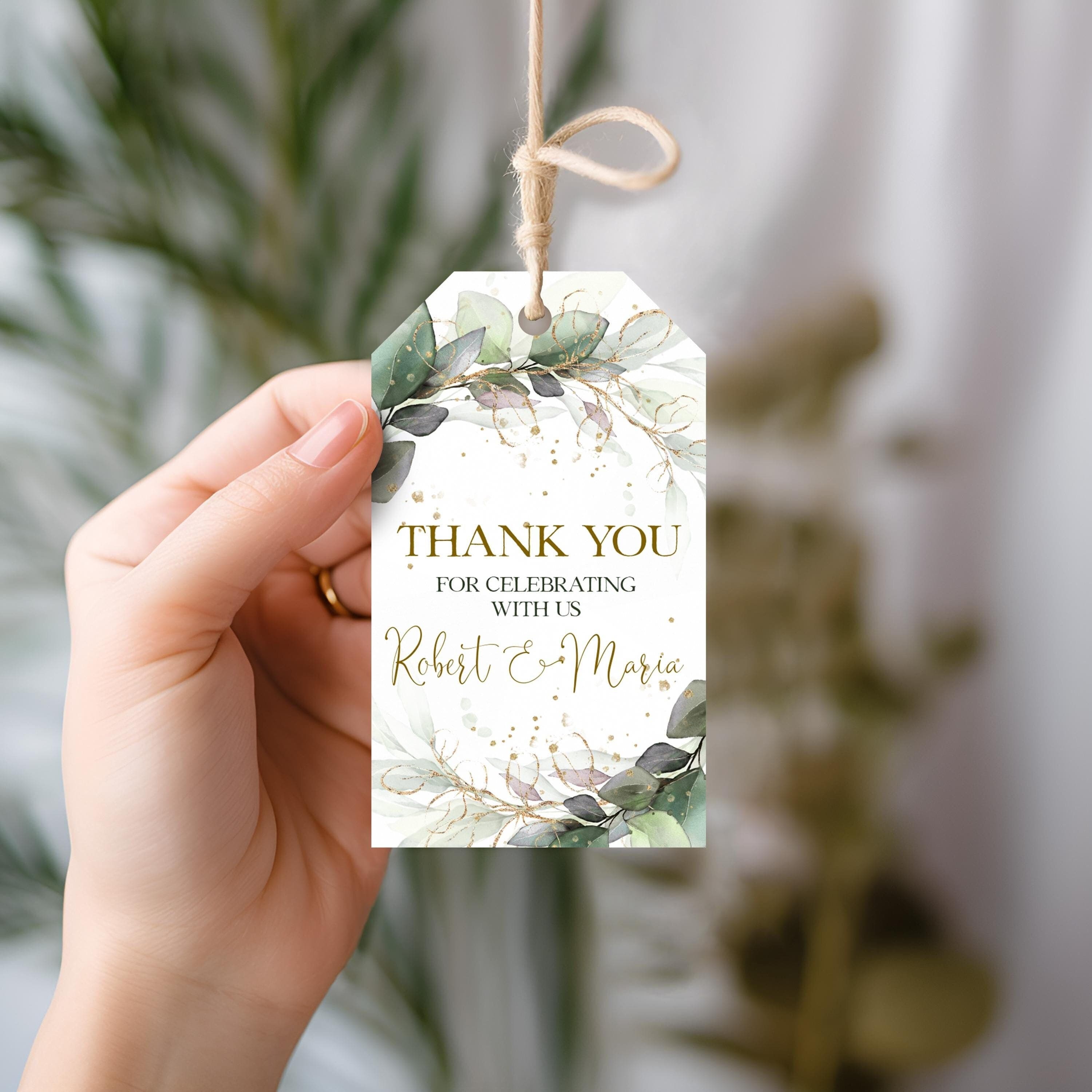 Eucalyptus Wedding Favor Tag | Greenery & Gold Thank You Card