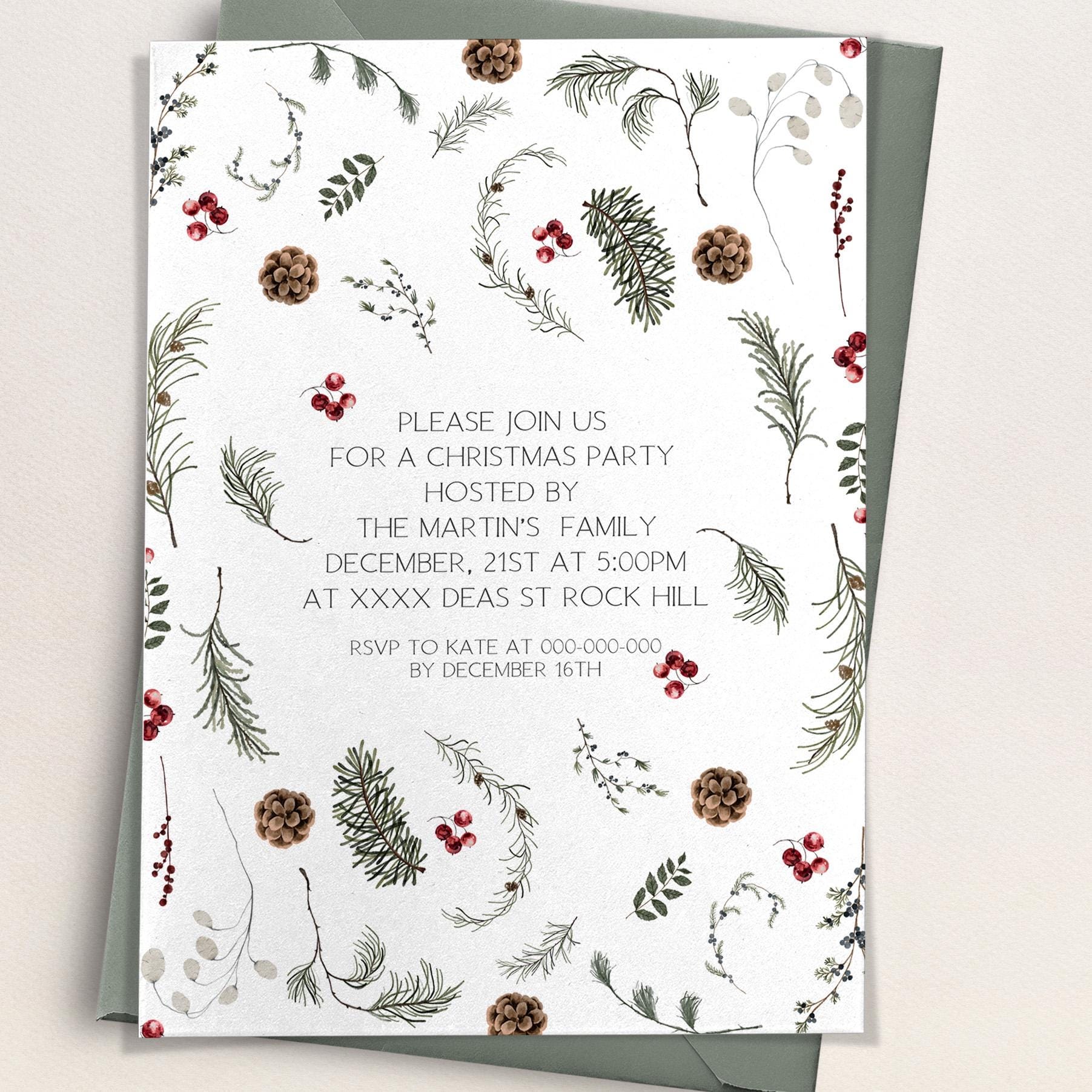 Festive Winter Sprigs Invitation | 3 Sizes | DIY Christmas Party Invite