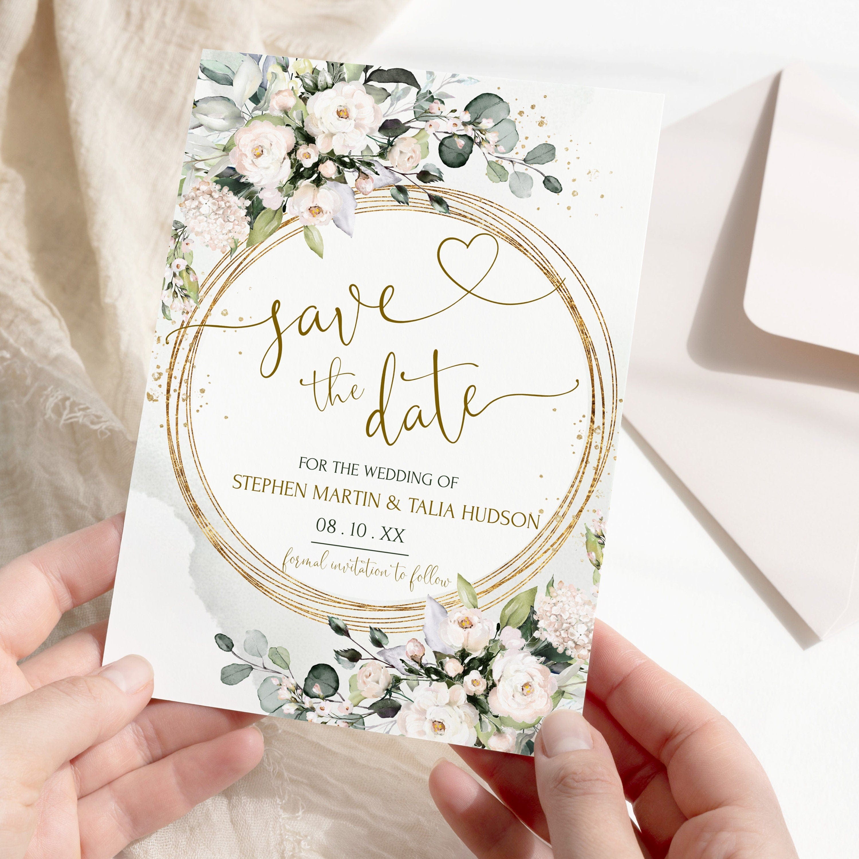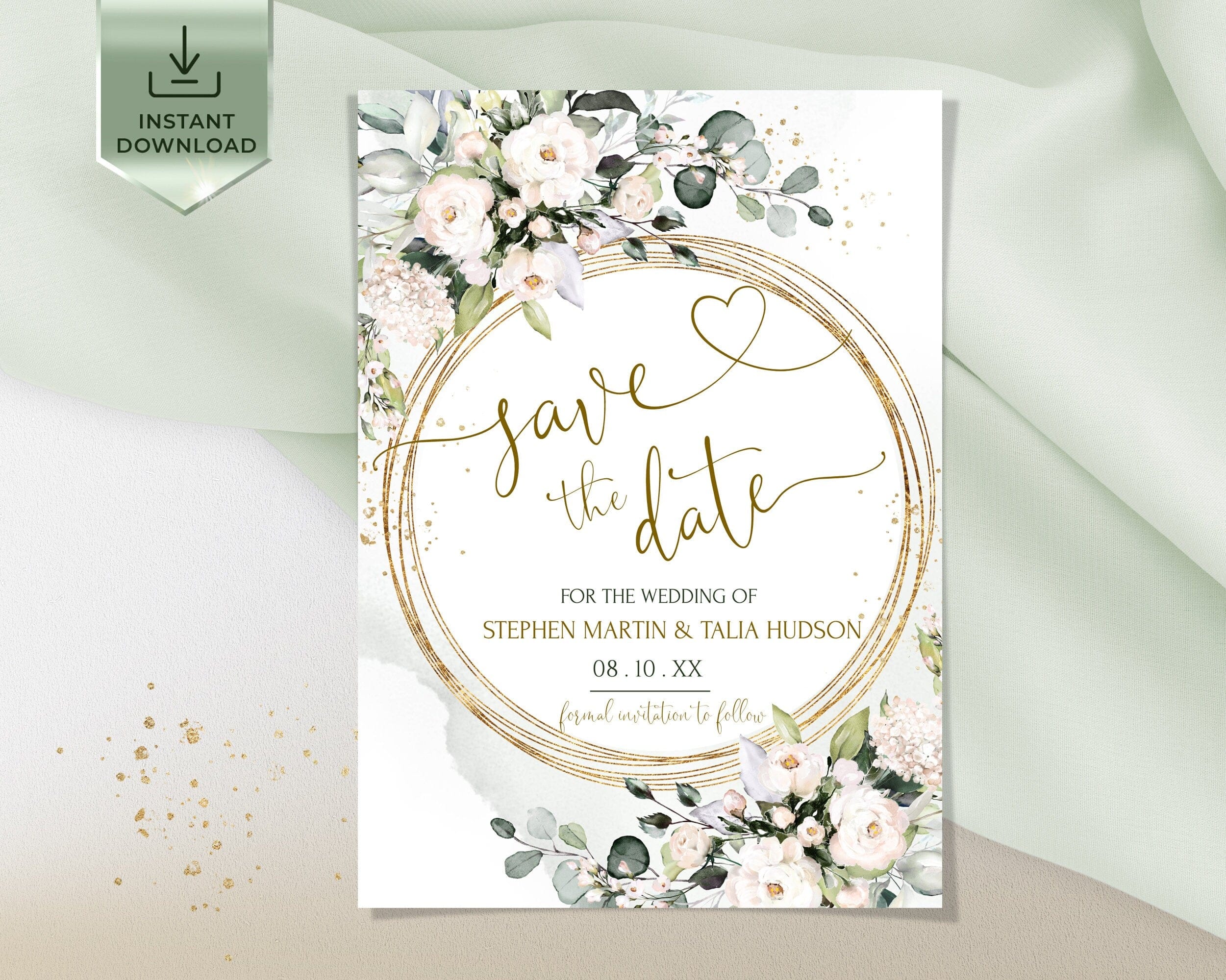 Floral Gold Wedding Save The Date, EDITABLE Templates