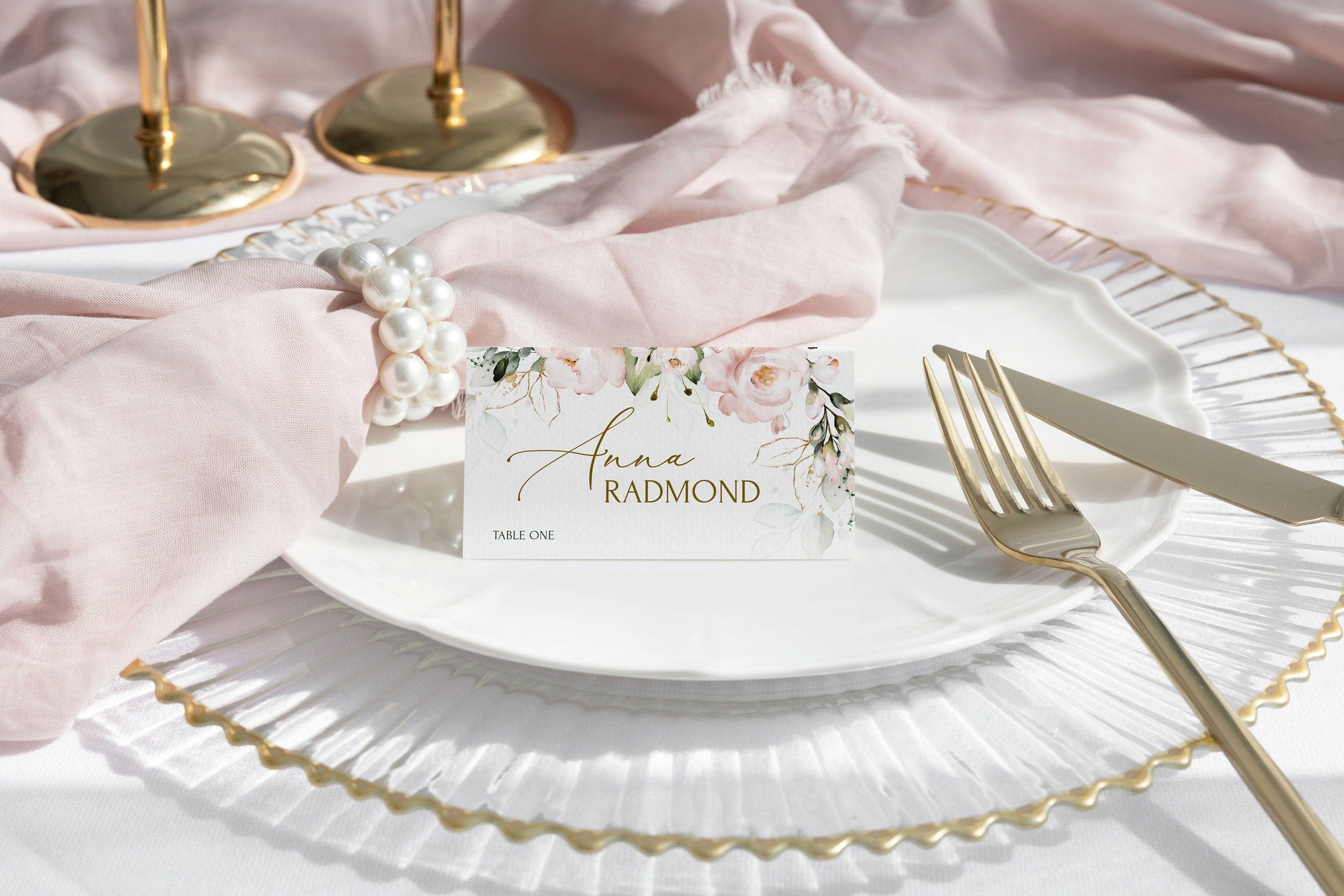 Floral Wedding Place Cards, EDITABLE Templates