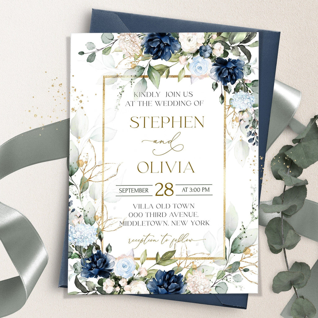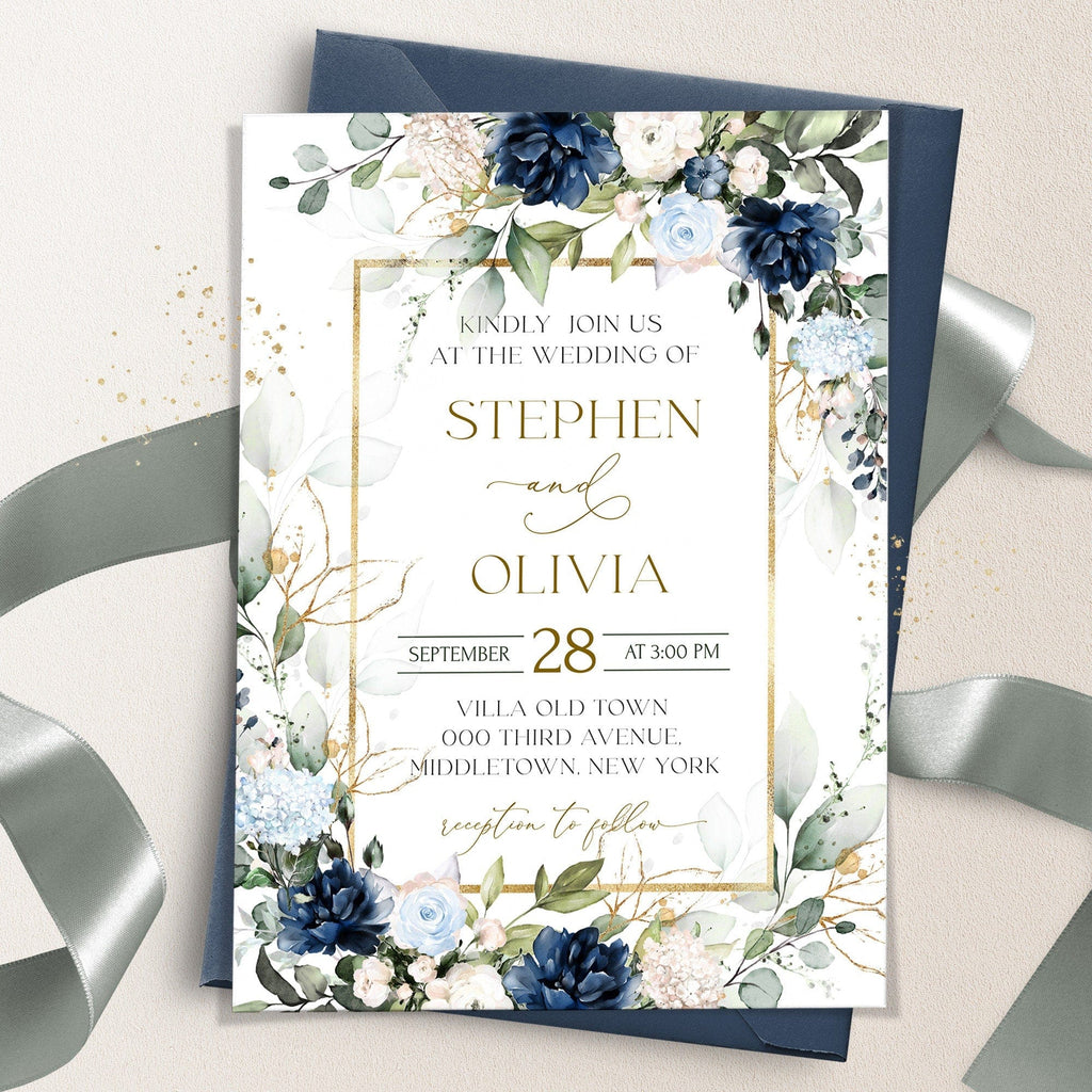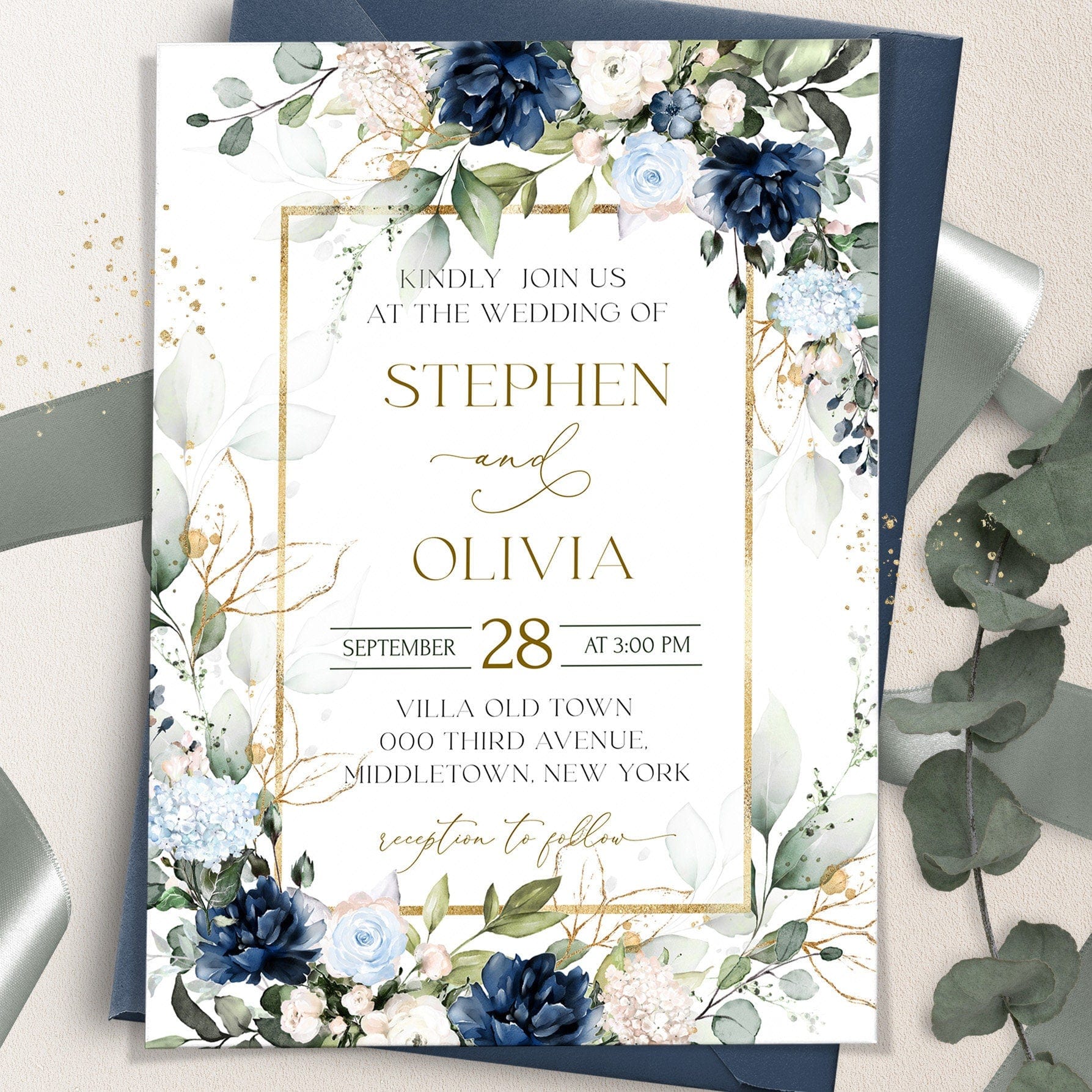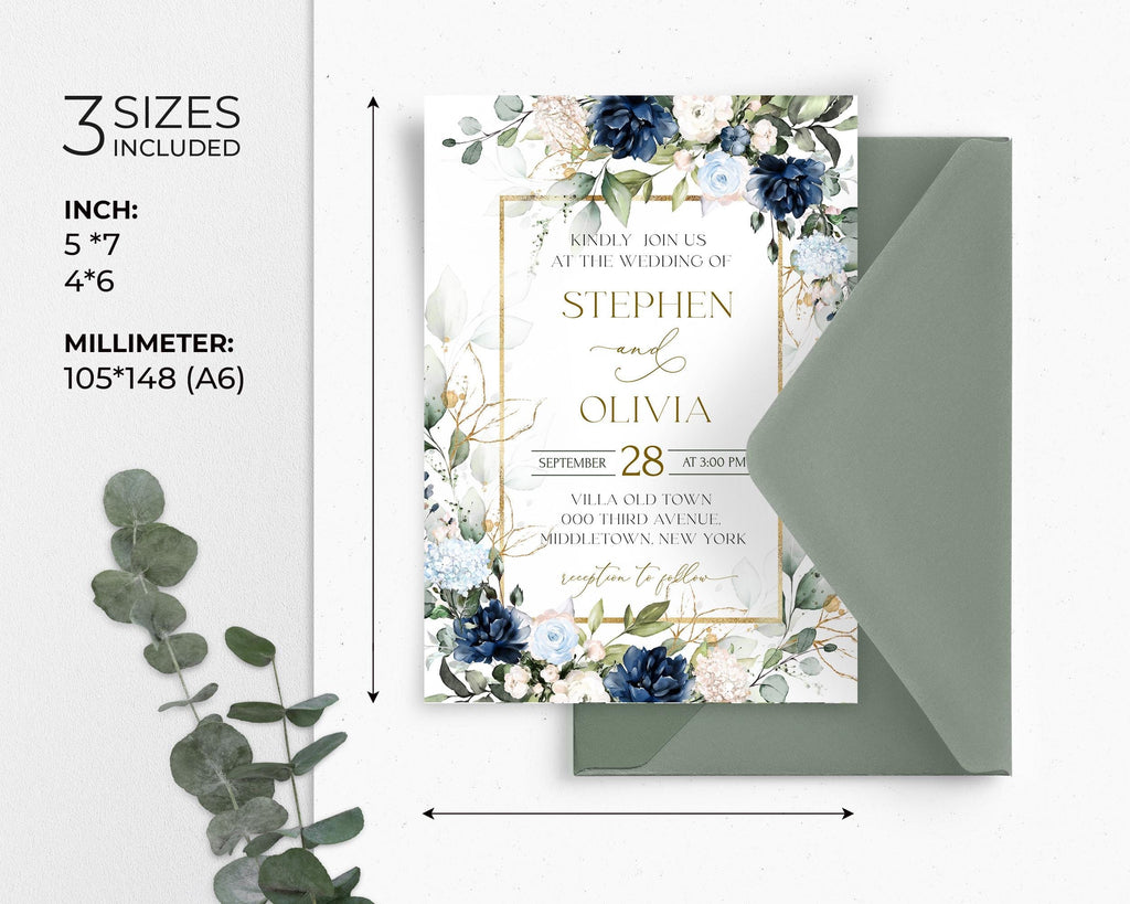 Gold Frame Floral Wedding Invite | 3 Sizes | Navy Blush Wedding Inspo