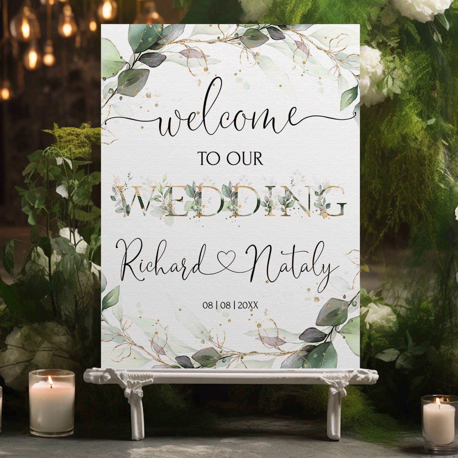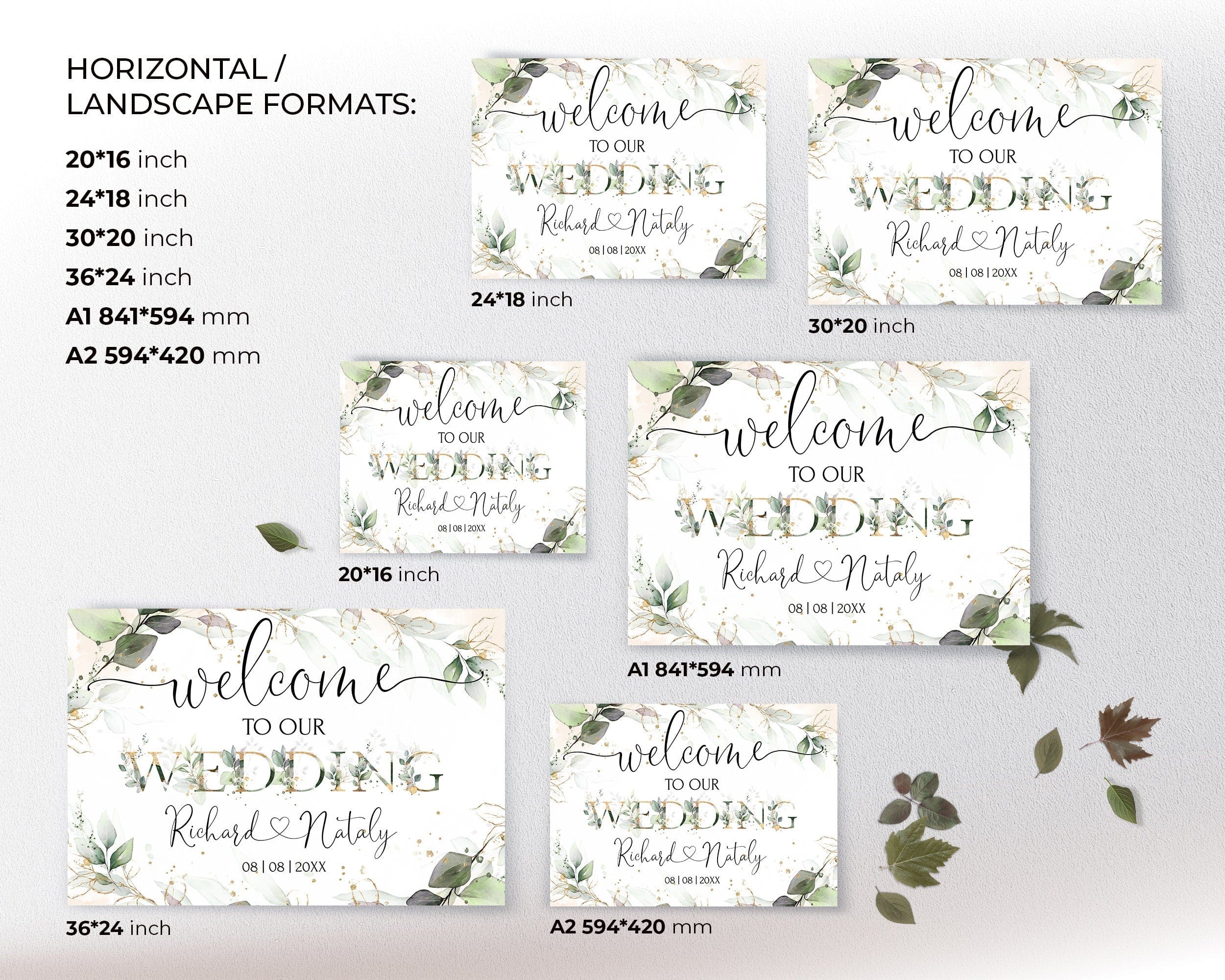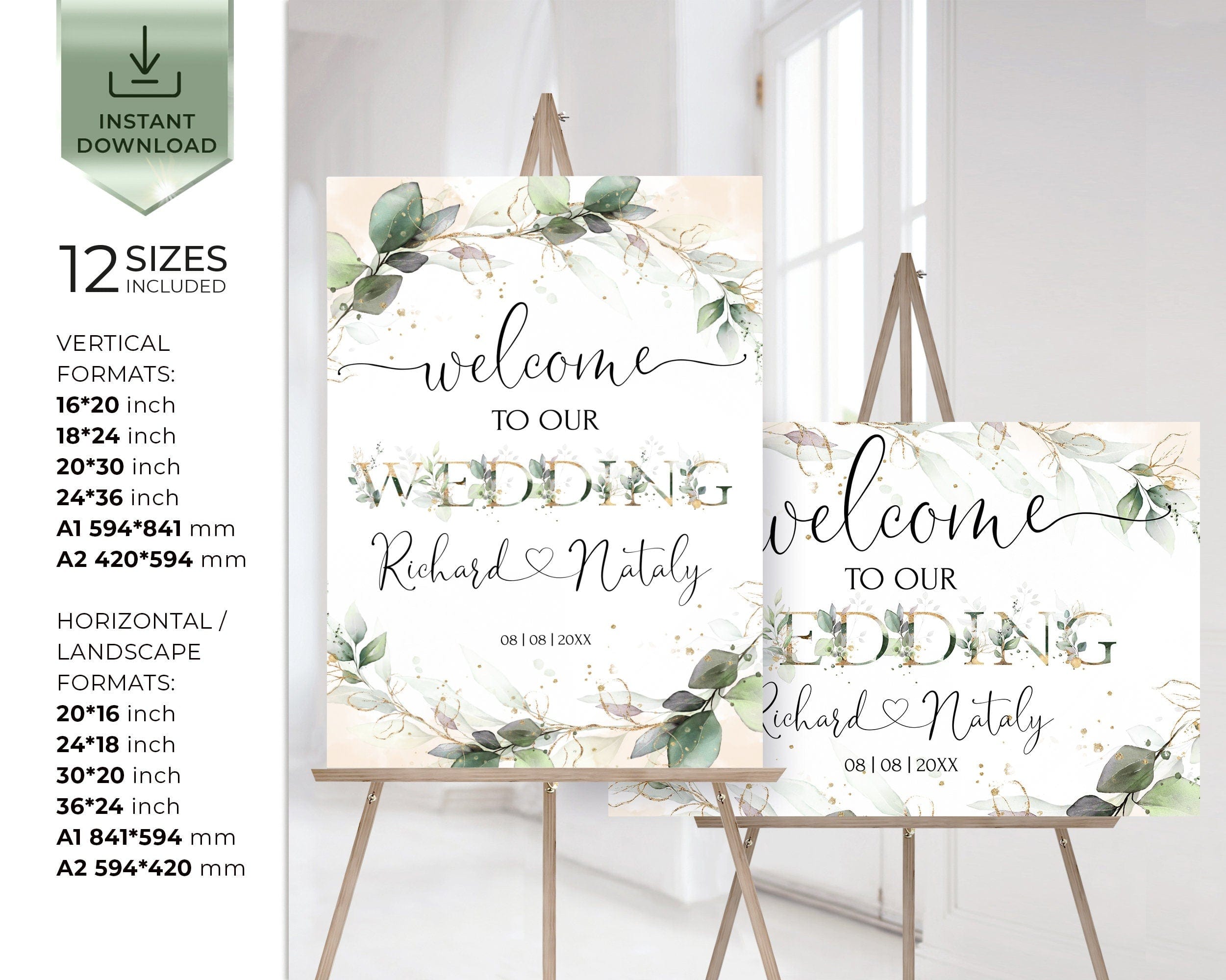 Gold Leaf Wedding Signage, EDITABLE Templates