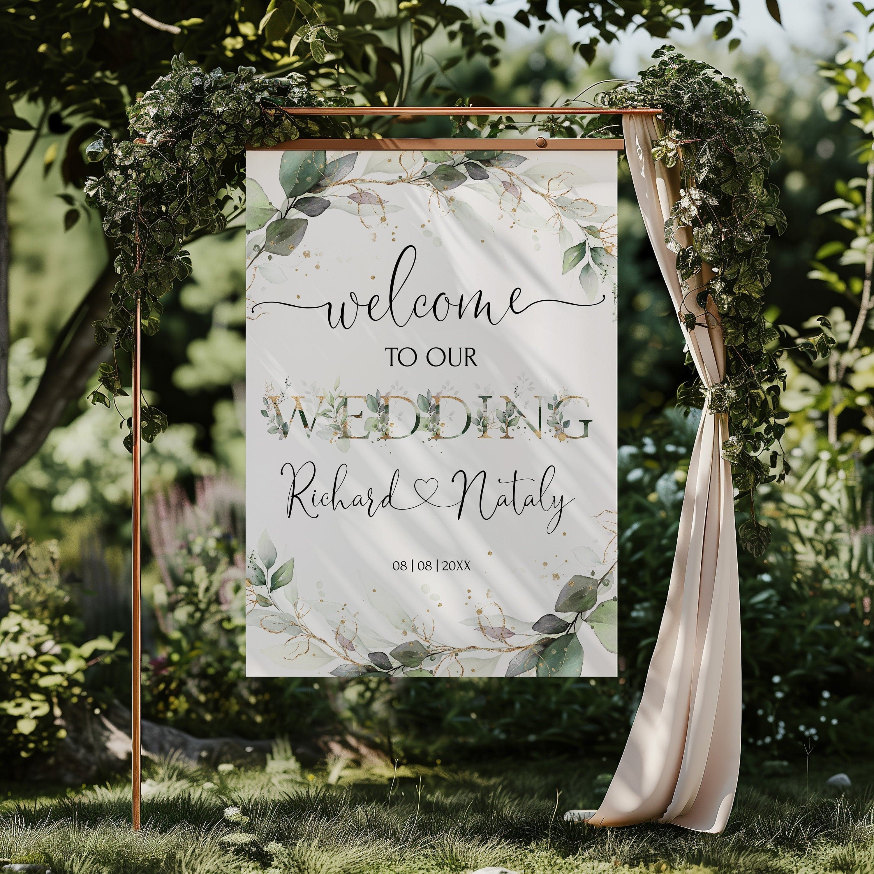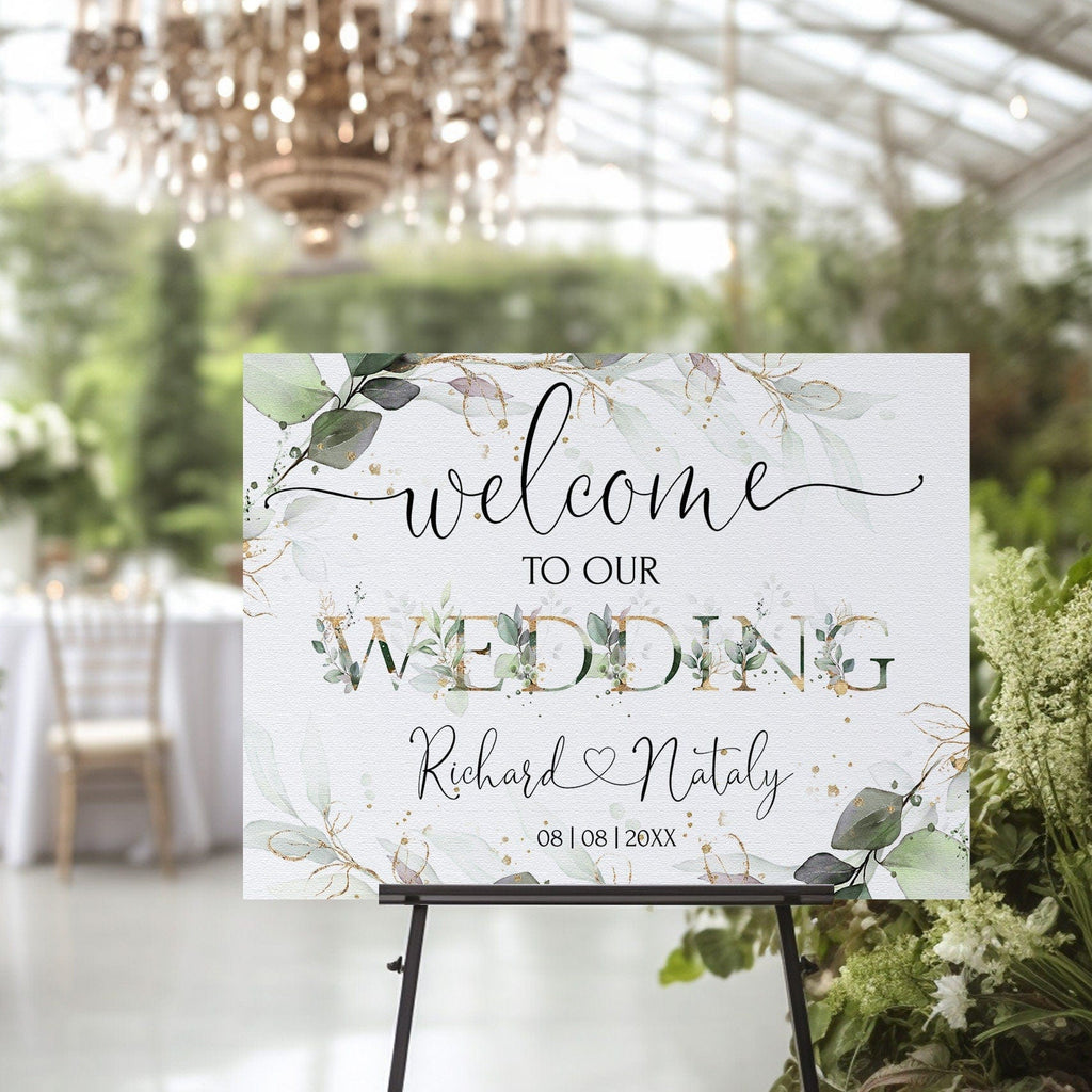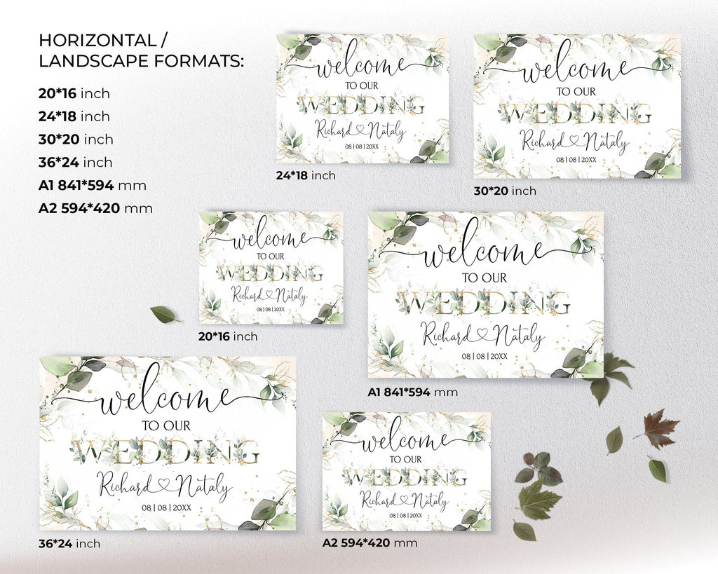 Gold Leaf Wedding Signage, EDITABLE Templates