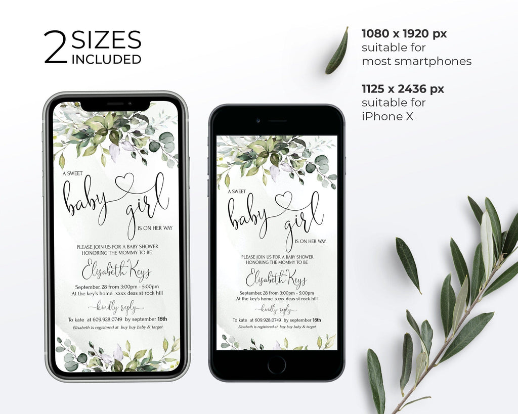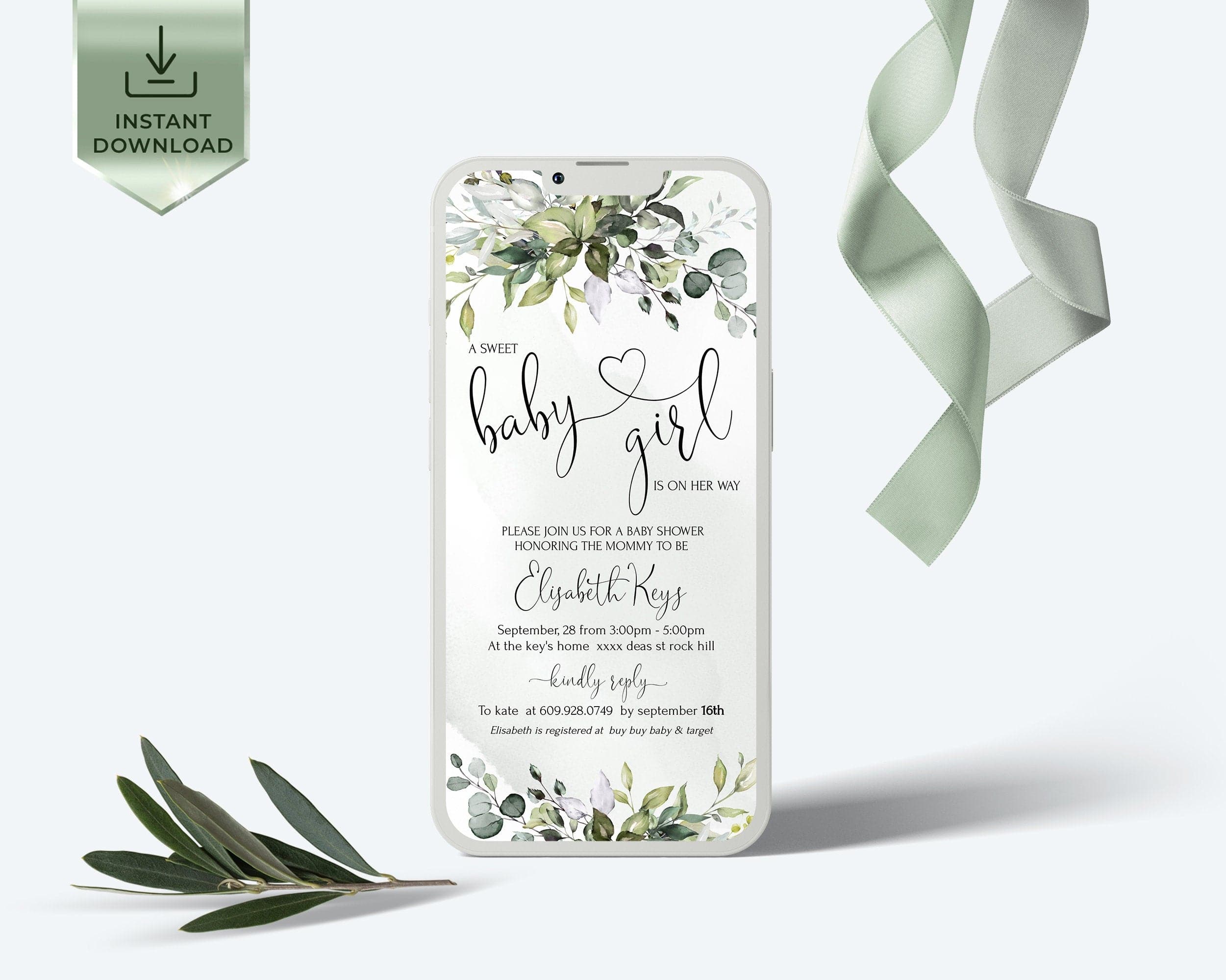 Green Baby Shower Electronic Invitation, EDITABLE Templates