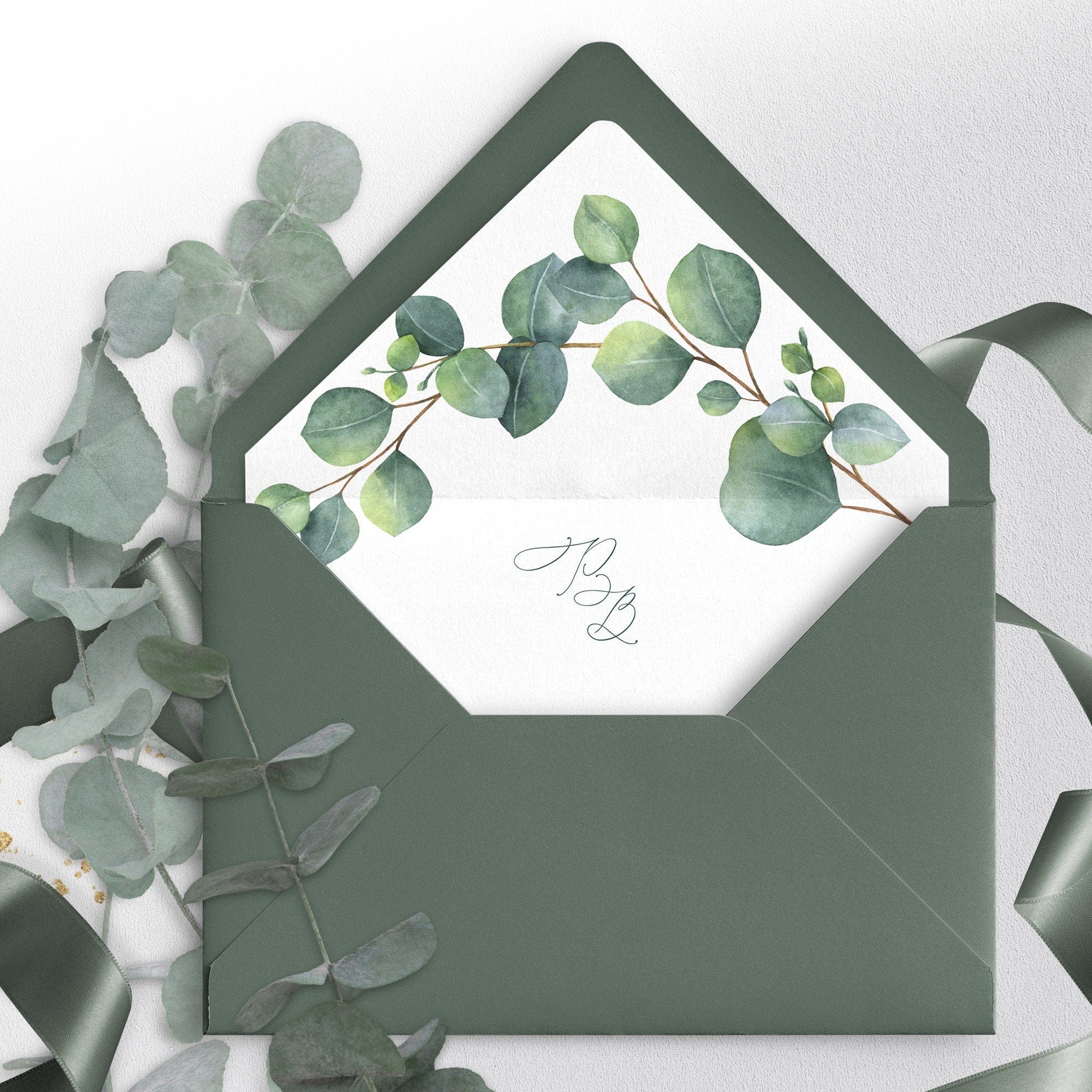 Green Eucalyptus Envelope Liner | Printable Wedding Ideas | Personalized Invitations