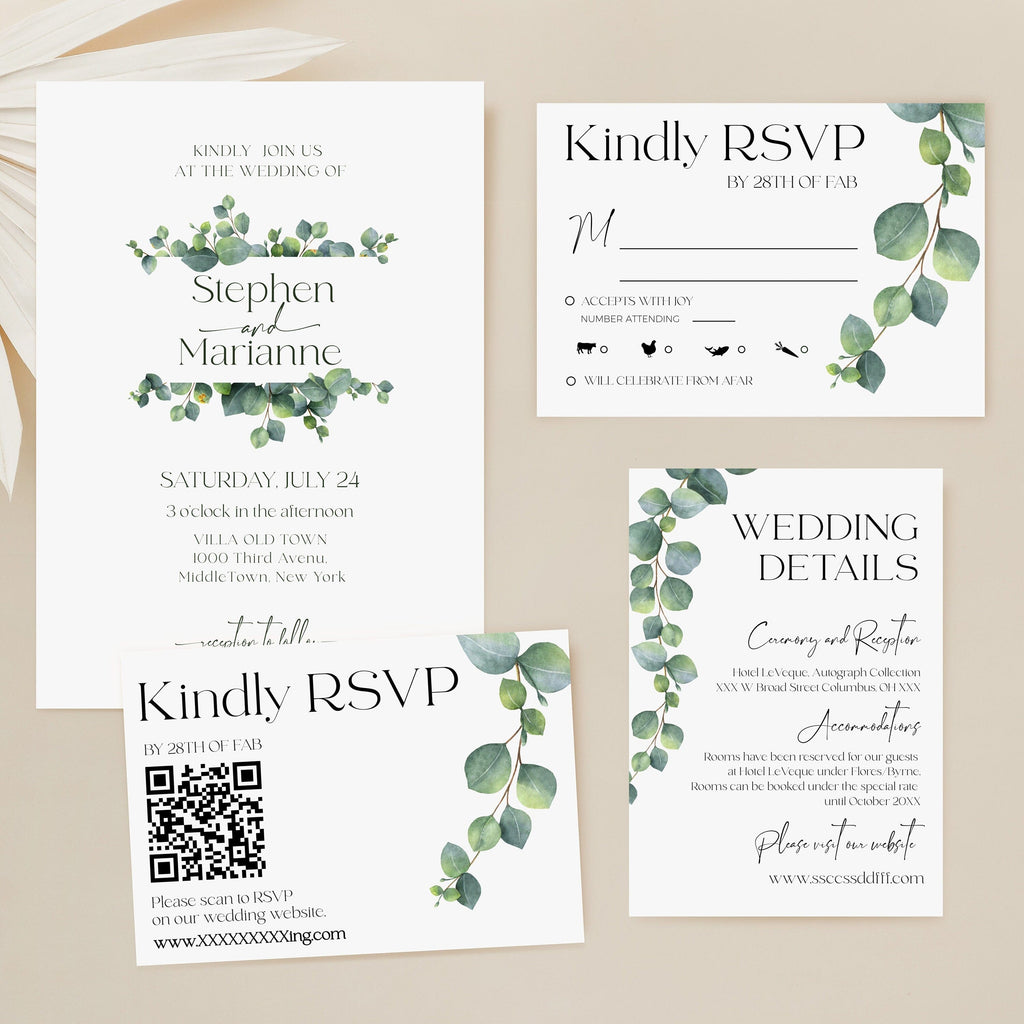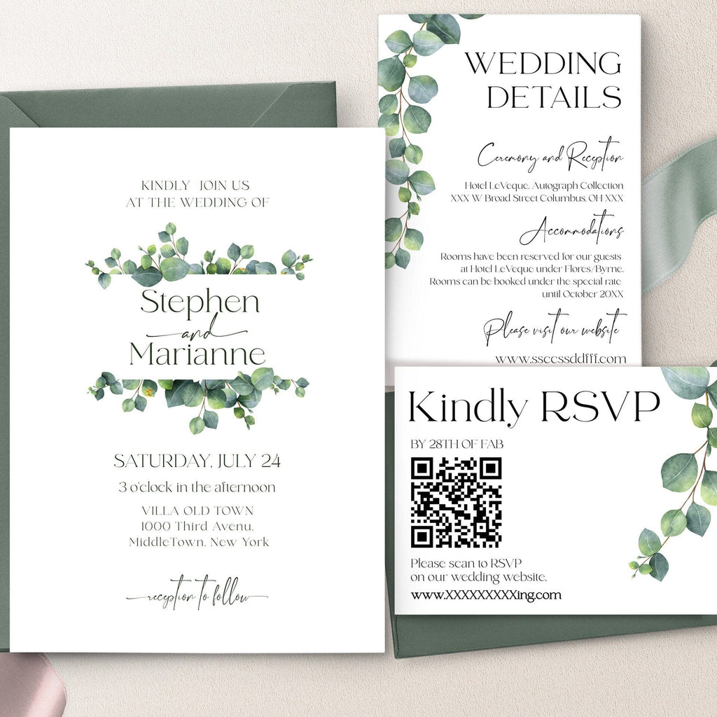 Green Wedding Invitation Suite | 6 Printables | DIY Bride Must Have