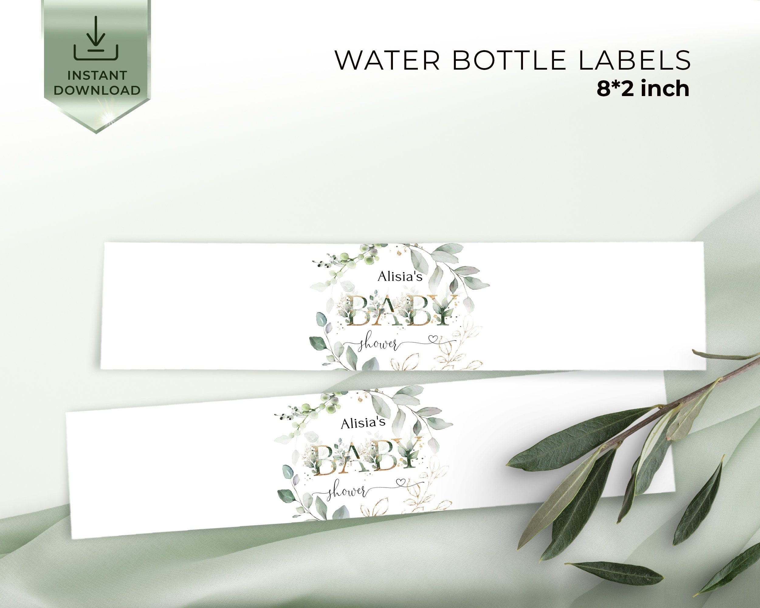 Greenery Baby Shower Water Bottle Labels, EDITABLE Templates