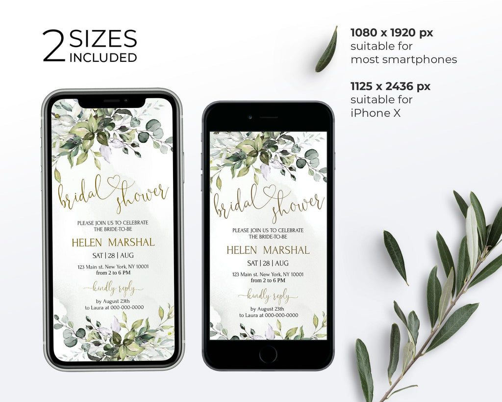 Greenery Bridal Shower Evites, EDITABLE Templates