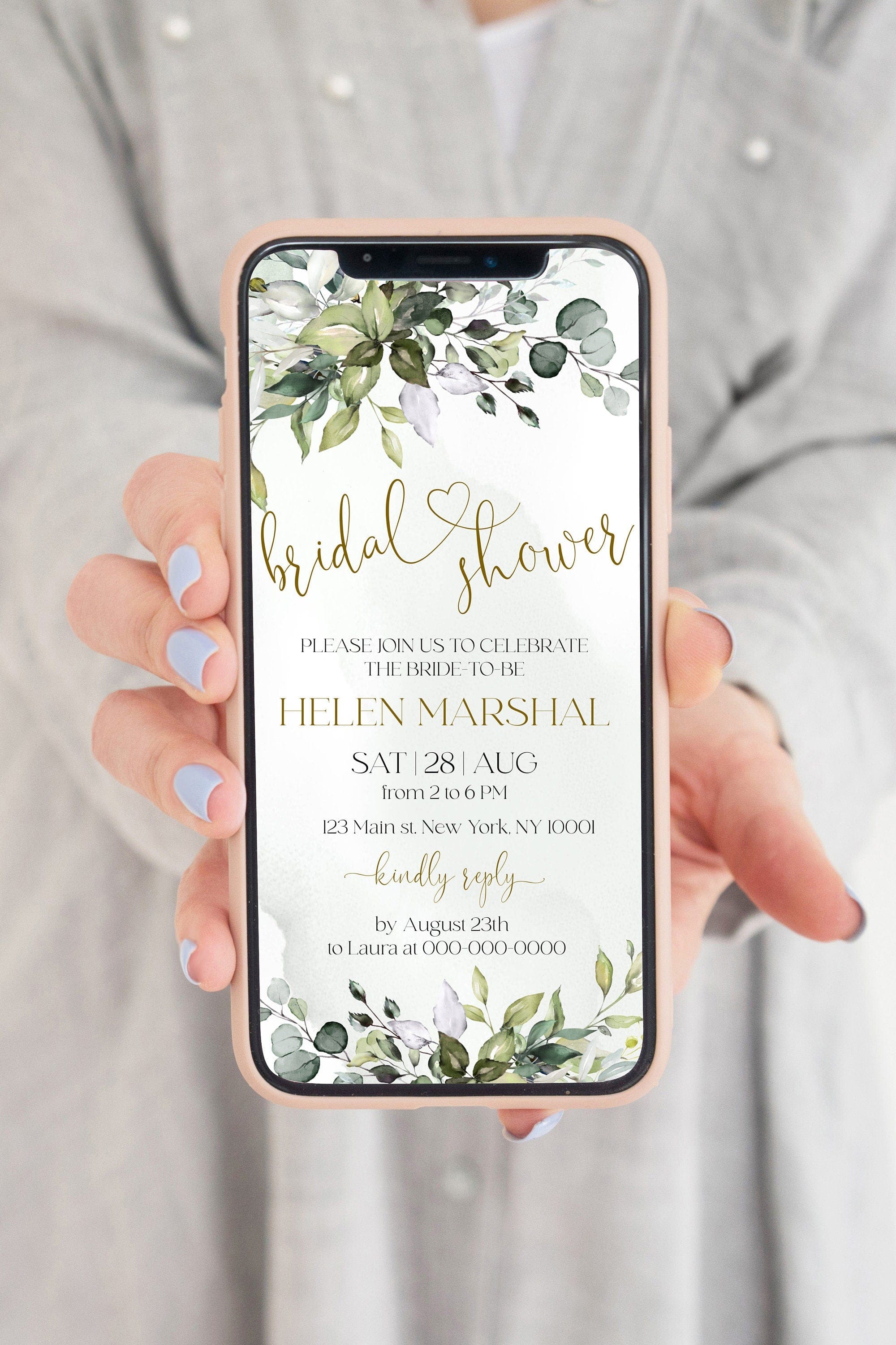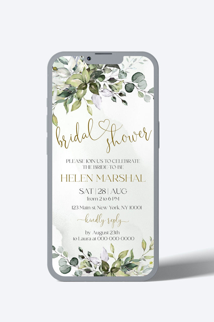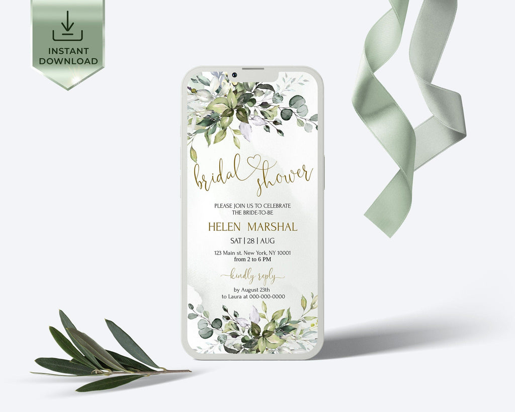 Greenery Bridal Shower Evites | Bridal Shower Digital Intite