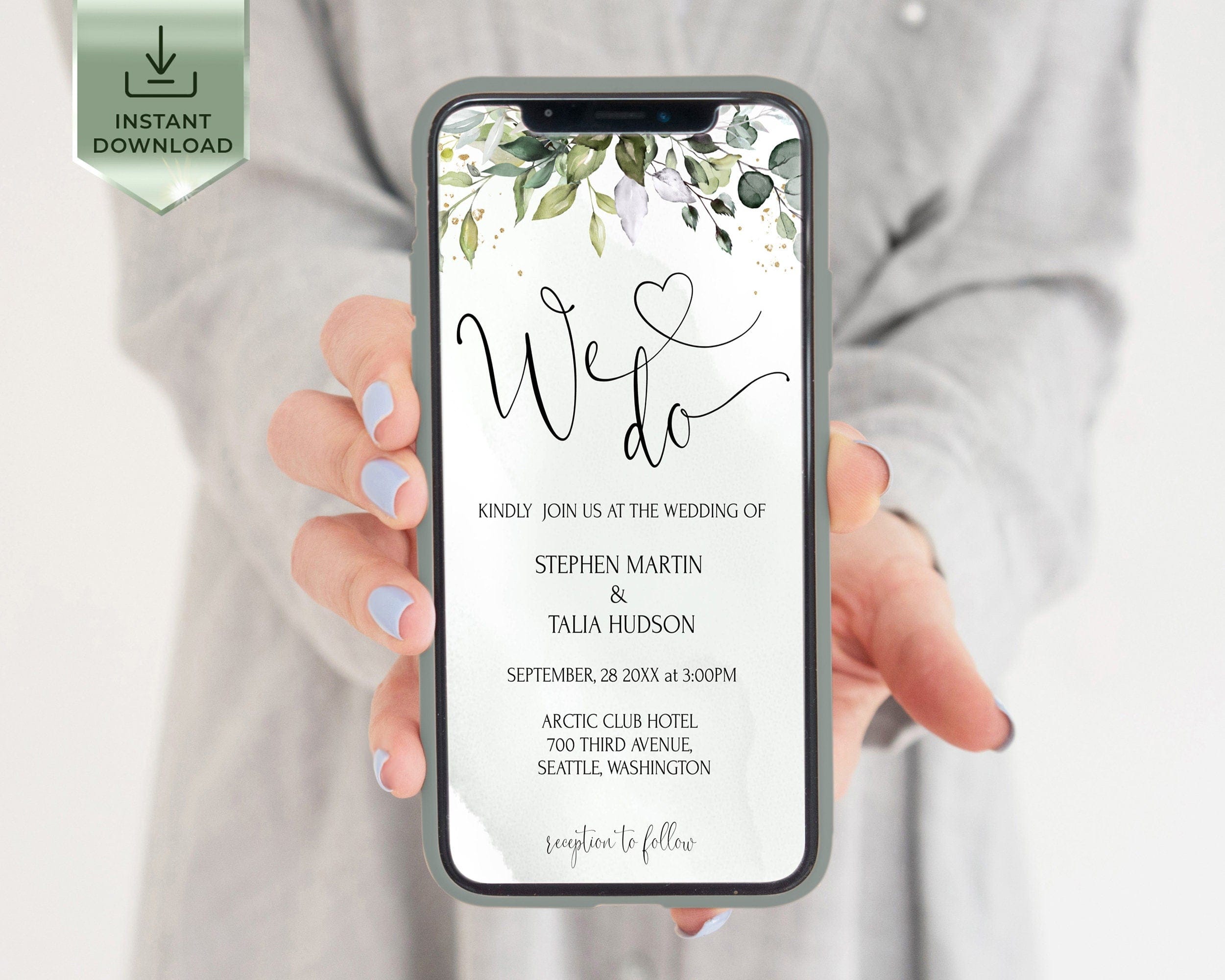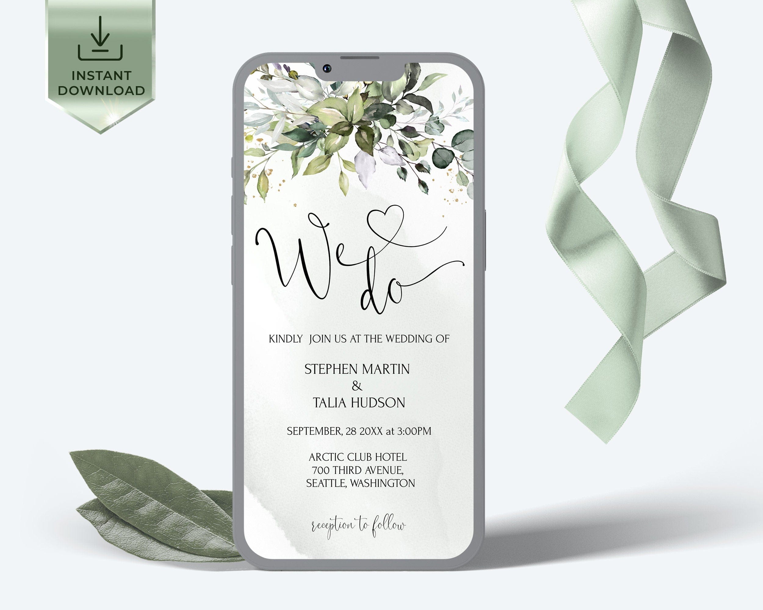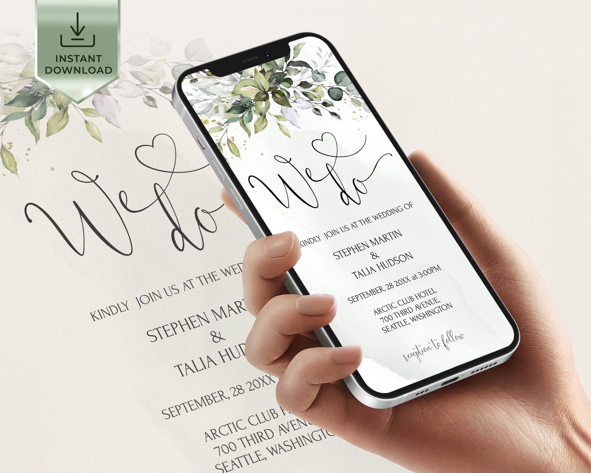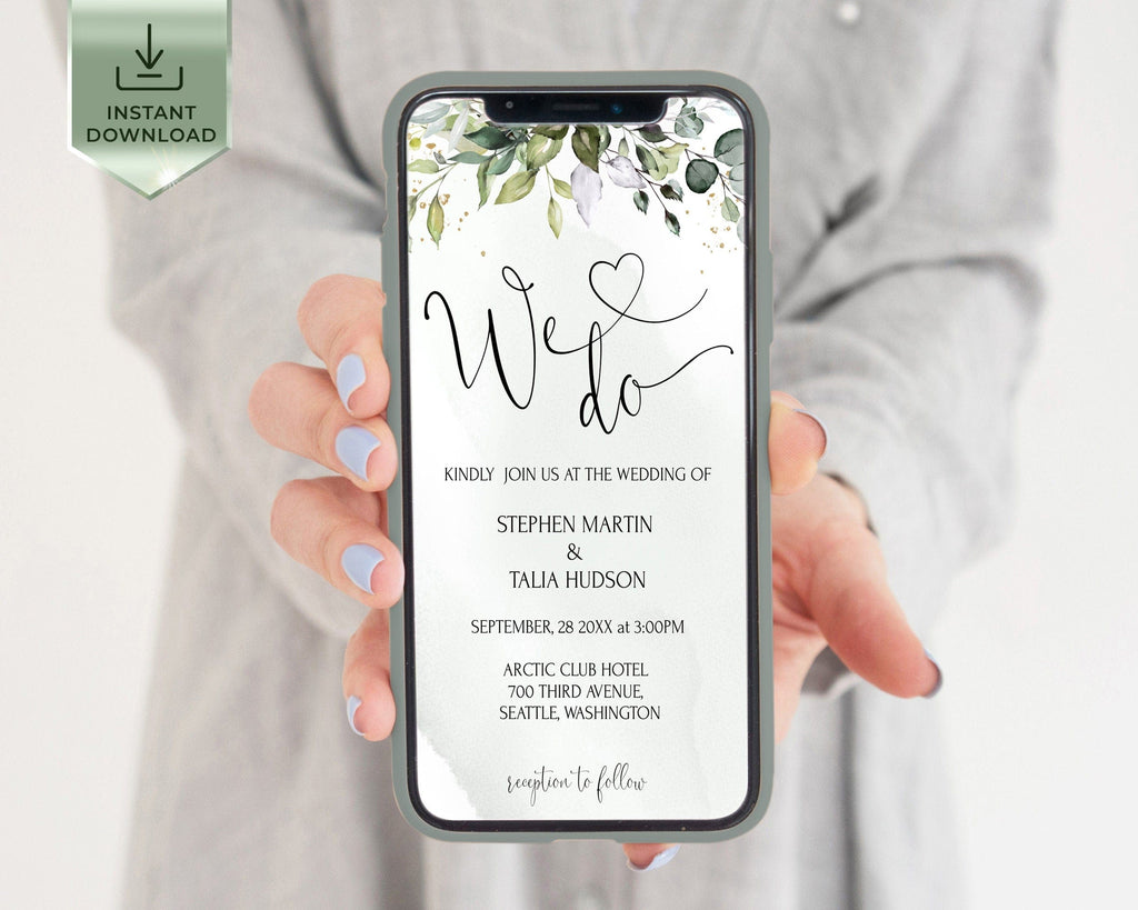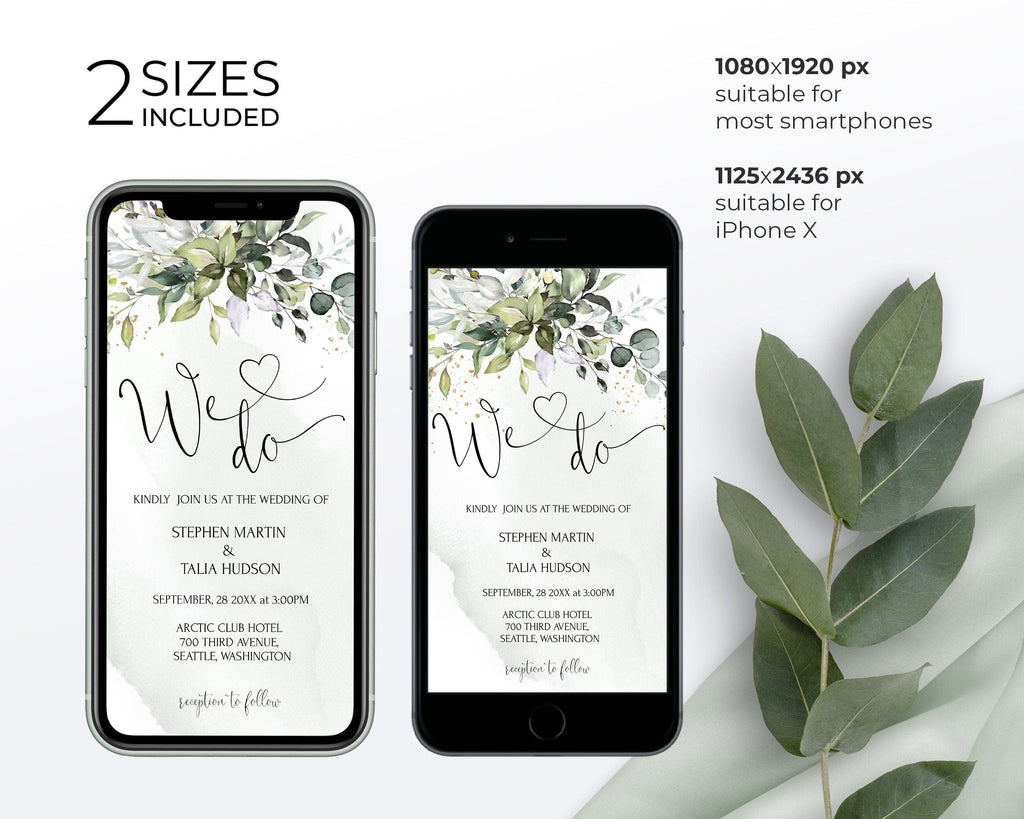 Greenery Wedding Online Invite, EDITABLE Templates