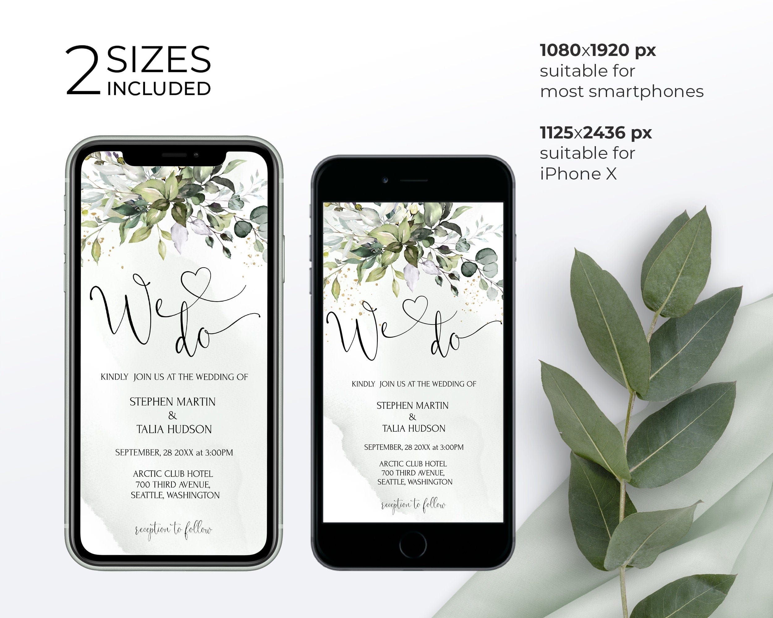 - Electronic Invitation: 1080 x 1920, 1125 x 2436
