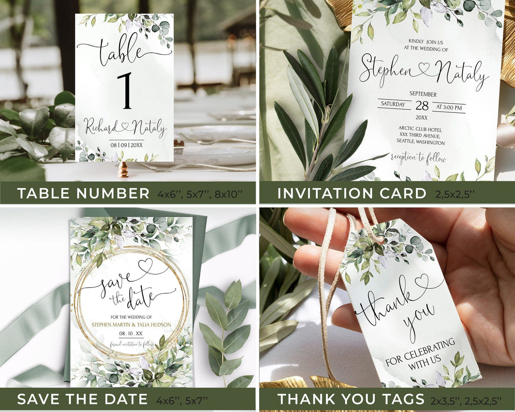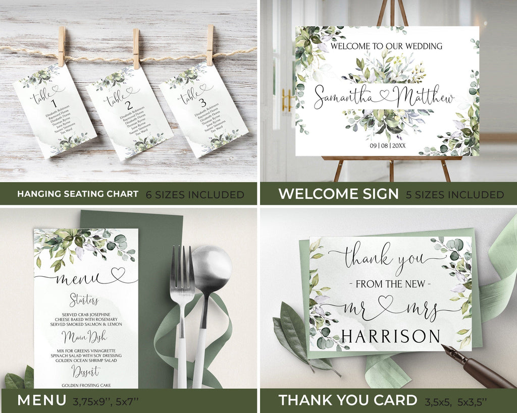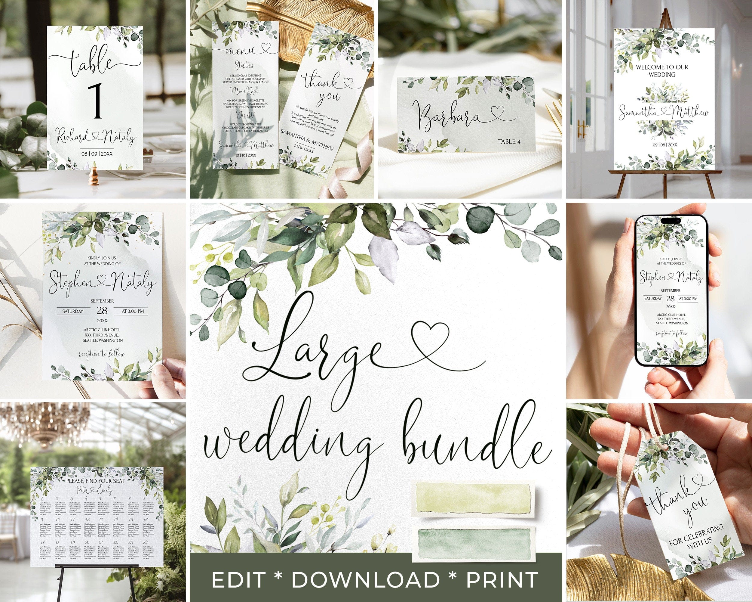 Greenery Wedding Stationery & Signage Bundle | Editable Printables