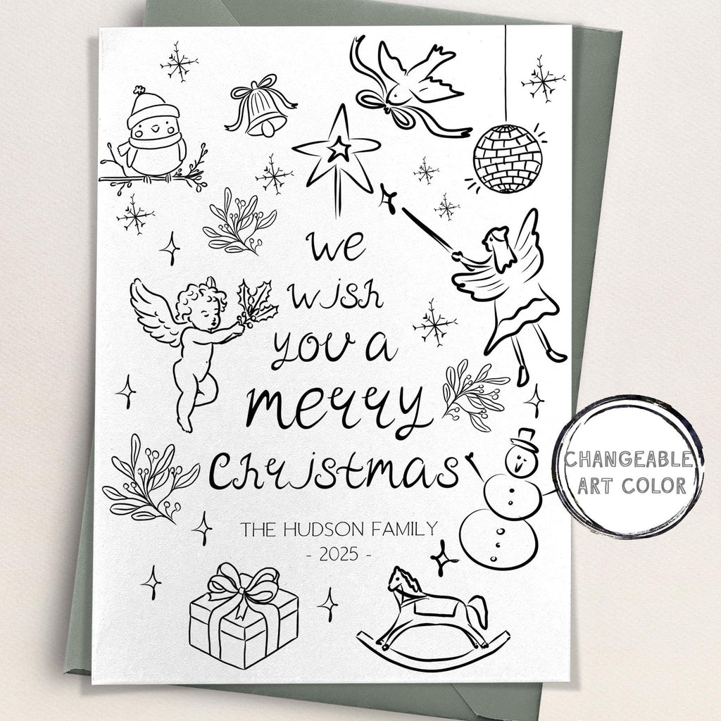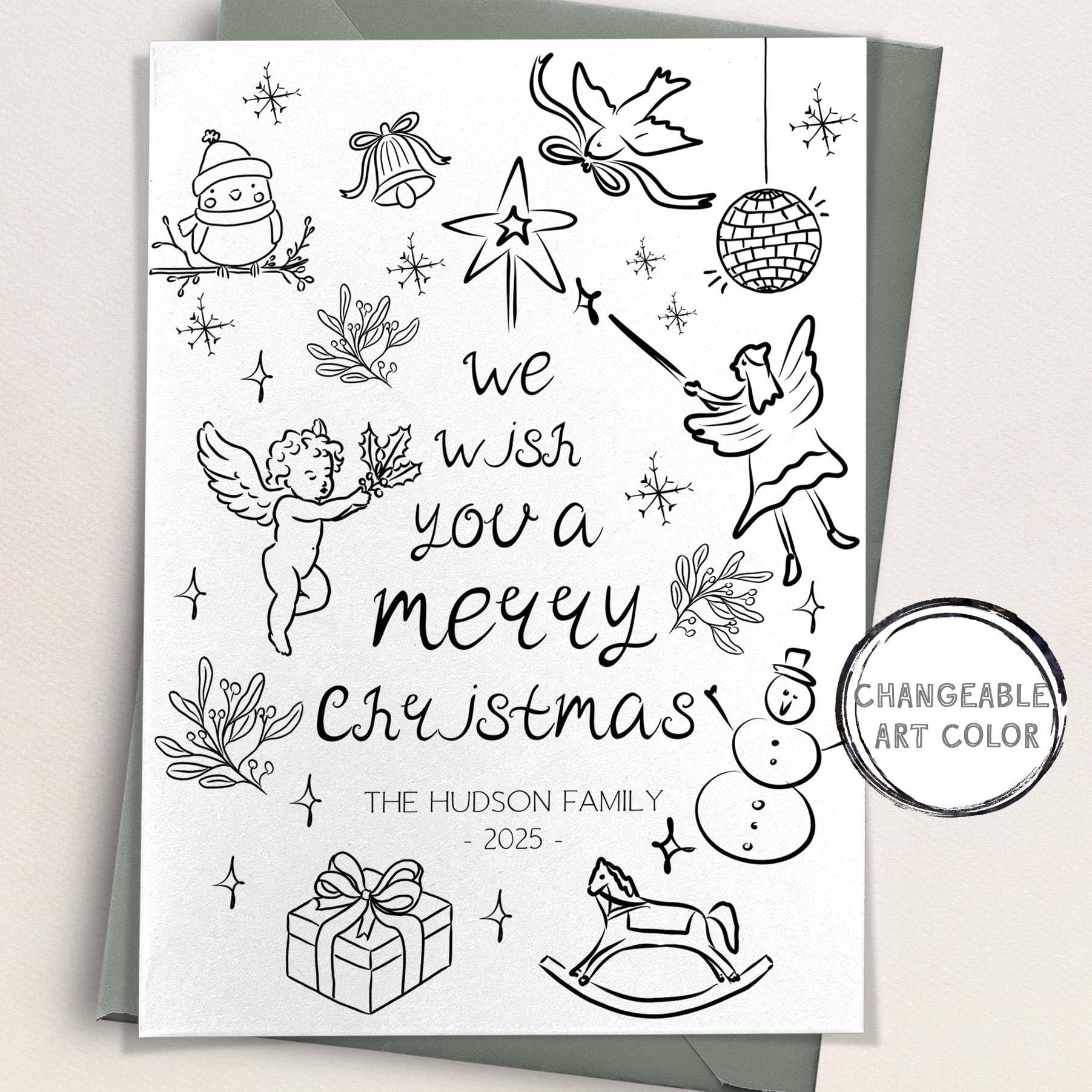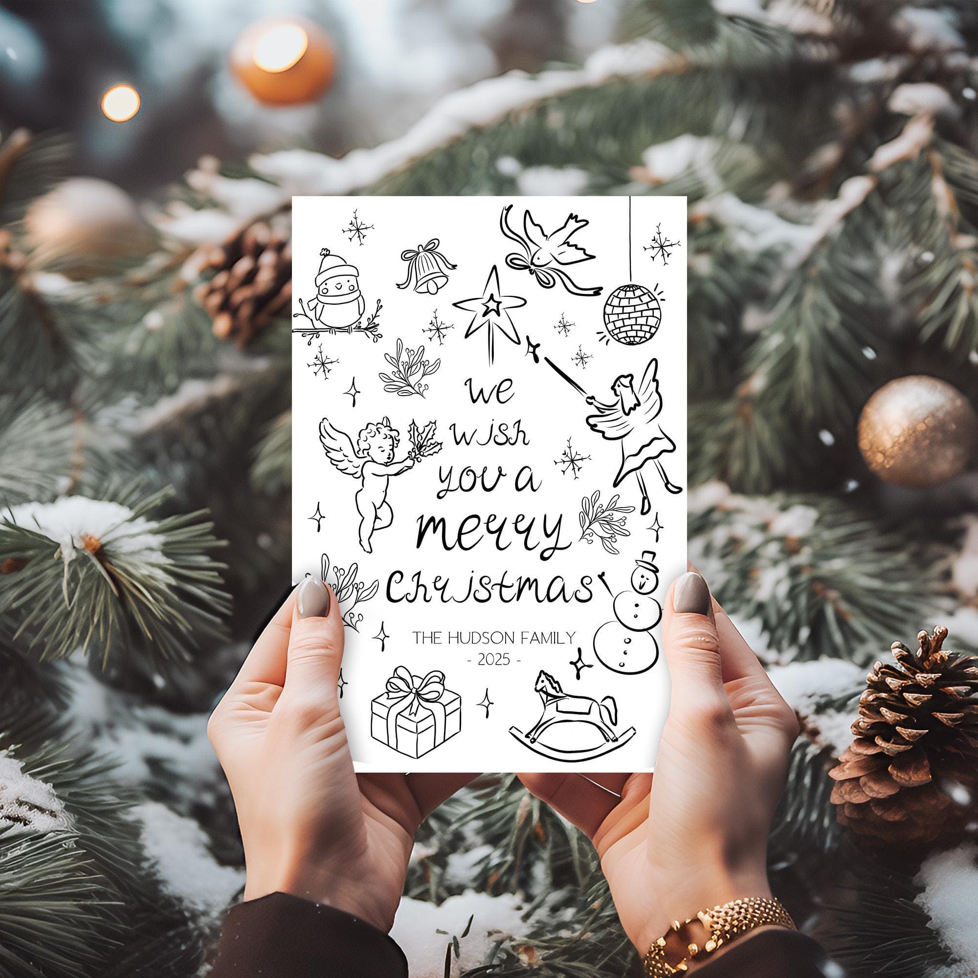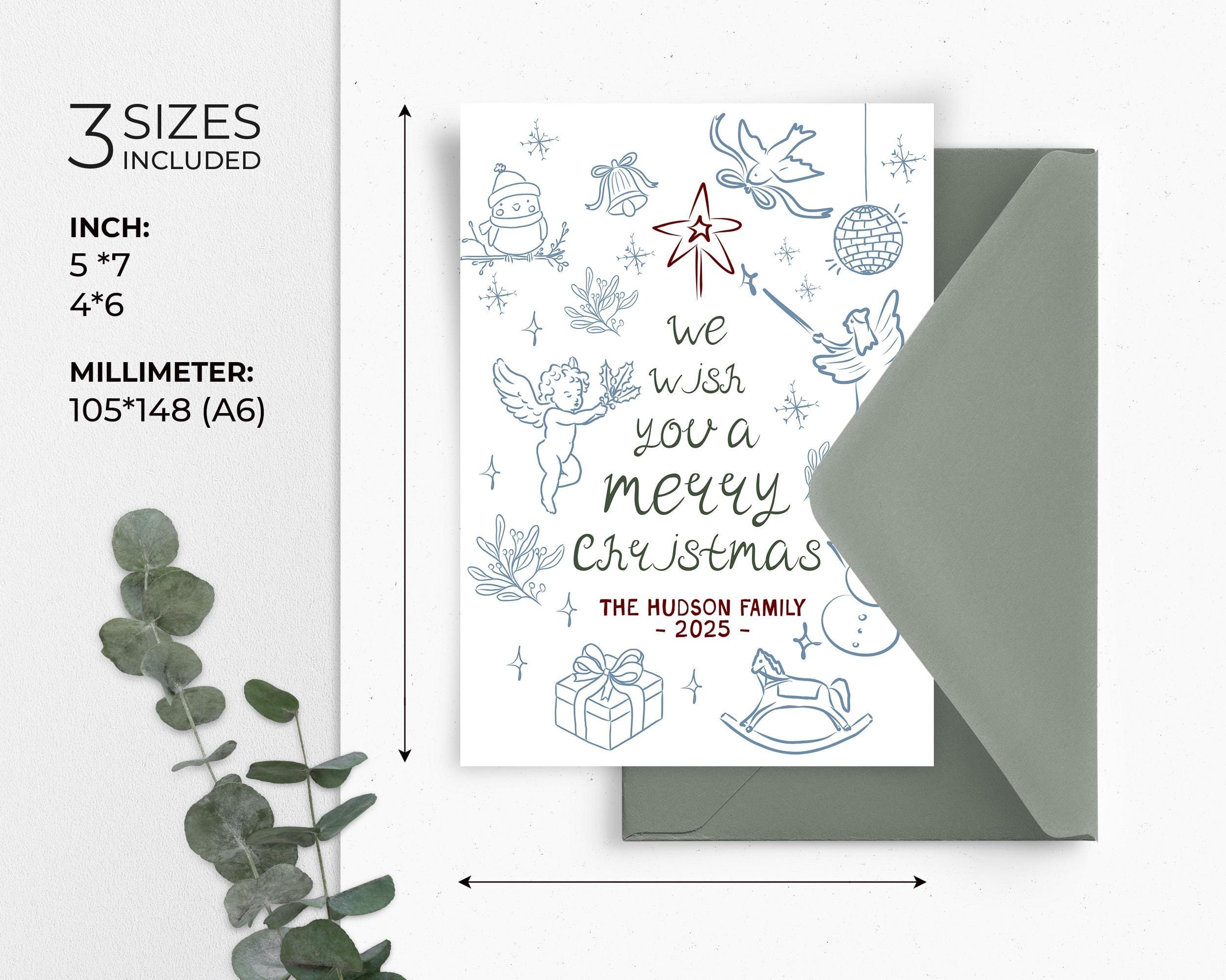 Hand-Drawn Christmas Card, EDITABLE Templates