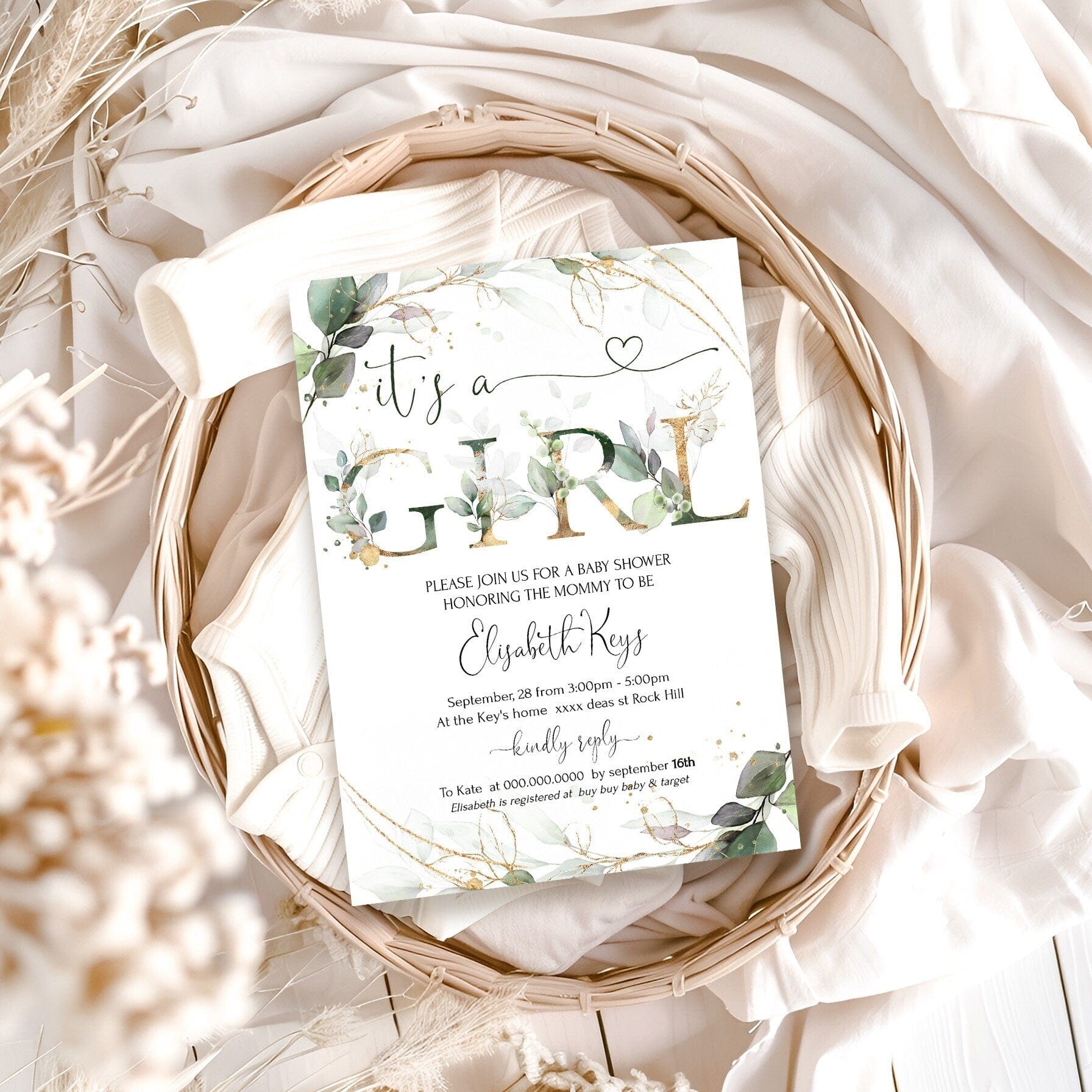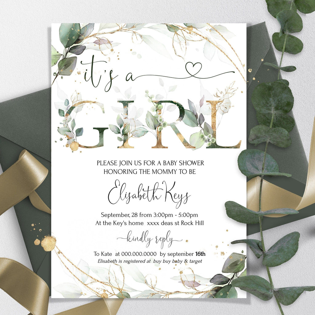 It’s a Girl Baby Shower Invite, EDITABLE Templates