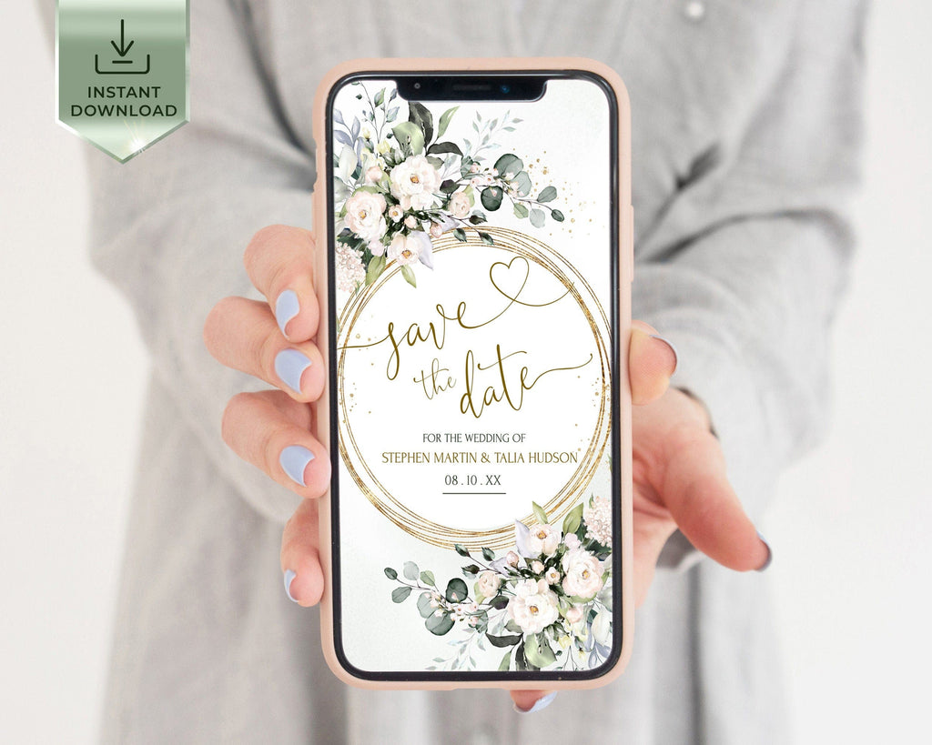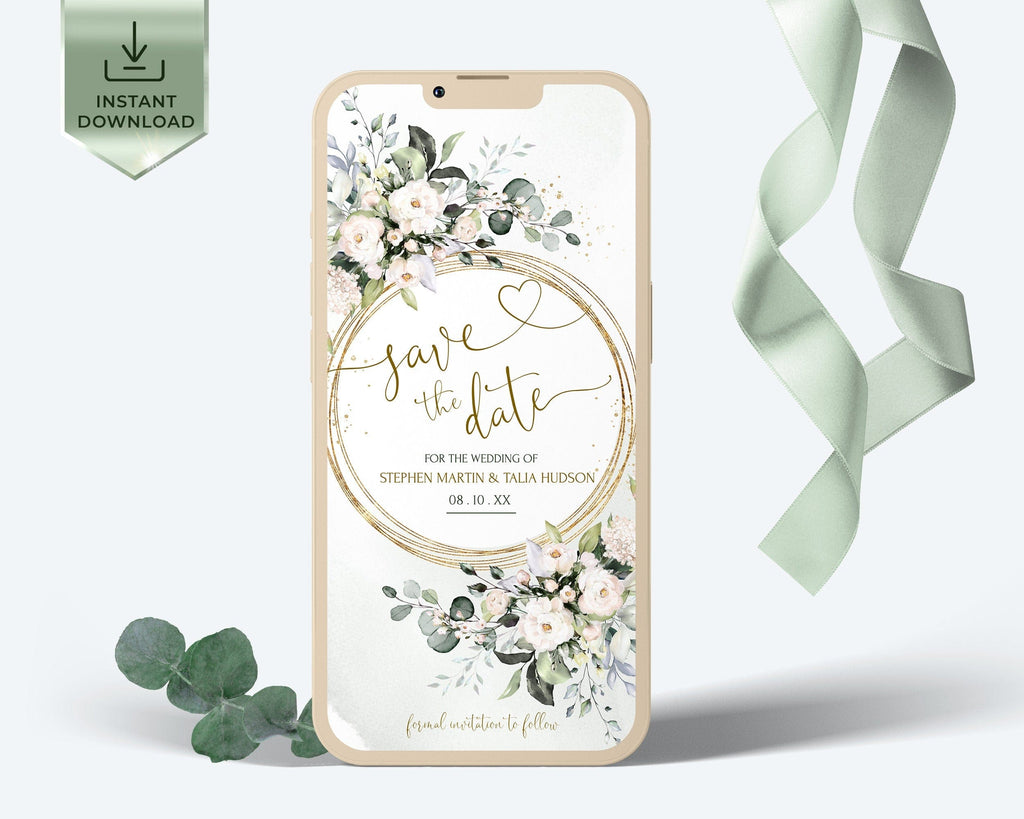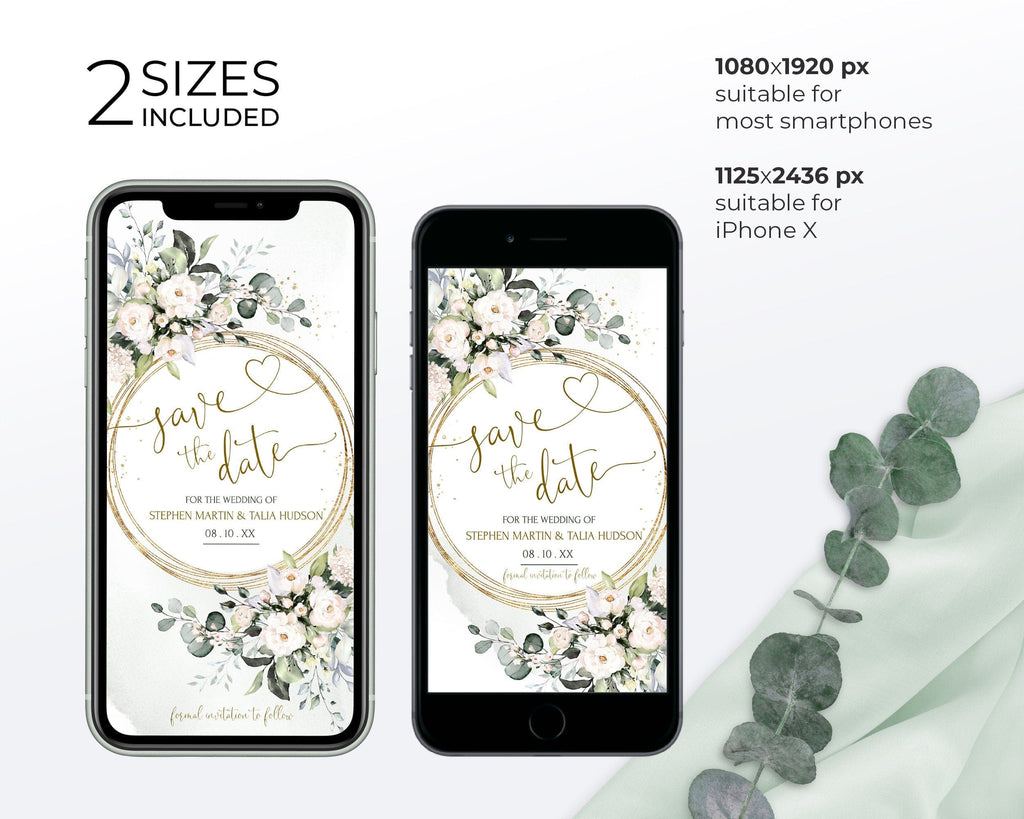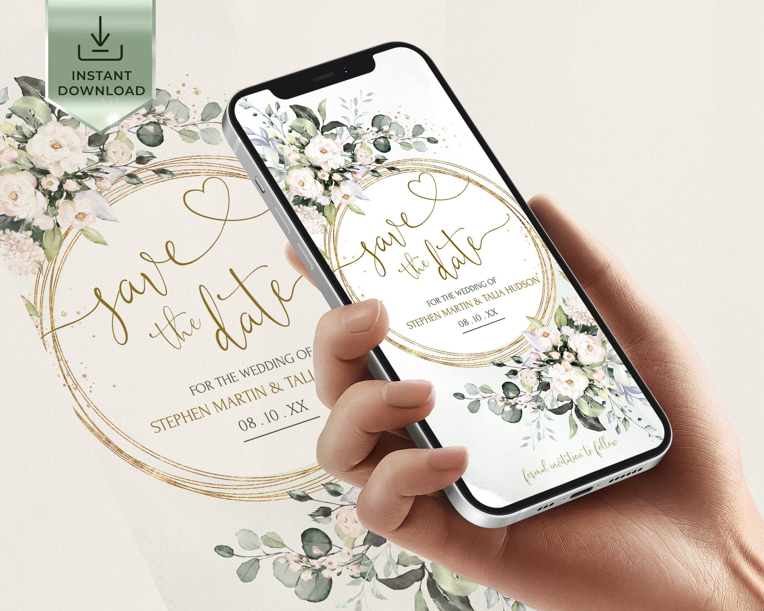 Ivory Floral Save the Date for Smartphone Use | 2 Sizes | DIY Bride Evites