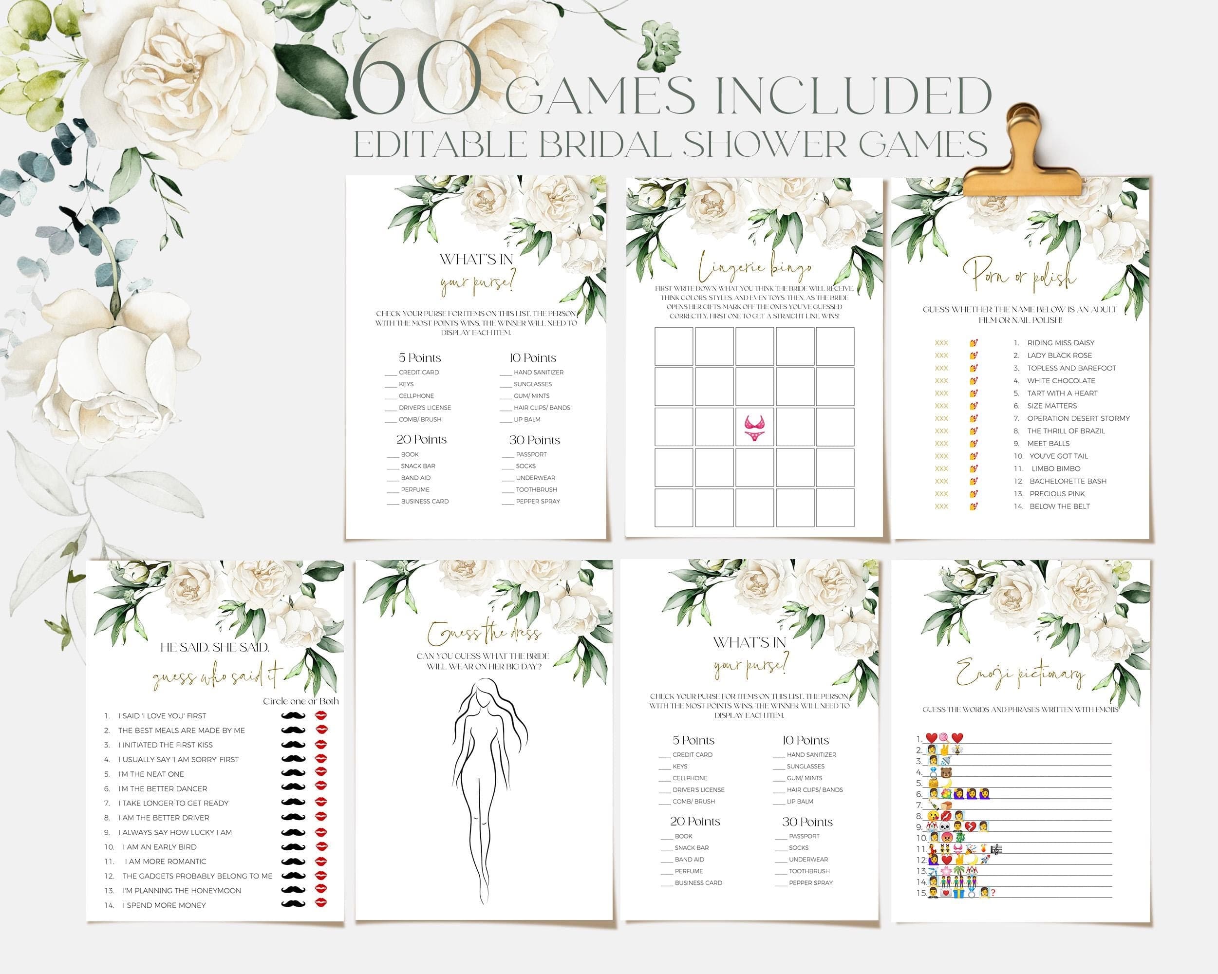 Ivory Rose Bridal Shower Games | 60 Games | Cream Floral Printable Game Pack