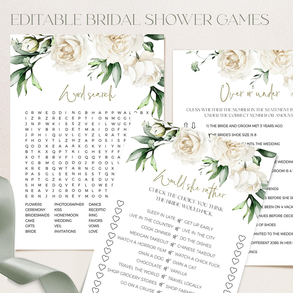 Ivory Rose Bridal Shower Games, EDITABLE Templates