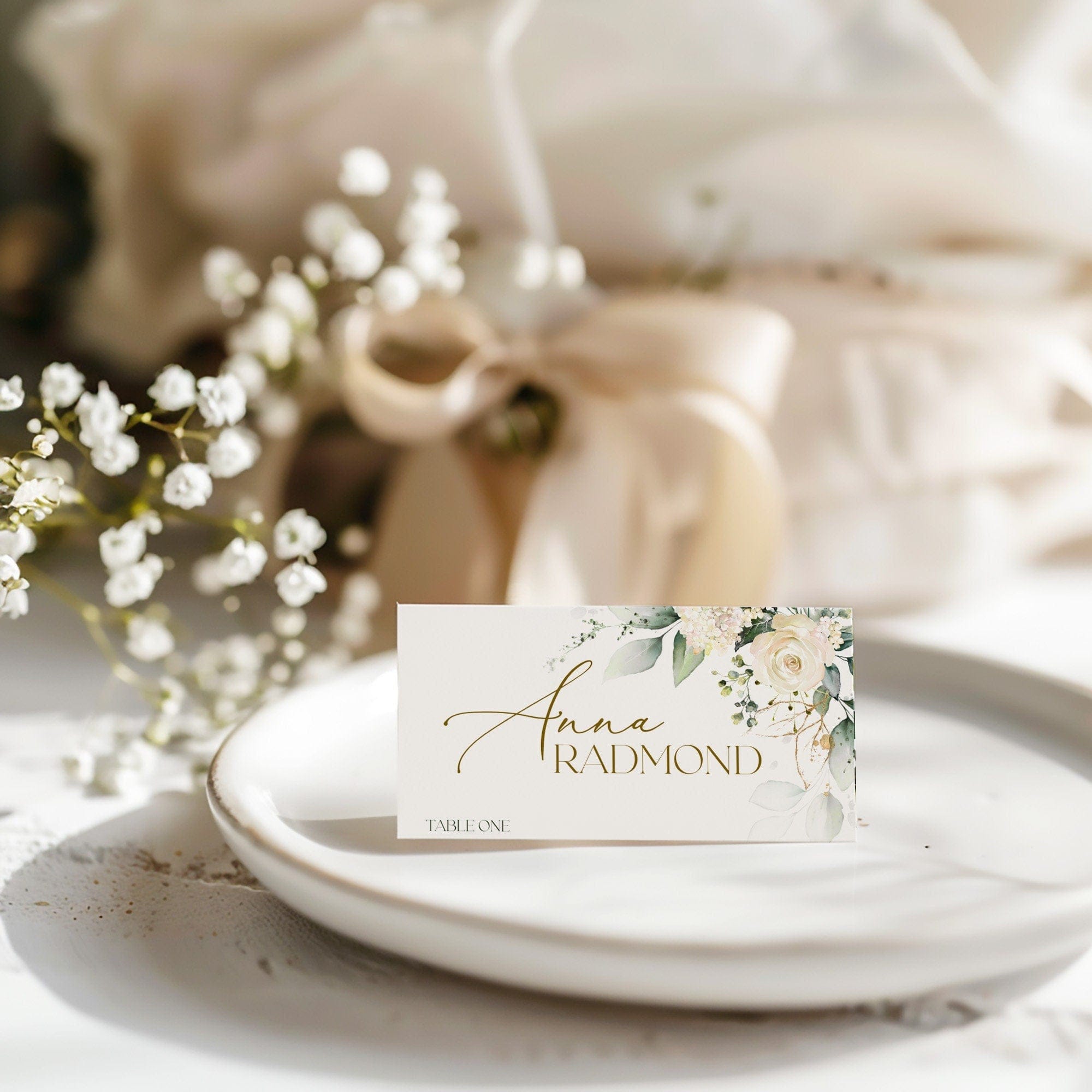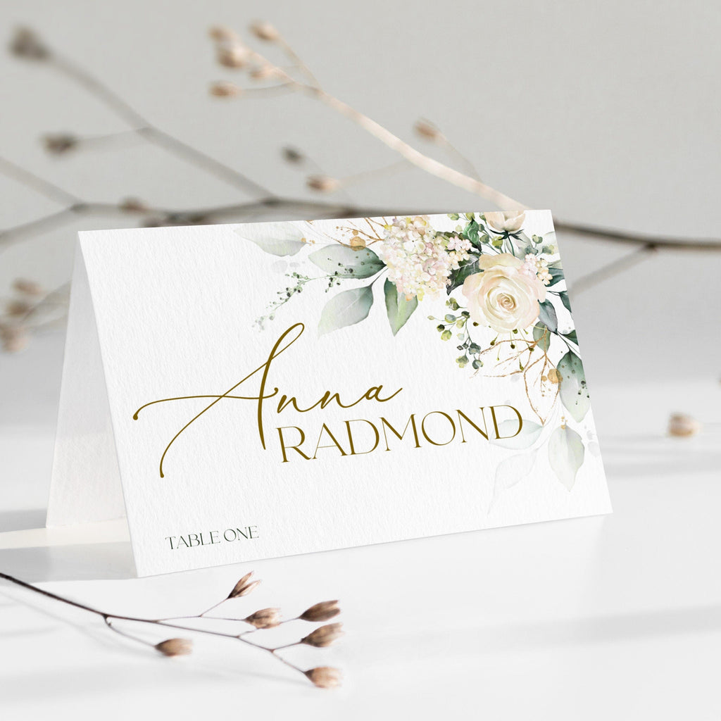 Ivory Wedding Name Card | Flat & Tent Folded | Cream Rose Name Cards