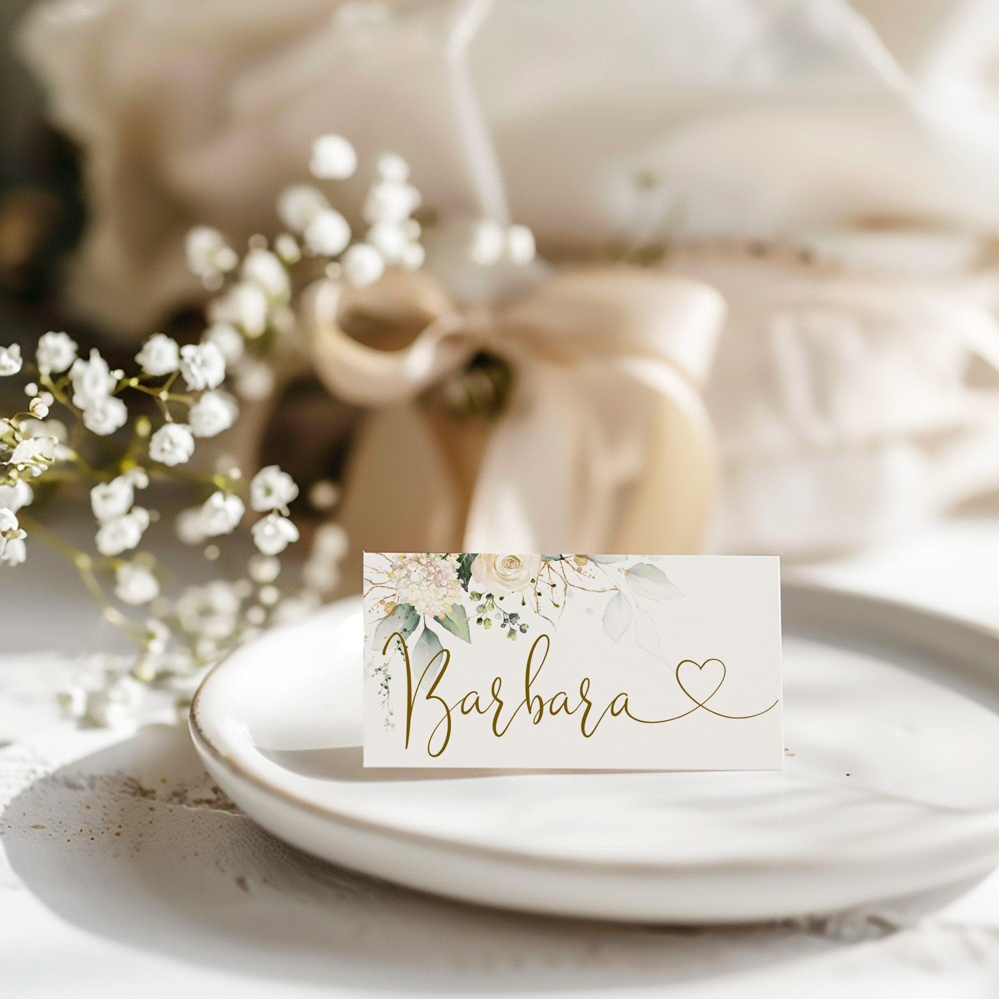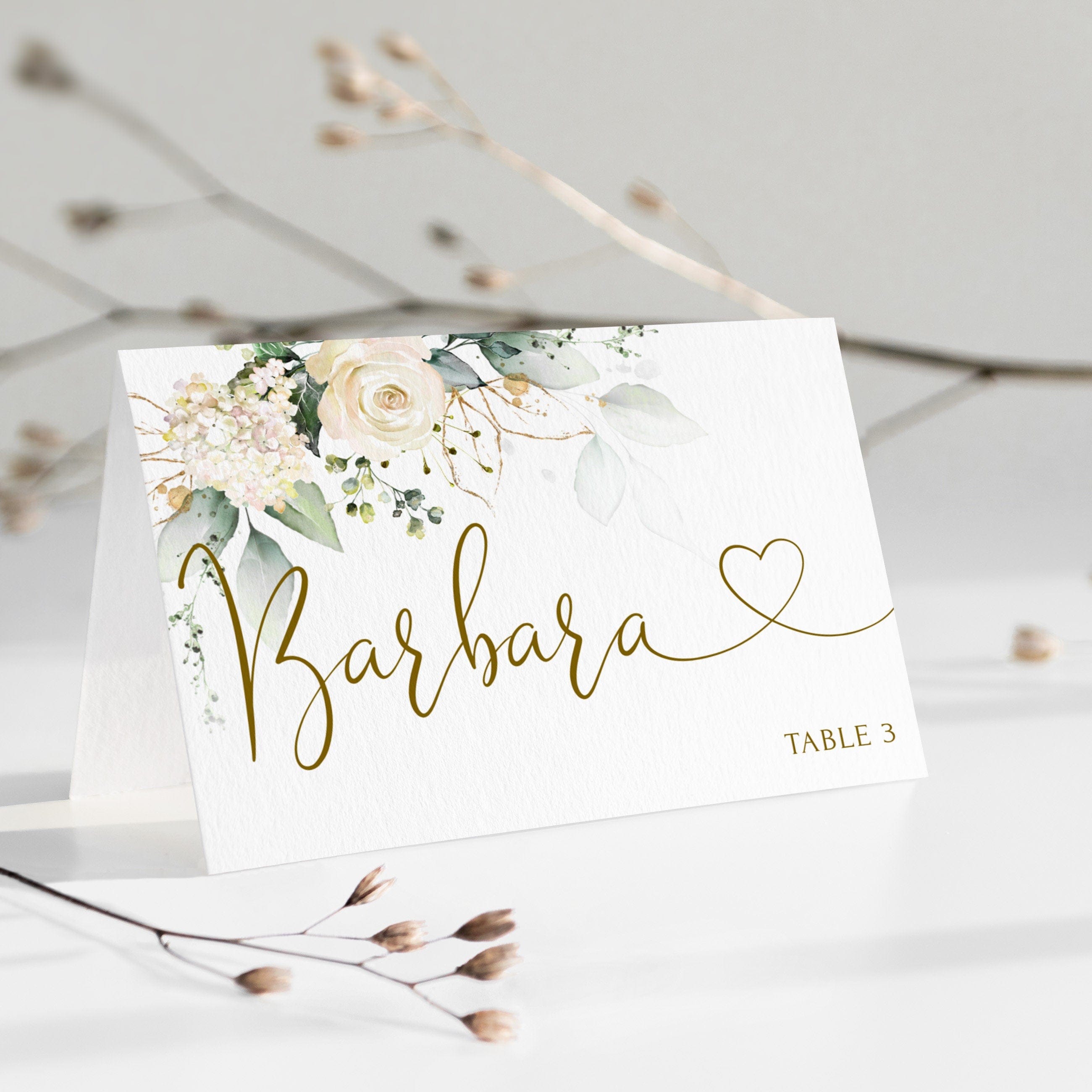 Ivory Wedding Place Card | Editable Creamy Floral Table Card