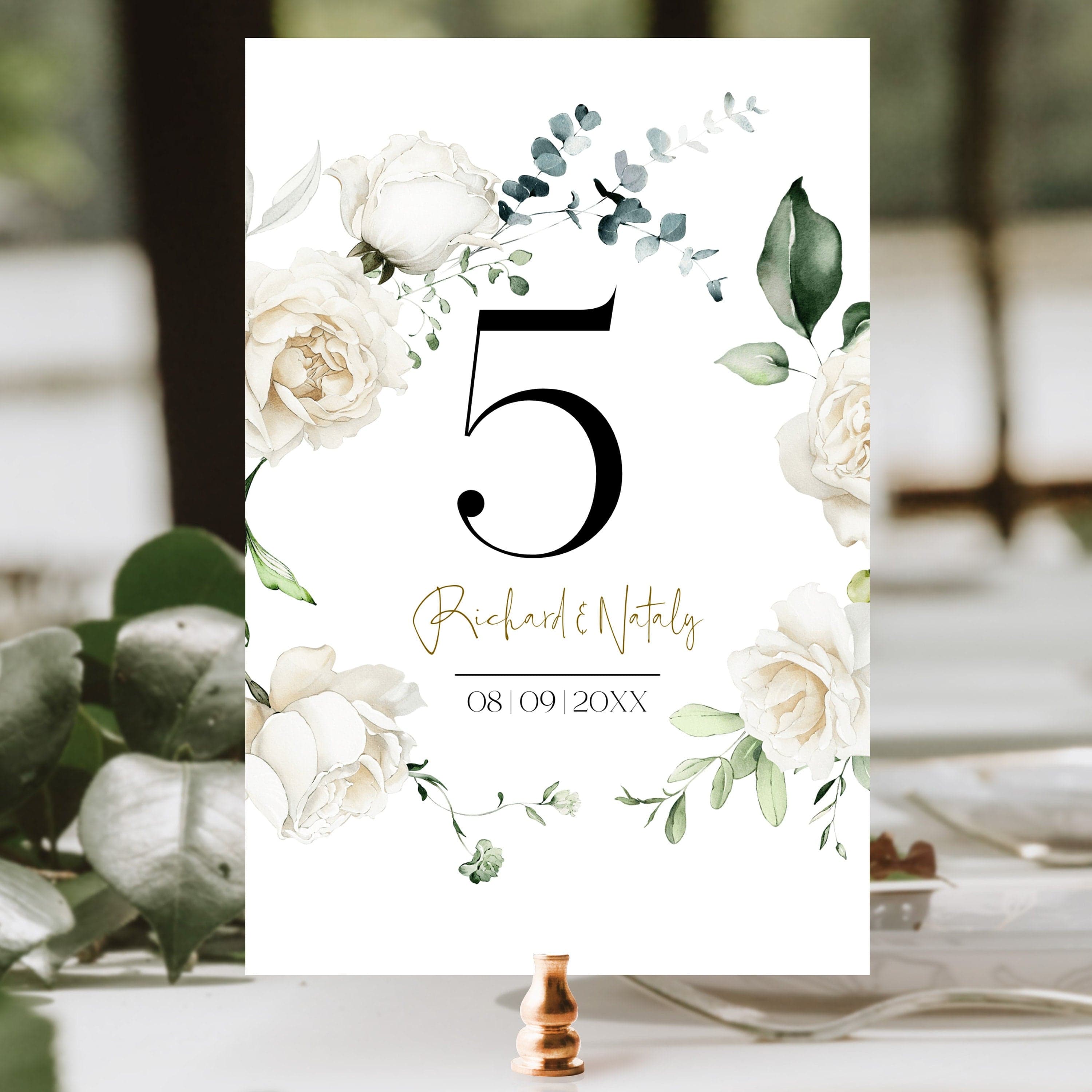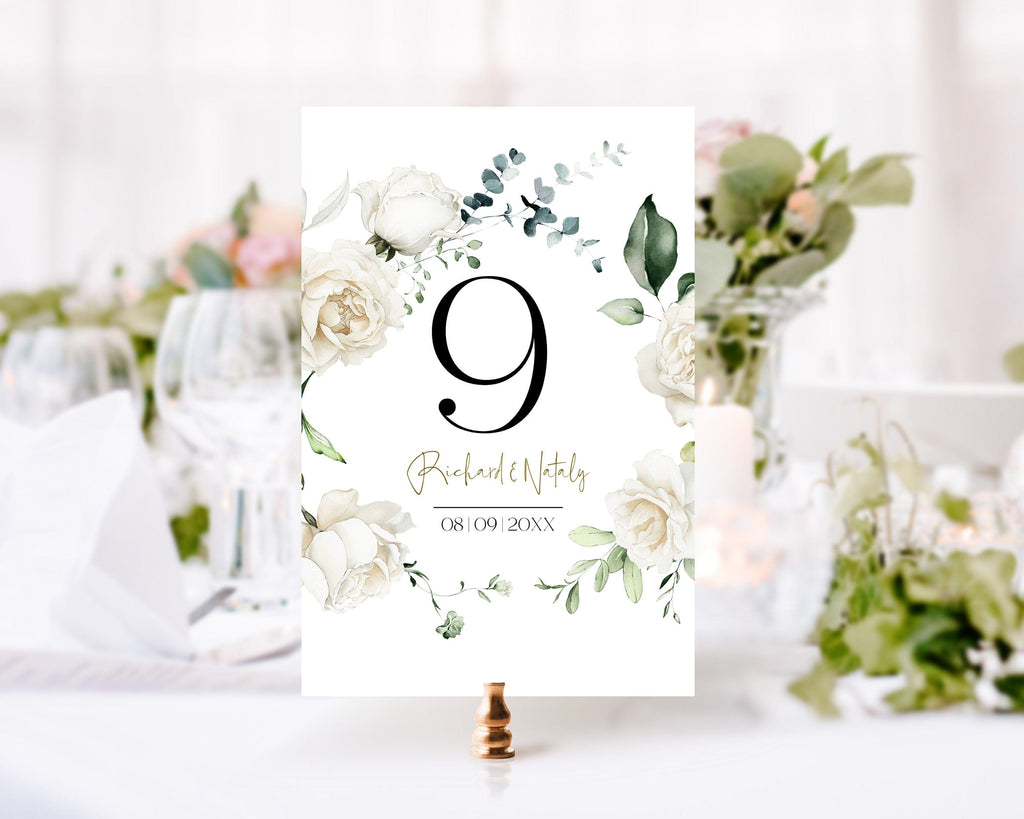Ivory Wedding Table Numbers, EDITABLE Templates