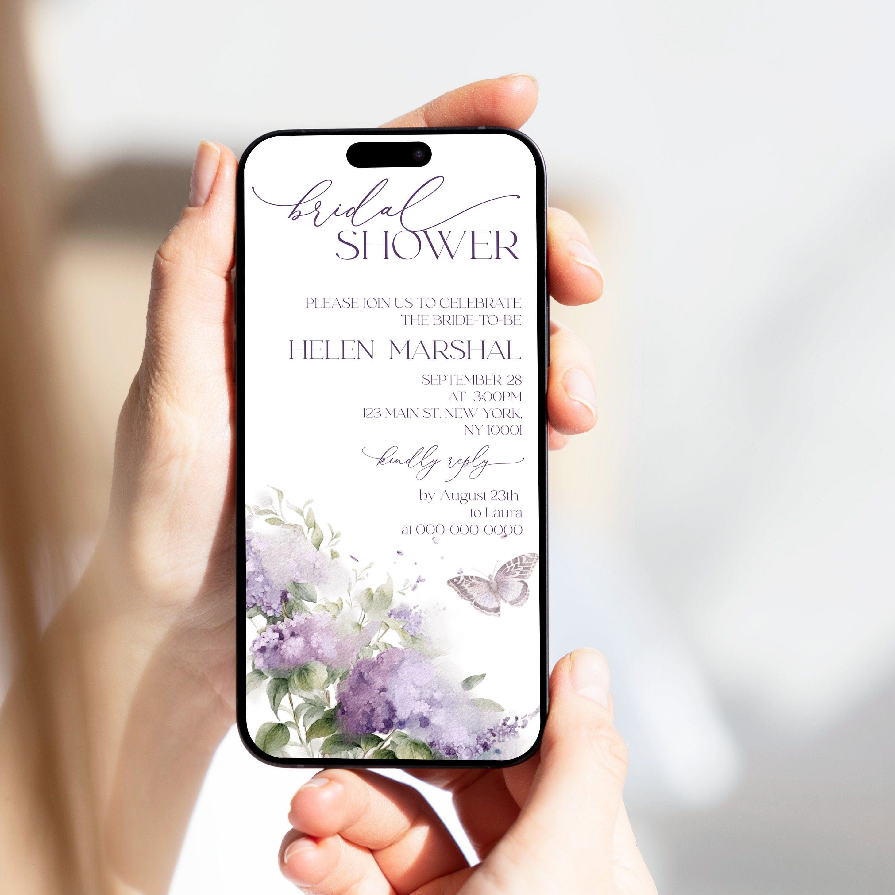 Lilac Bloom Bridal Shower Evite | 2 Sizes | Personalized Invitation