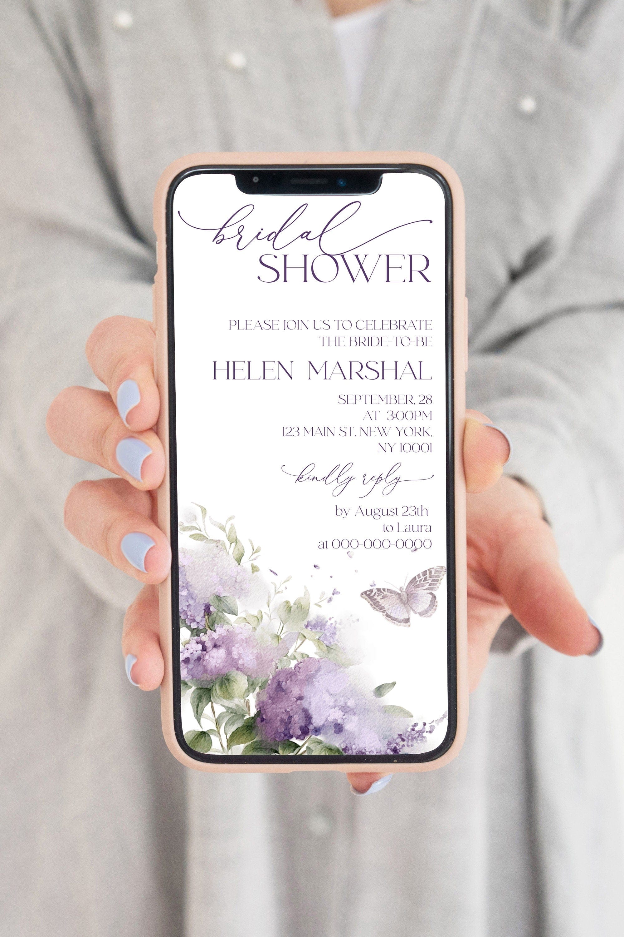 Lilac Bloom Bridal Shower Evite, EDITABLE Templates