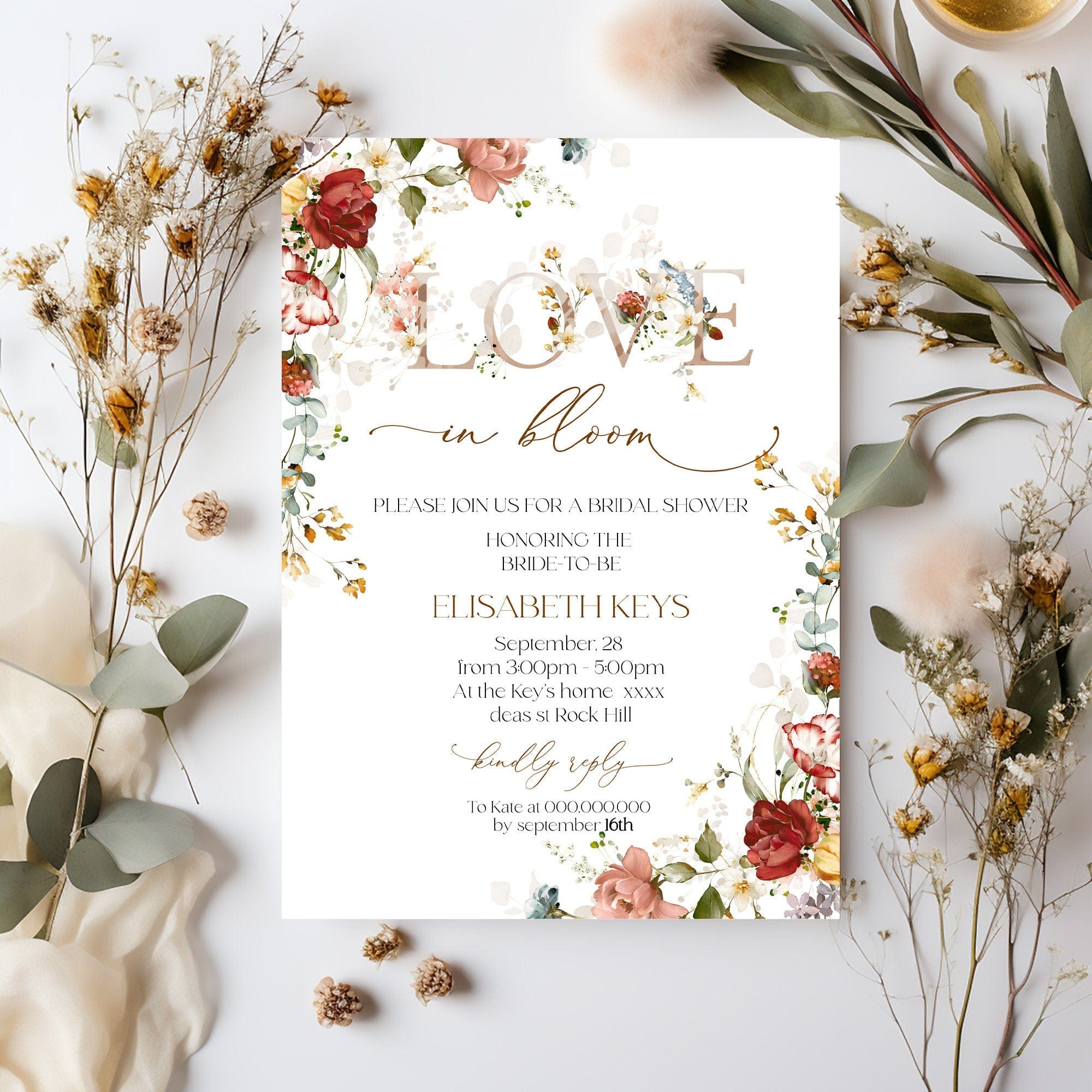 Love in Bloom Bridal Shower Invitations, EDITABLE Templates