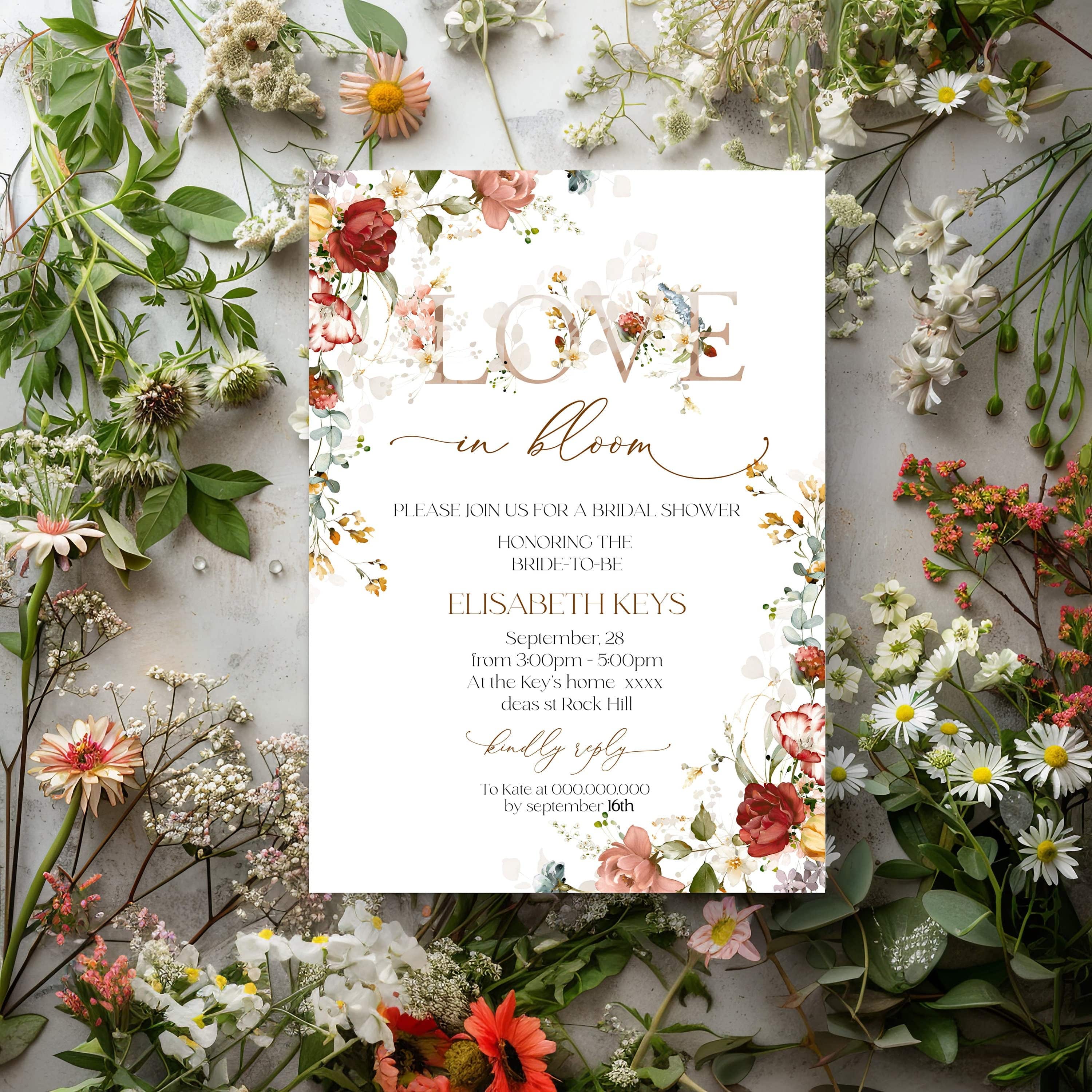 Love in Bloom Bridal Shower Invitations, Editable Bridal Shower Invite, Printable Wild Flowers Summer Invite Flowers GARDEN