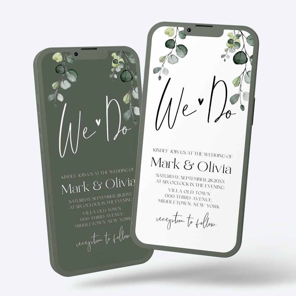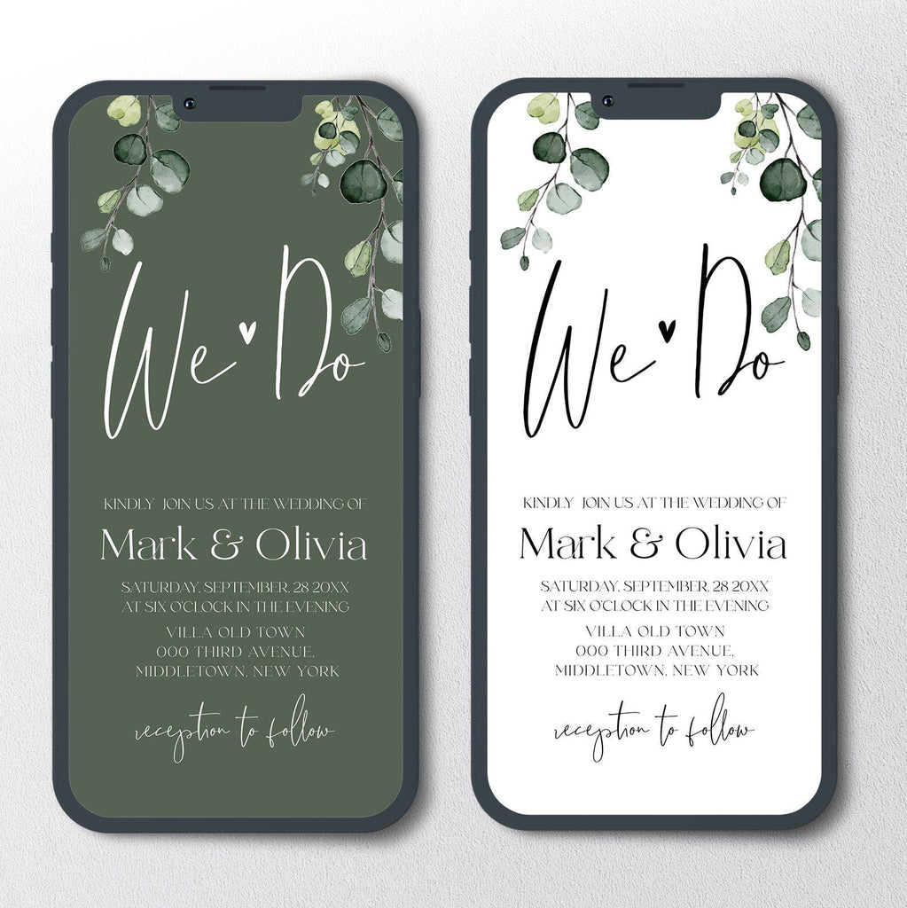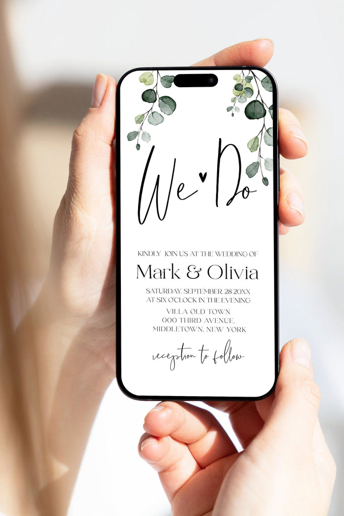 Minimalist Wedding Digital Invitation | iPhone Optimized | Eucalyptus Greenery eInvite