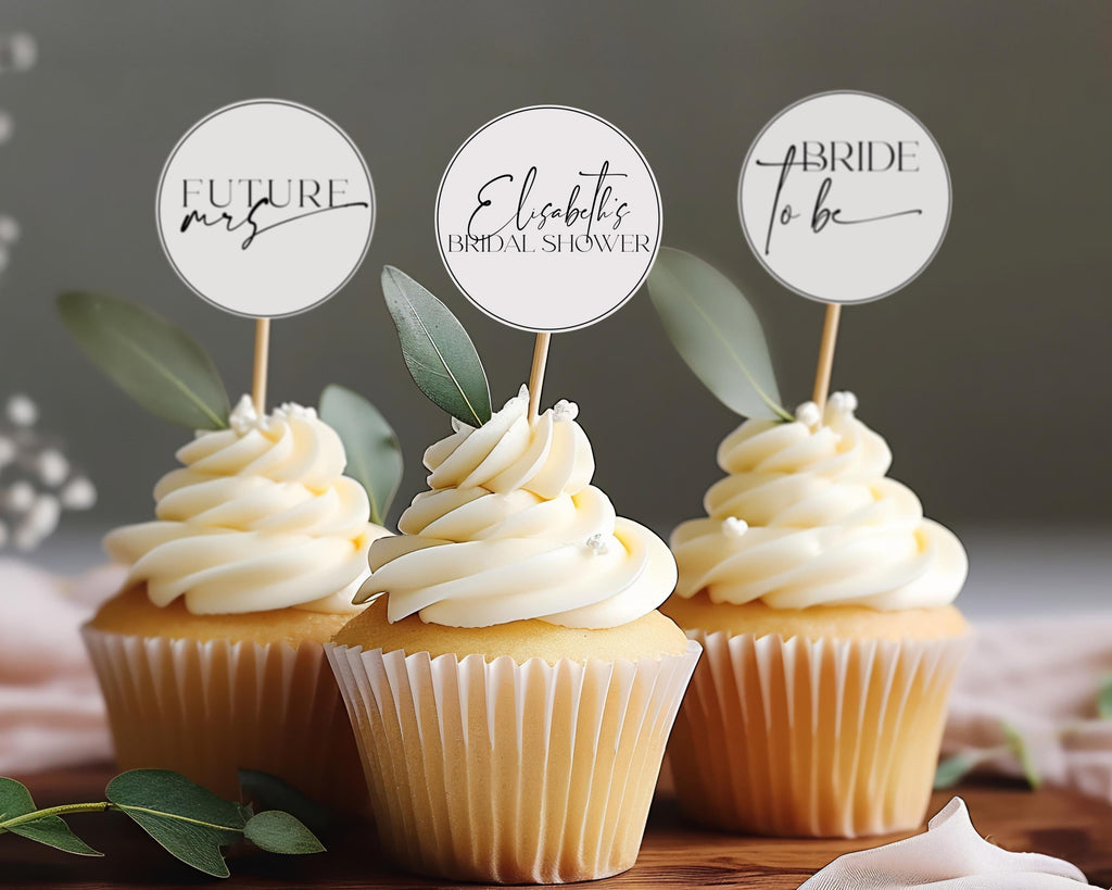 Minimalist Bridal Shower Cupcake Toppers, EDITABLE Templates