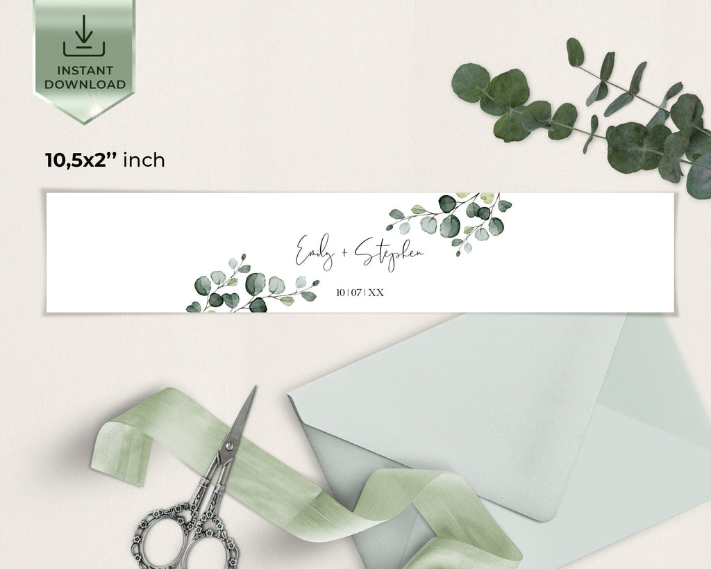 Minimalist Eucalyptus Belly Band | Editable Modern Wedding Bellyband