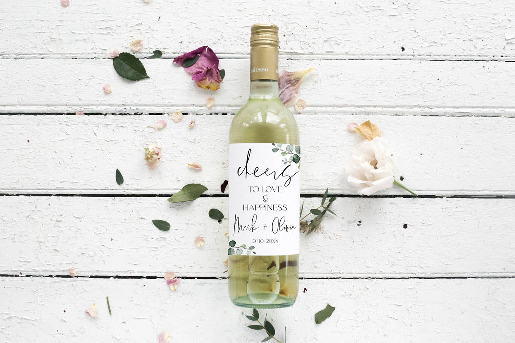 Minimalist Eucalyptus Bottle Label | 2 Sizes | Greenery Wedding Bottle Sticker