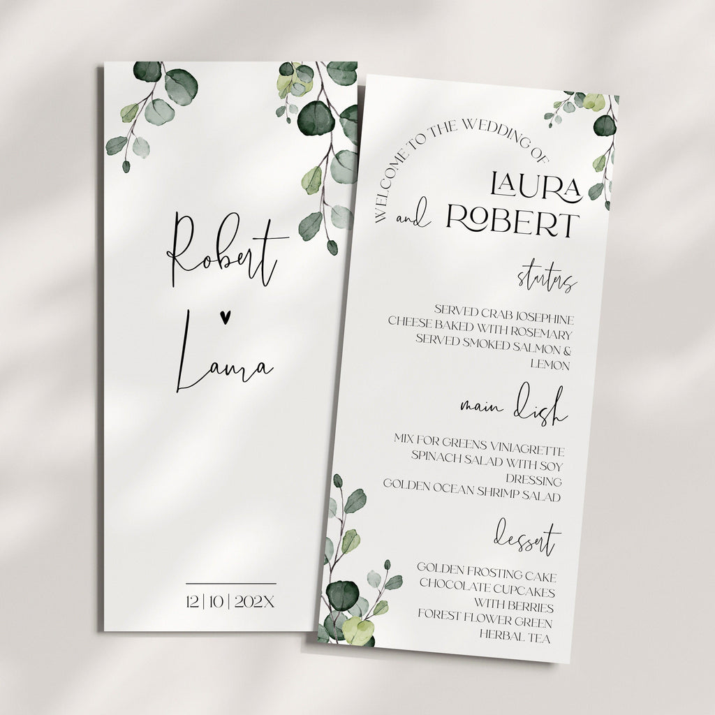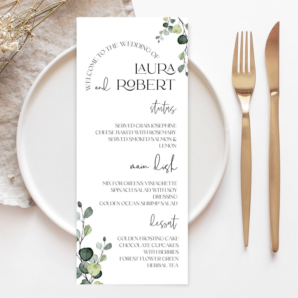 Modern Wedding Menu Cards | 2 Sizes | Printable Greenery Dinner Menu
