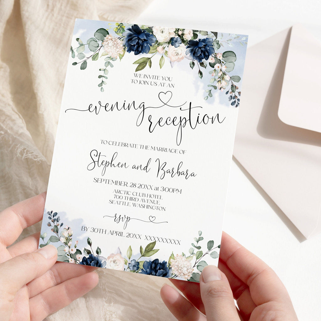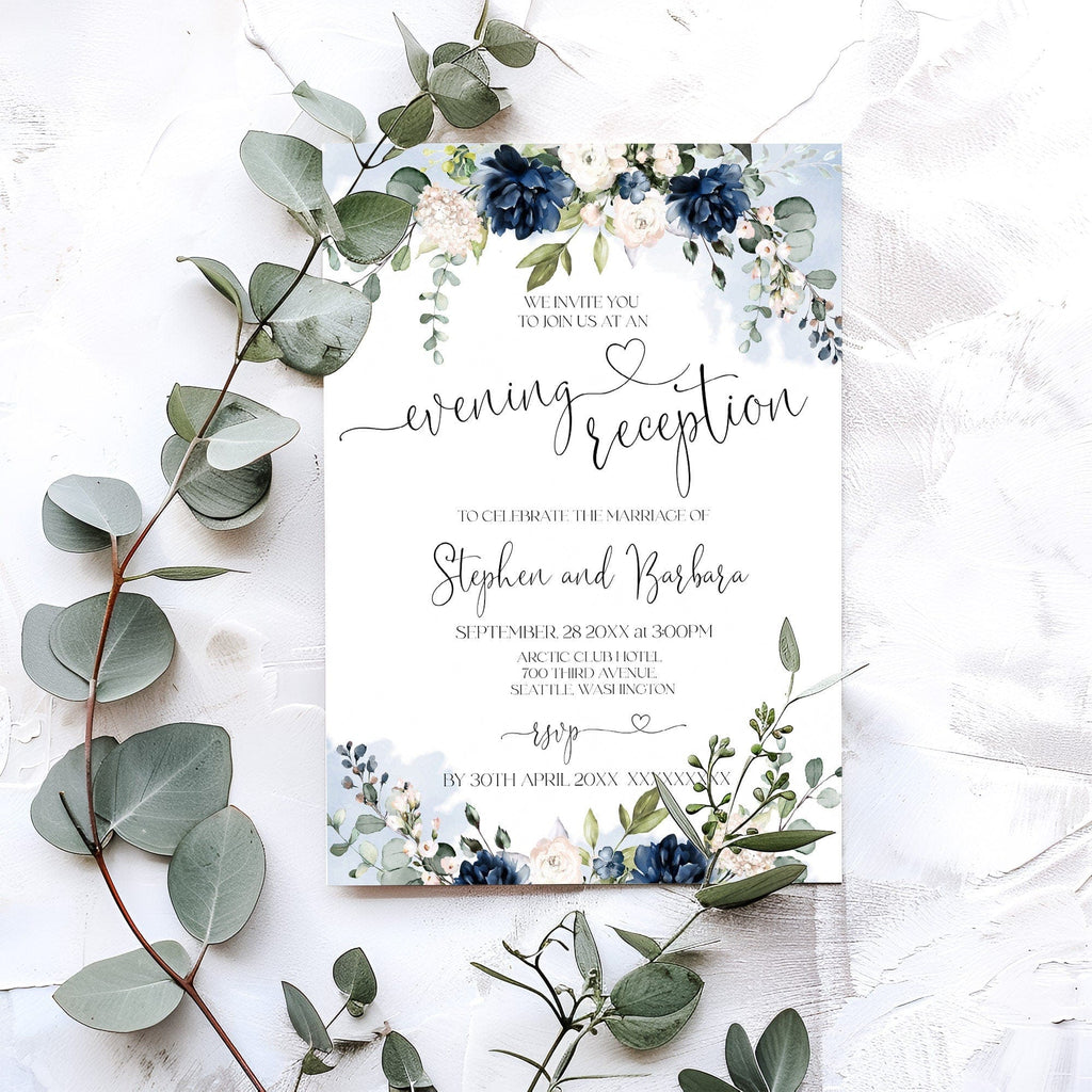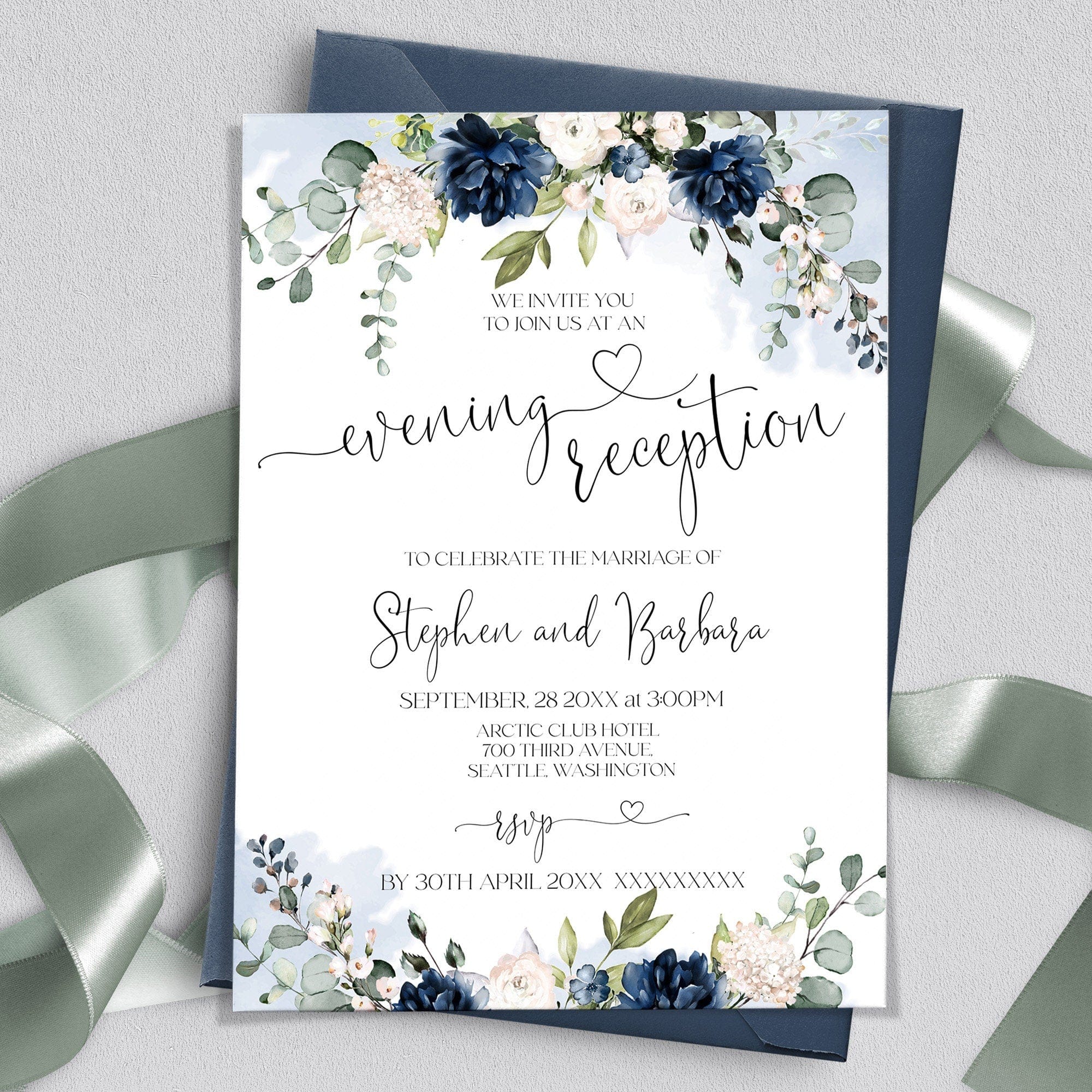 Navy Blue Evening Reception Invitations | 3 Sizes | DIY Reception Idea