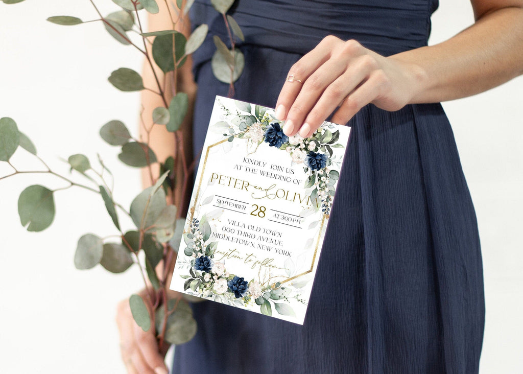 Navy Blue & Gold Wedding Invitation, EDITABLE Templates