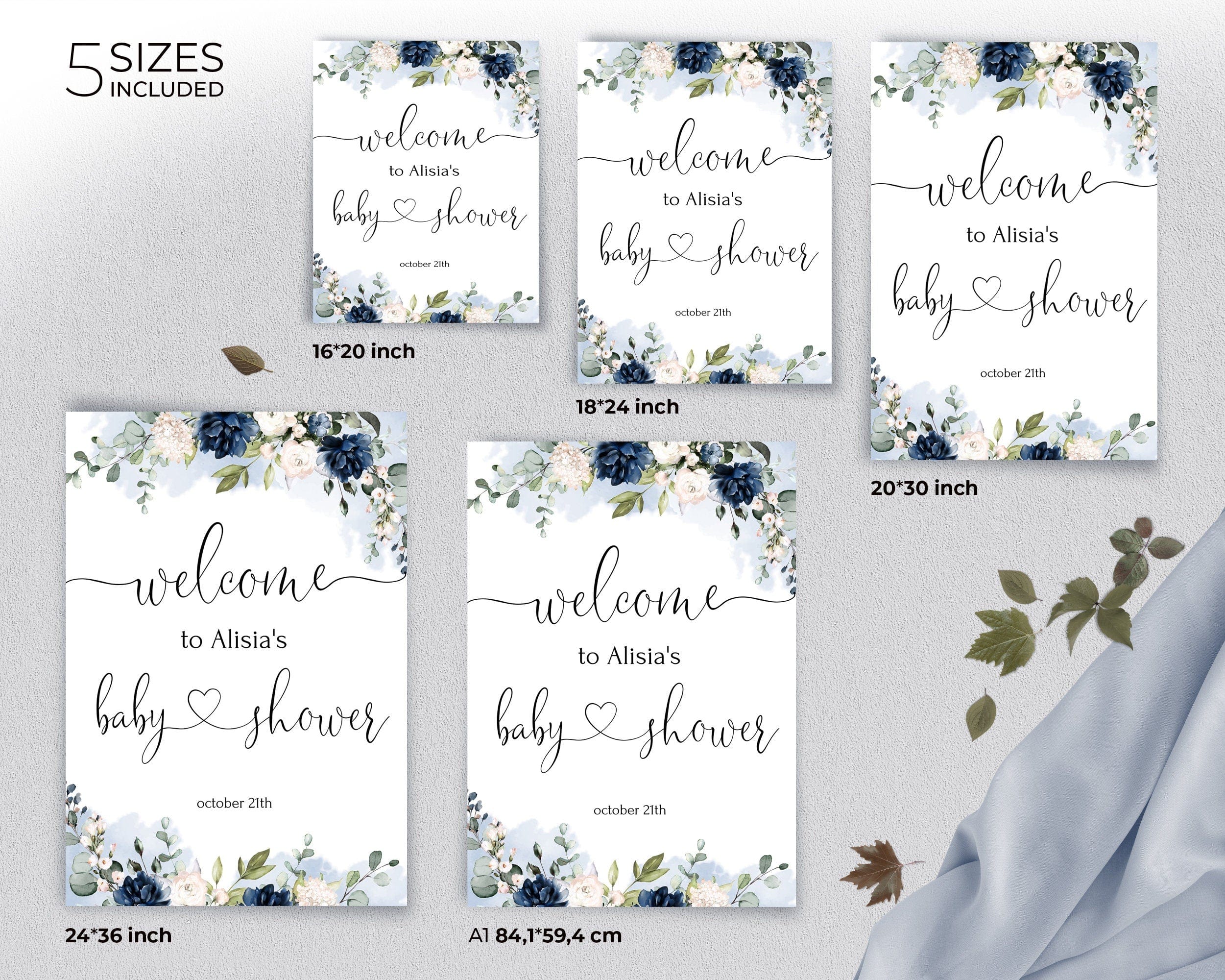 Navy & Ivory Welcome Posters | 5 Sizes | Modern Baby Shower Ideas
