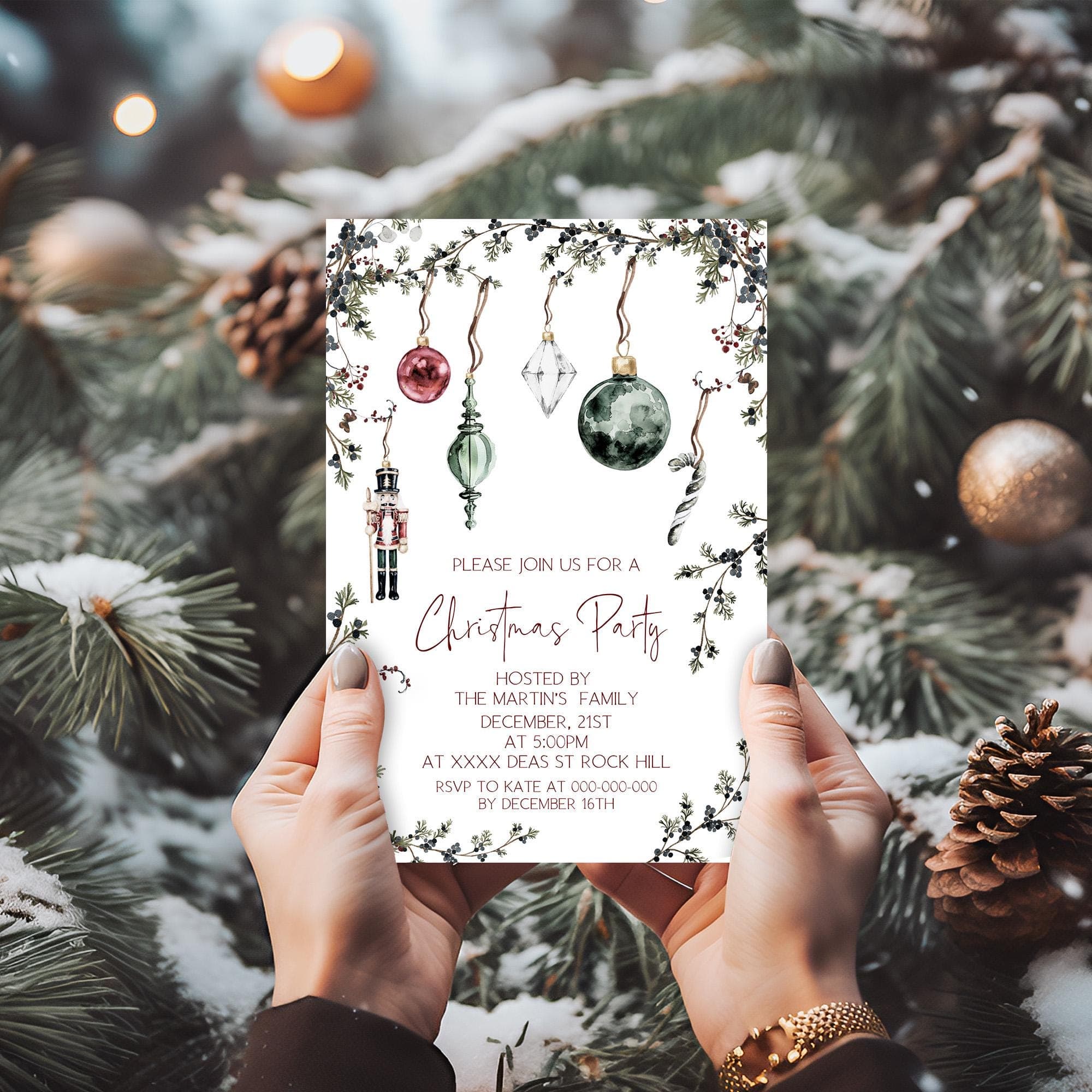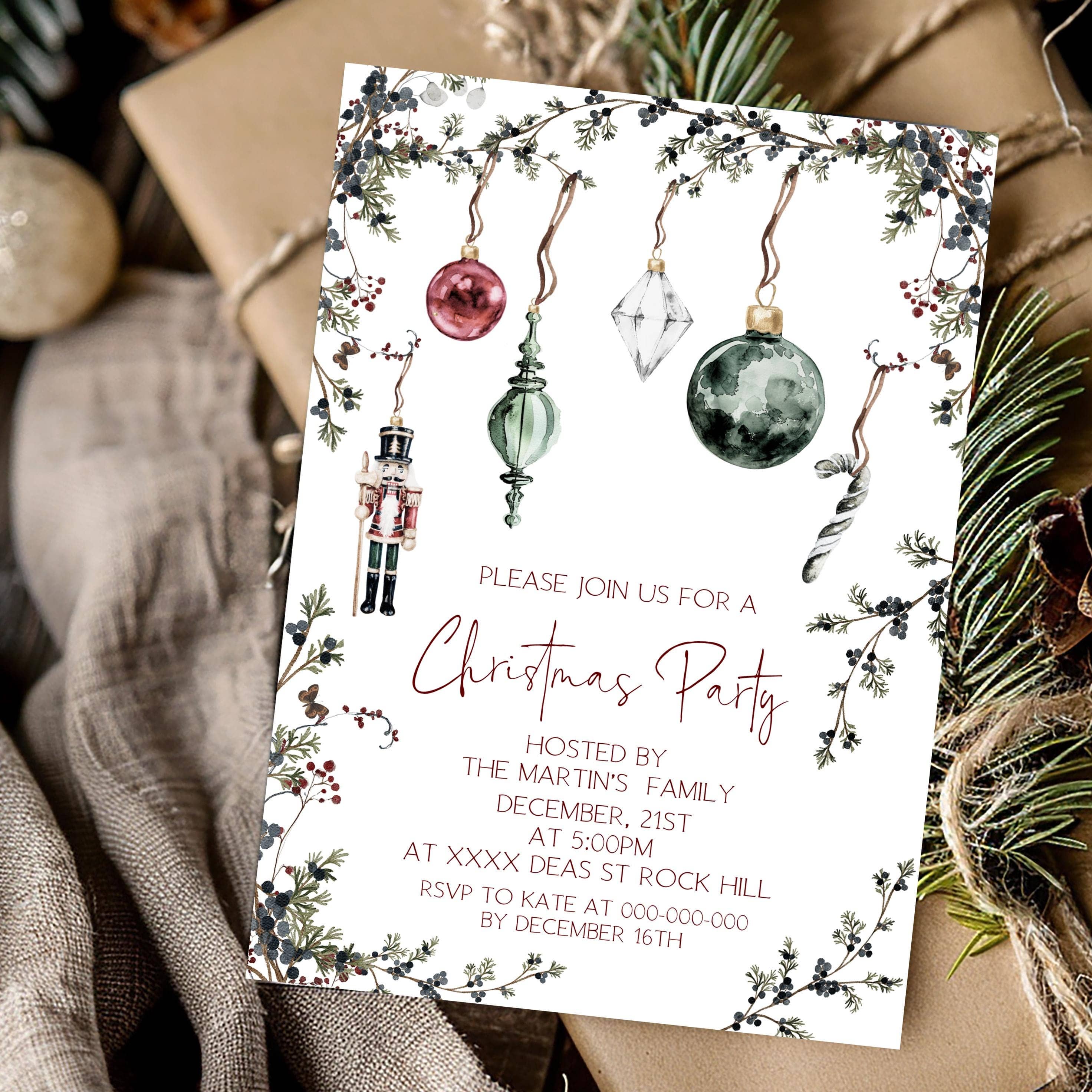 Nutcracker Christmas Party Invitation, EDITABLE Templates