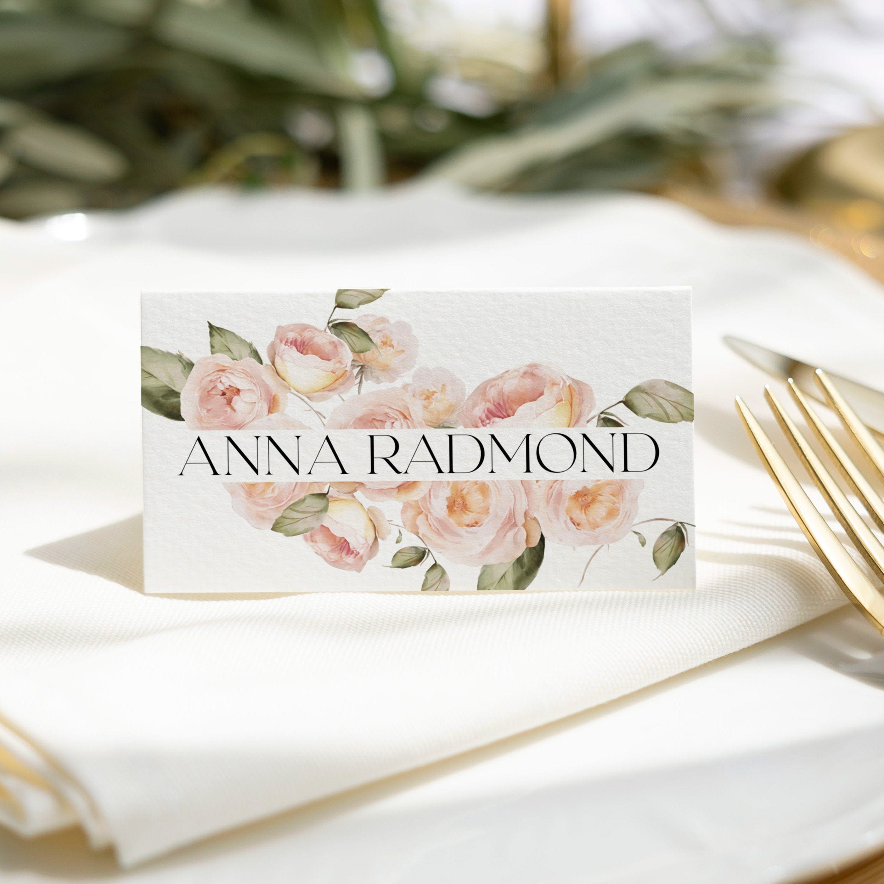 Peach Rose Place Card | Elegant Wedding Name Card Printable