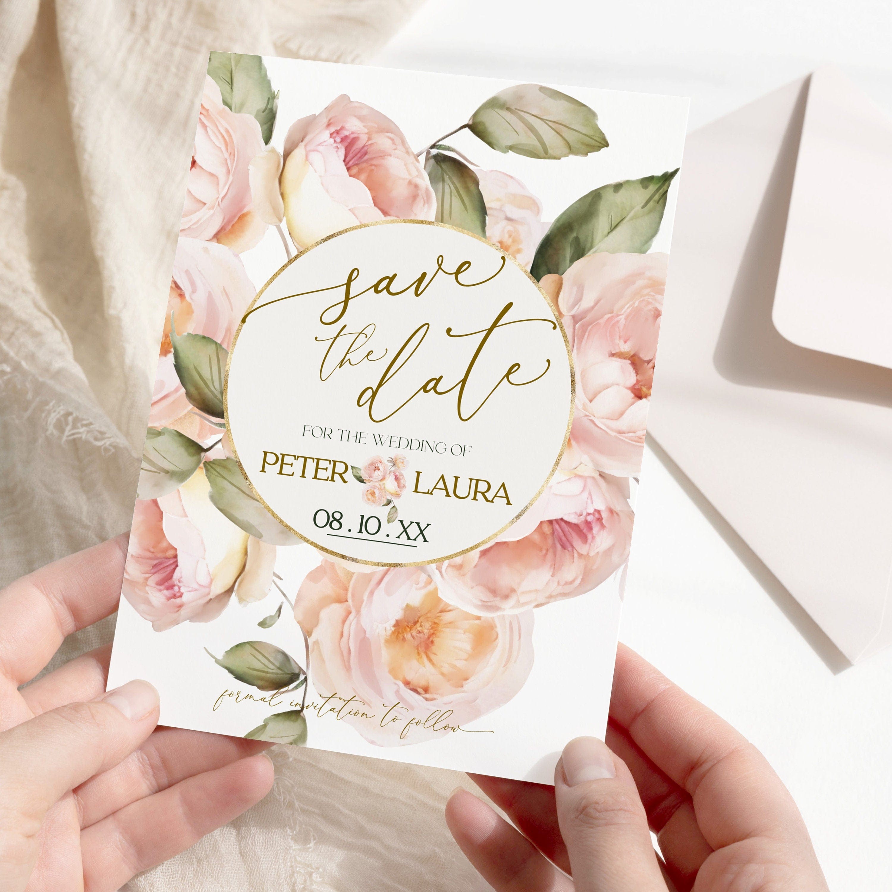 Peach Rose Save the Date, EDITABLE Templates