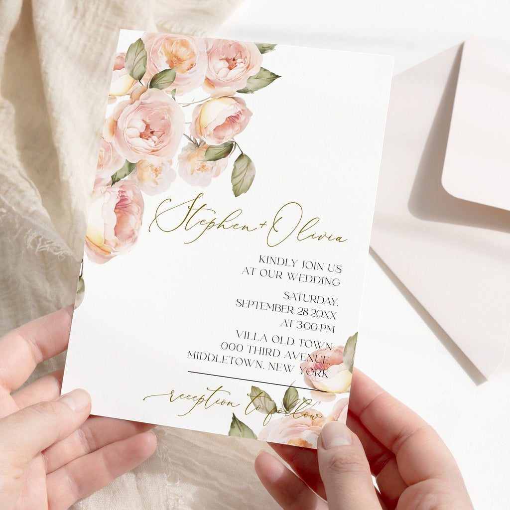 Peach Rose Wedding Invitation, EDITABLE Templates