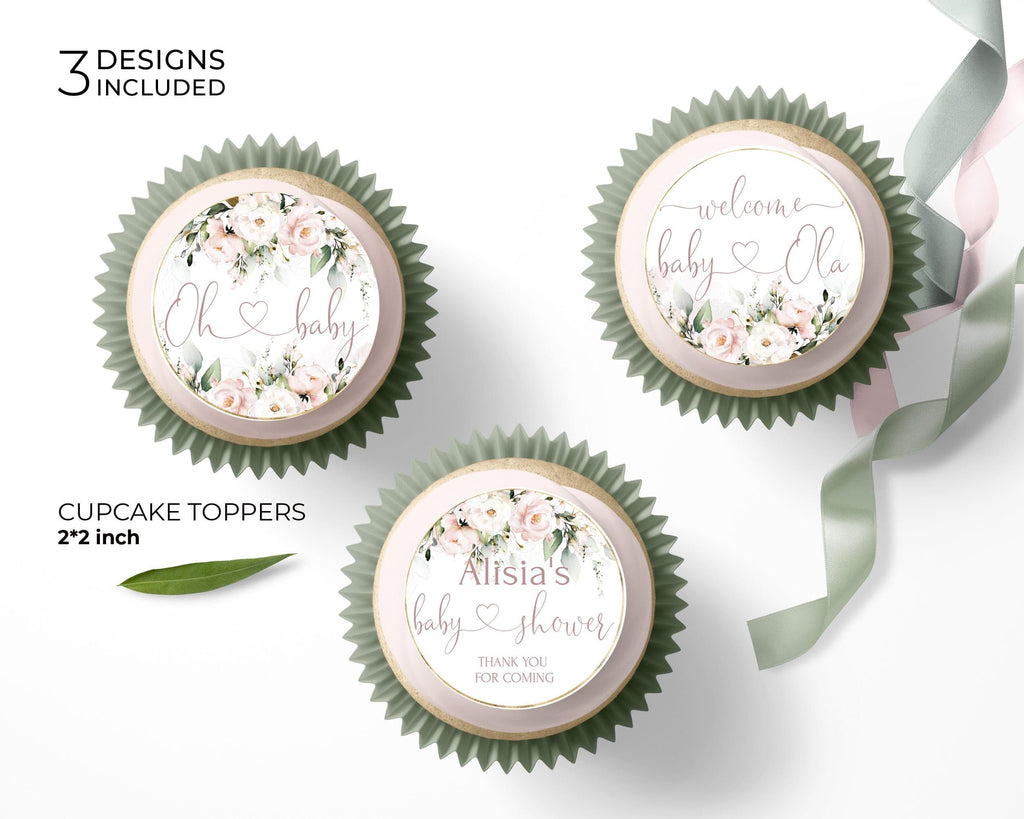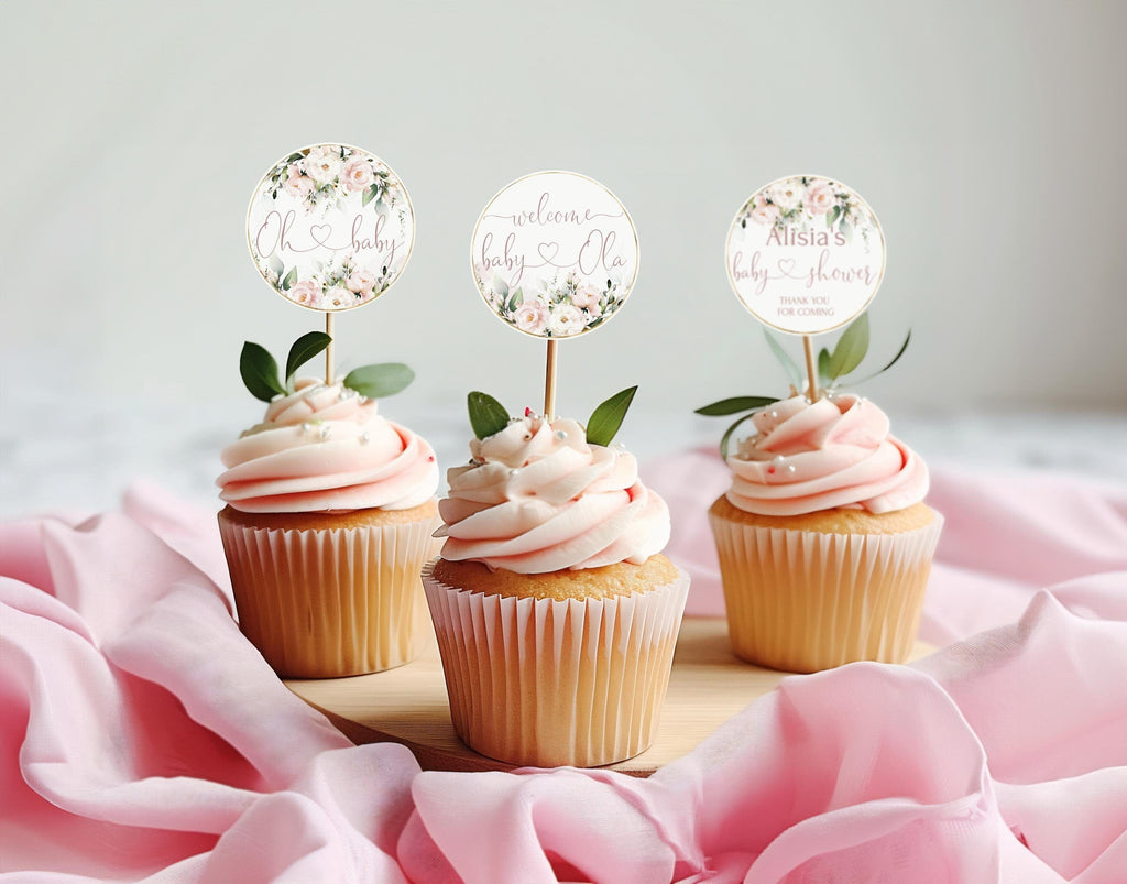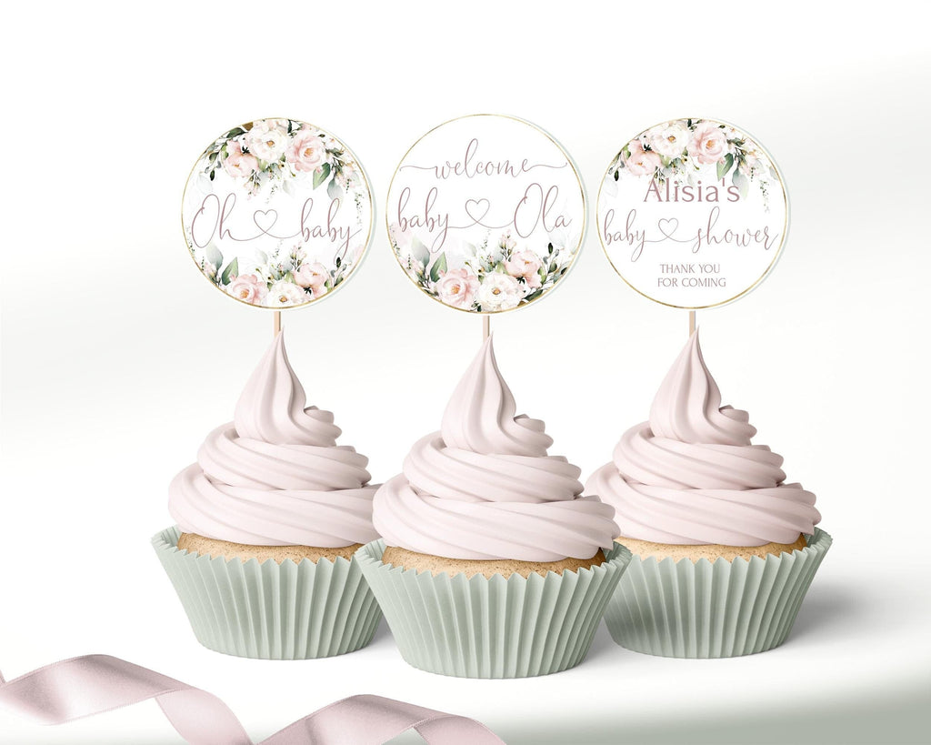 Blush Pink Baby Shower Toppers | 3 Designs Included | Editable Girl Tags