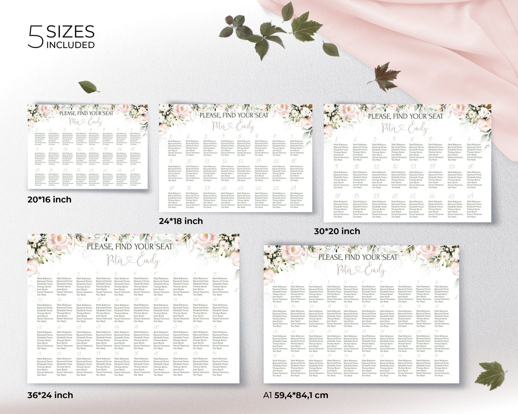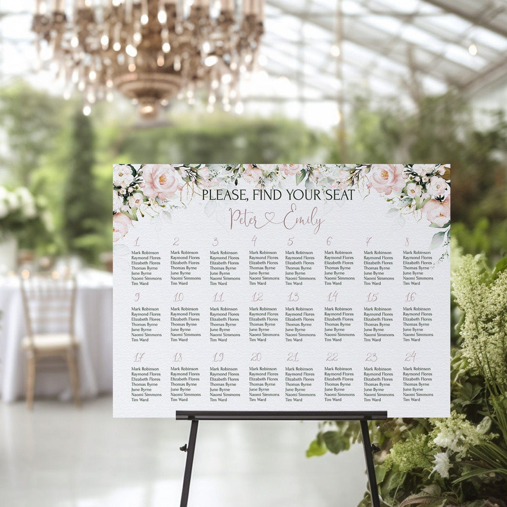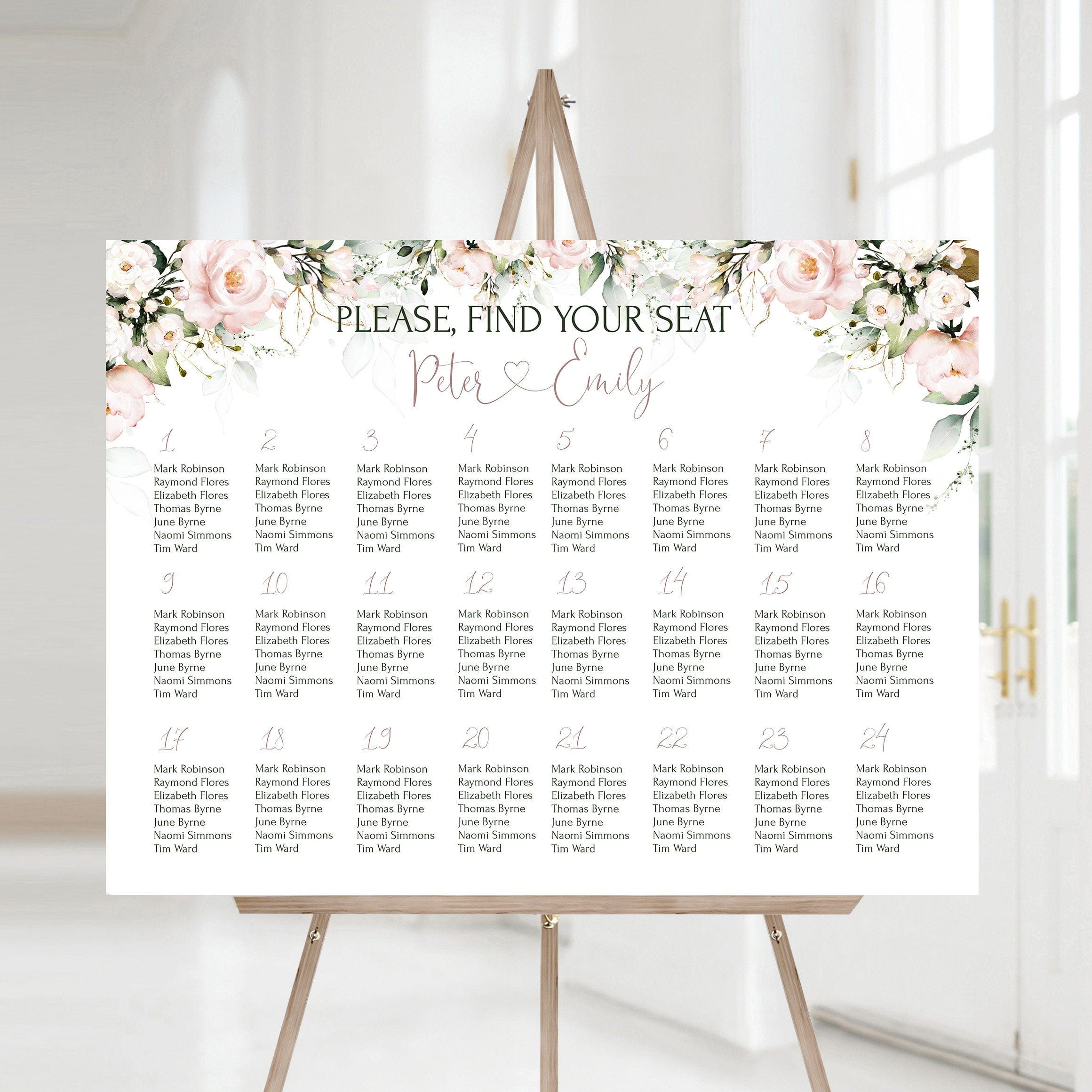 Pink Wedding Seating Chart | 6 Sizes | Personalized Escort Boards