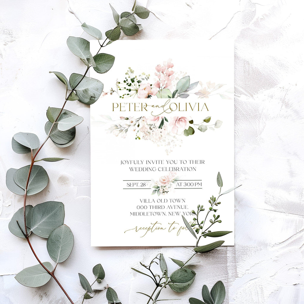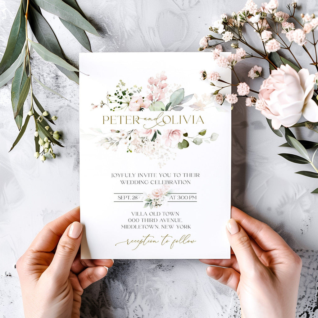 Printable Soft Pink Wedding Invite Suite | Editable Blush Pink Cards