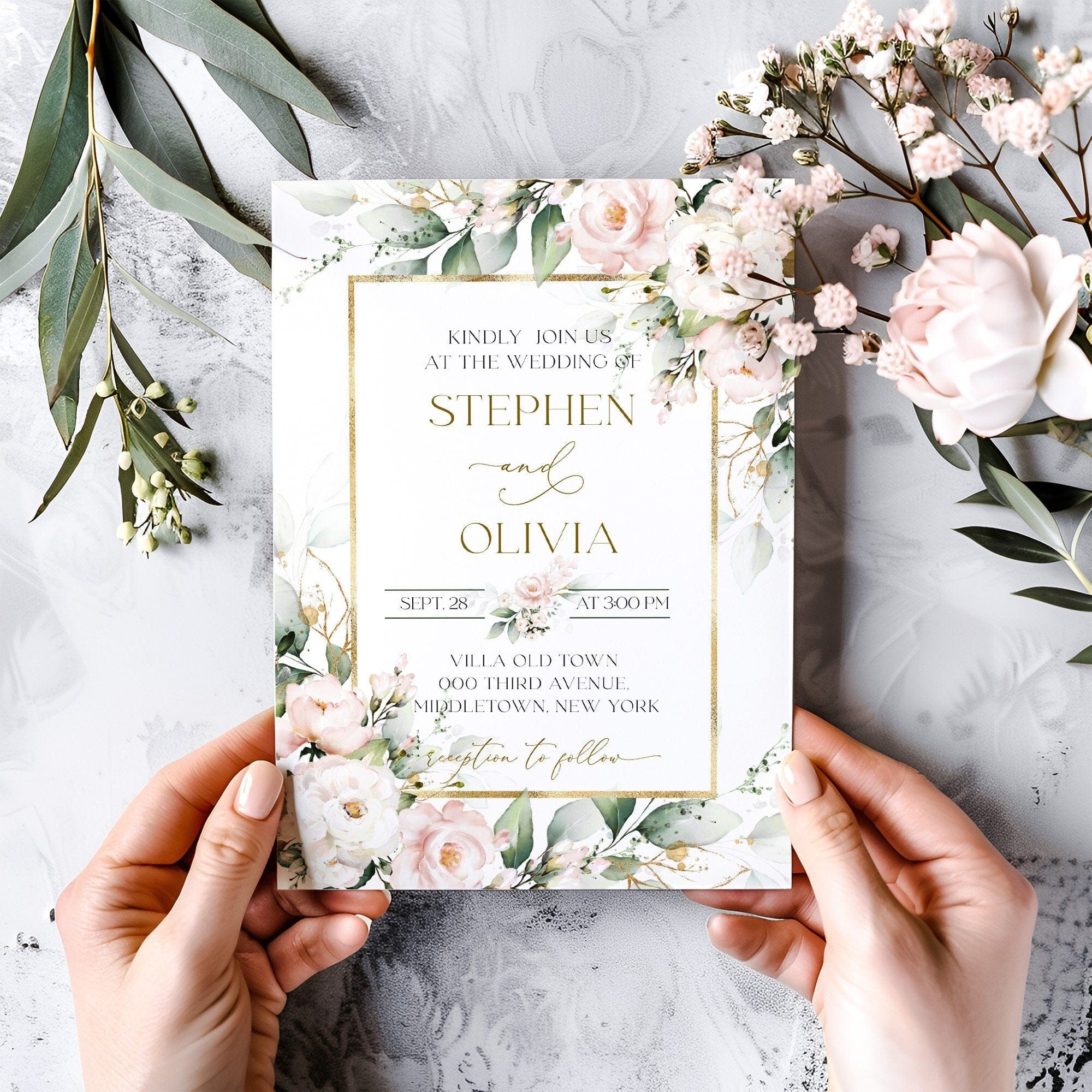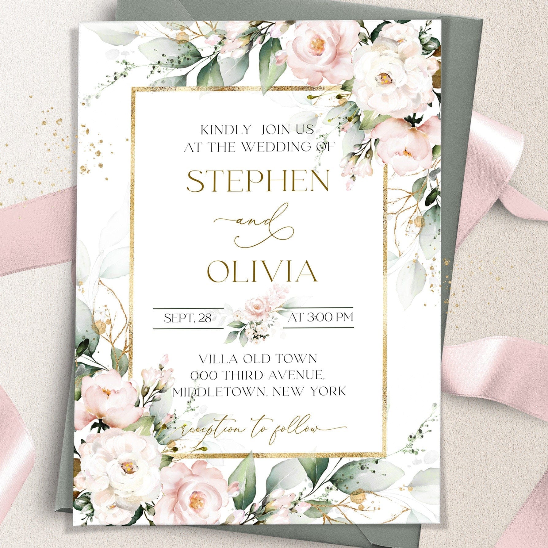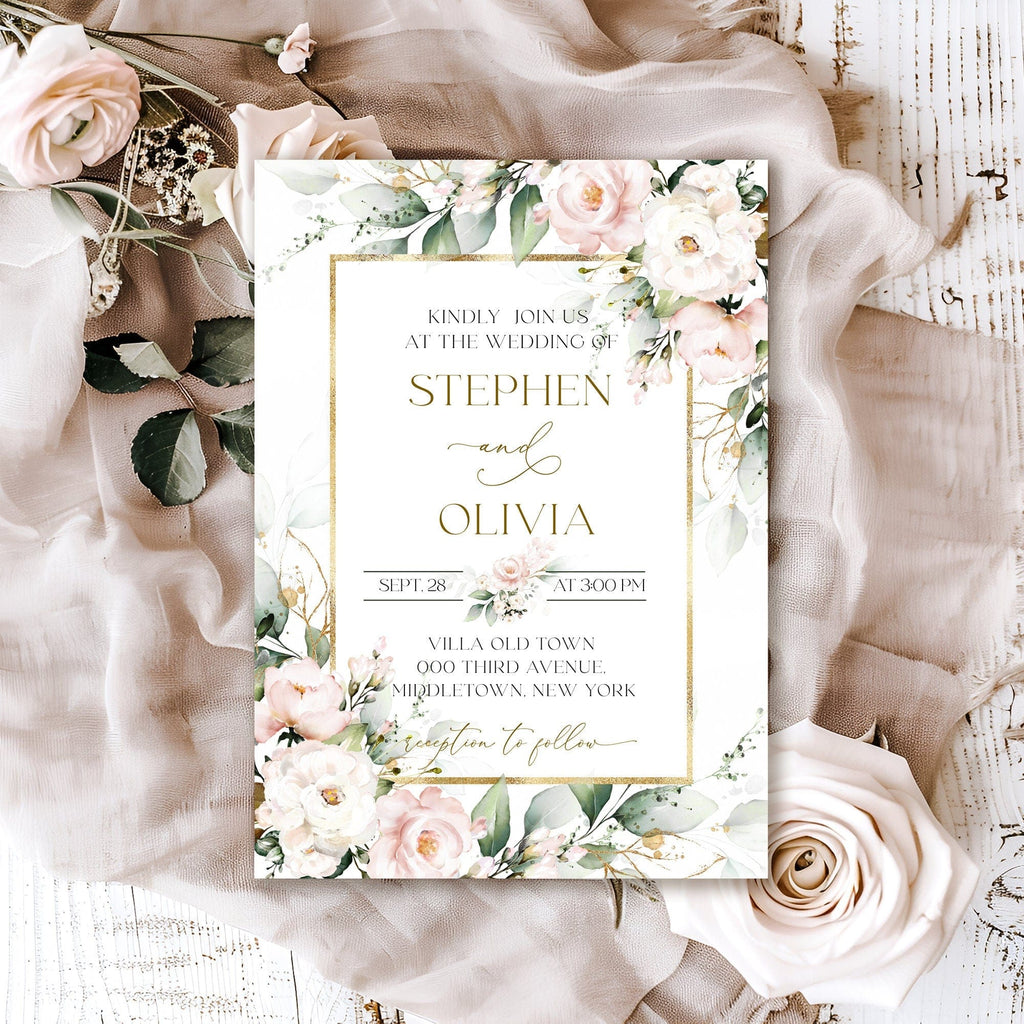 Printable Wedding Invite With Gold Frame, EDITABLE Templates