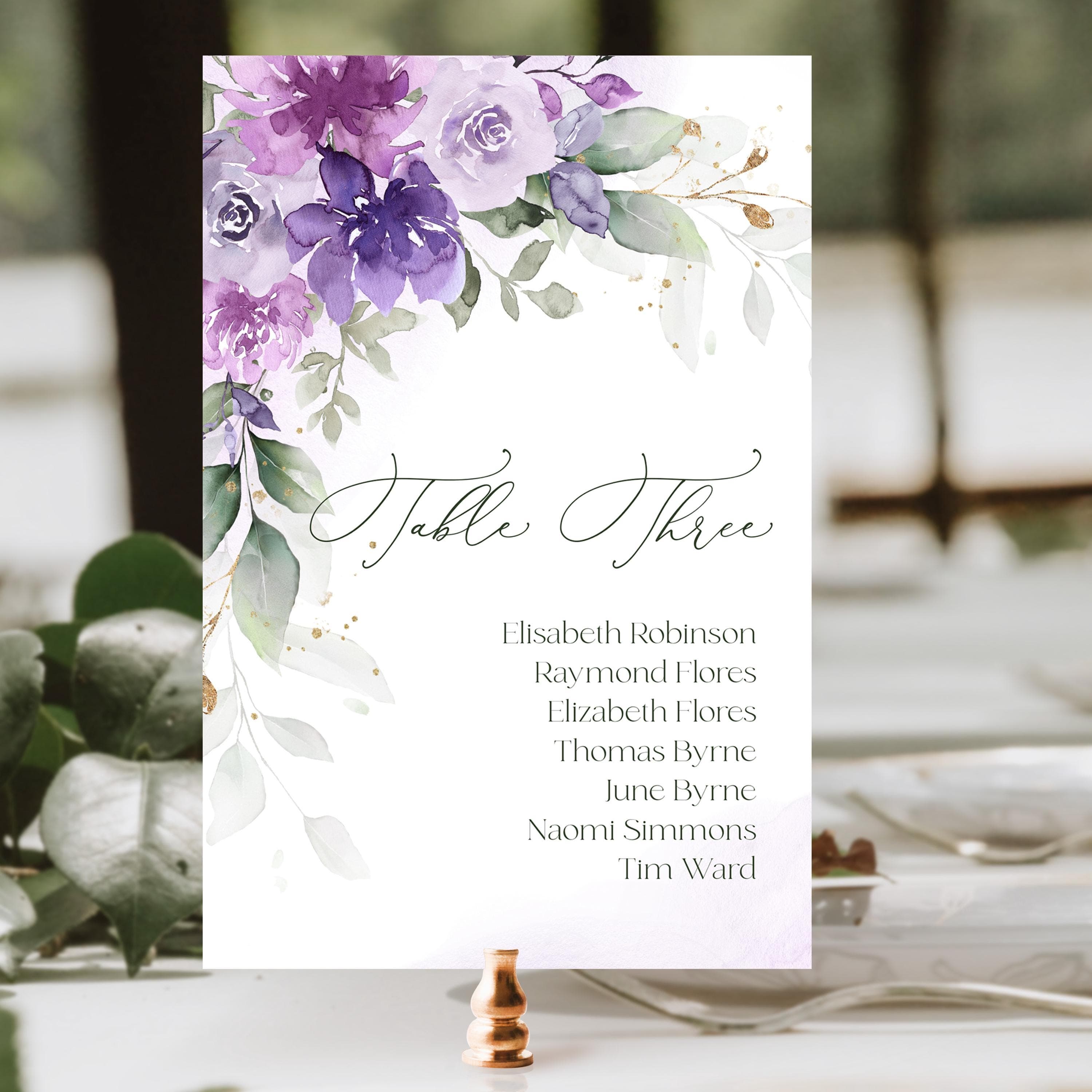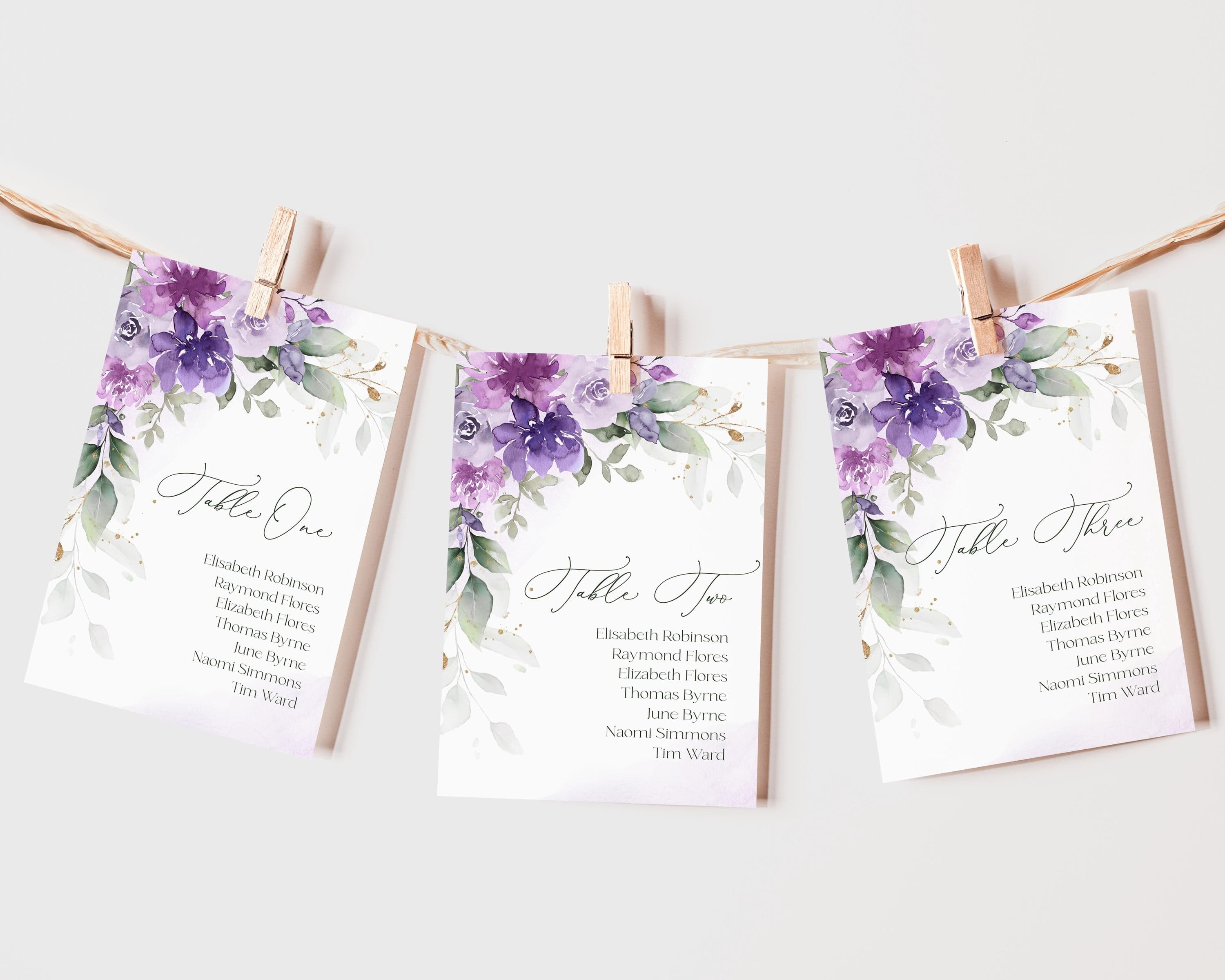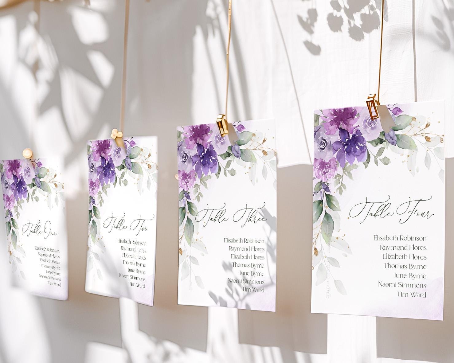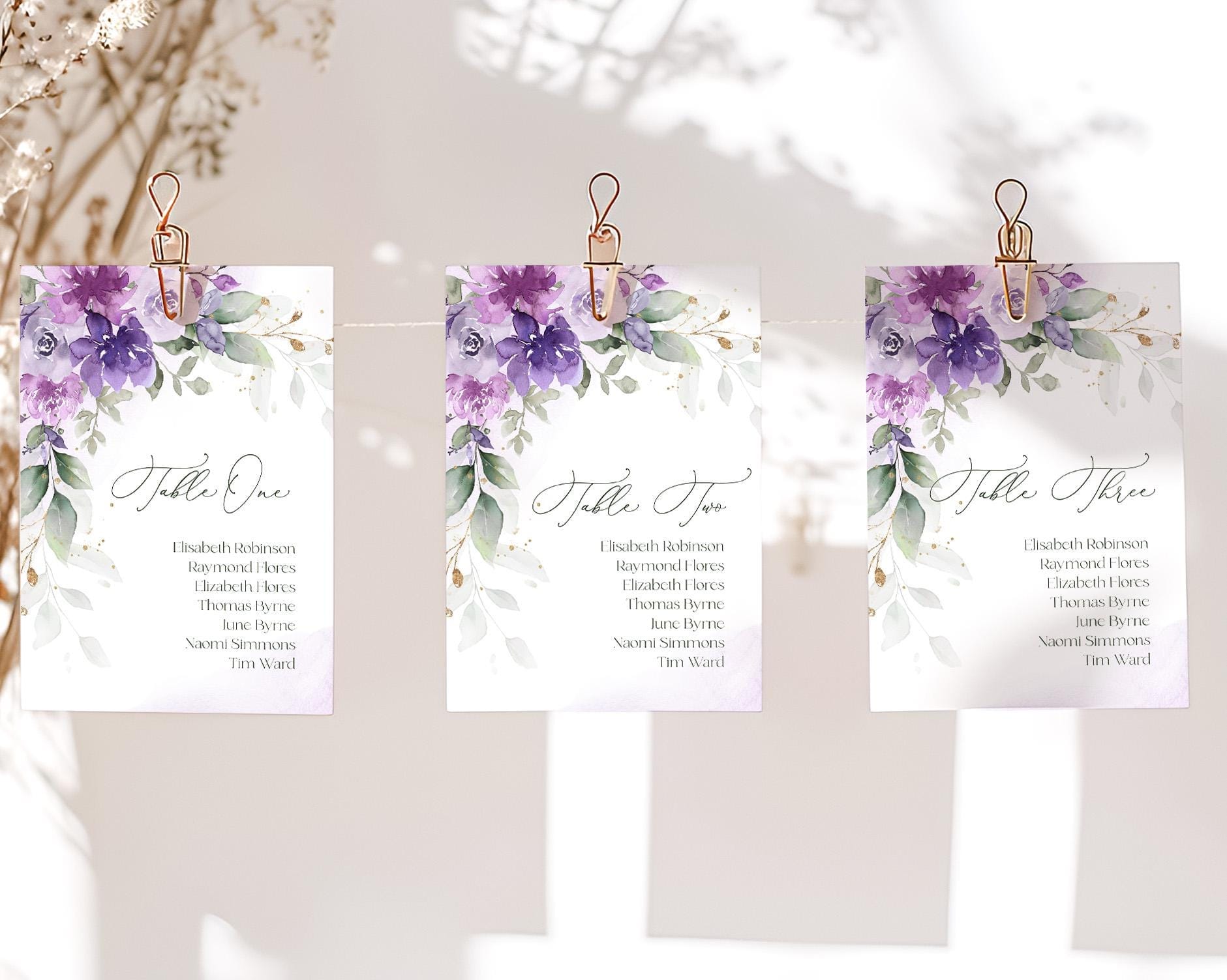 Purple Floral Table Seating Card, Lilac Wedding Table Décor
